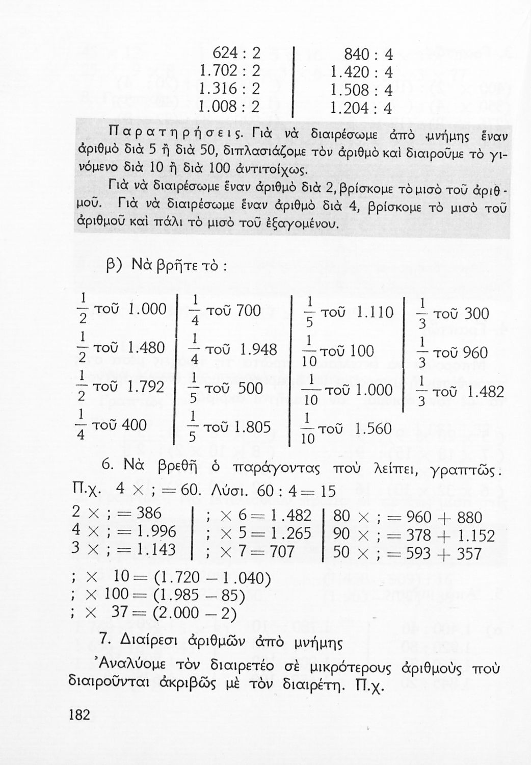 Παρουσίαση περιεχομένου: Σχολικό εγχειρίδιο Αριθμητικής για την Γ΄ Δημοτικού που περιλαμβάνει θεωρία, παραδείγματα και ασκήσεις και εστιάζει στις αριθμητικές πράξεις. Περιέχει και 11 σελίδες Γεωμετρίας. Φέρει το σύμβολο της δικτατορίας.