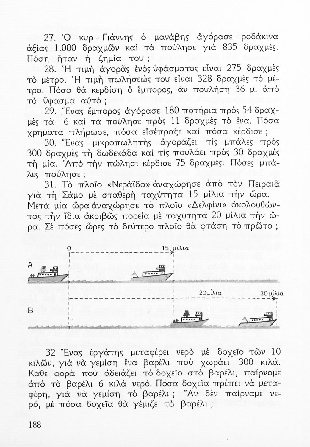 Σχολικό εγχειρίδιο Μαθηματικών ΣΤ΄ Δημοτικού που περιλαμβάνει ασκήσεις λογιστικού χαρακτήρα και ασκήσεις μέτρησης γεωμετρικών σχημάτων. Φέρει το σύμβολο της δικτατορίας.
