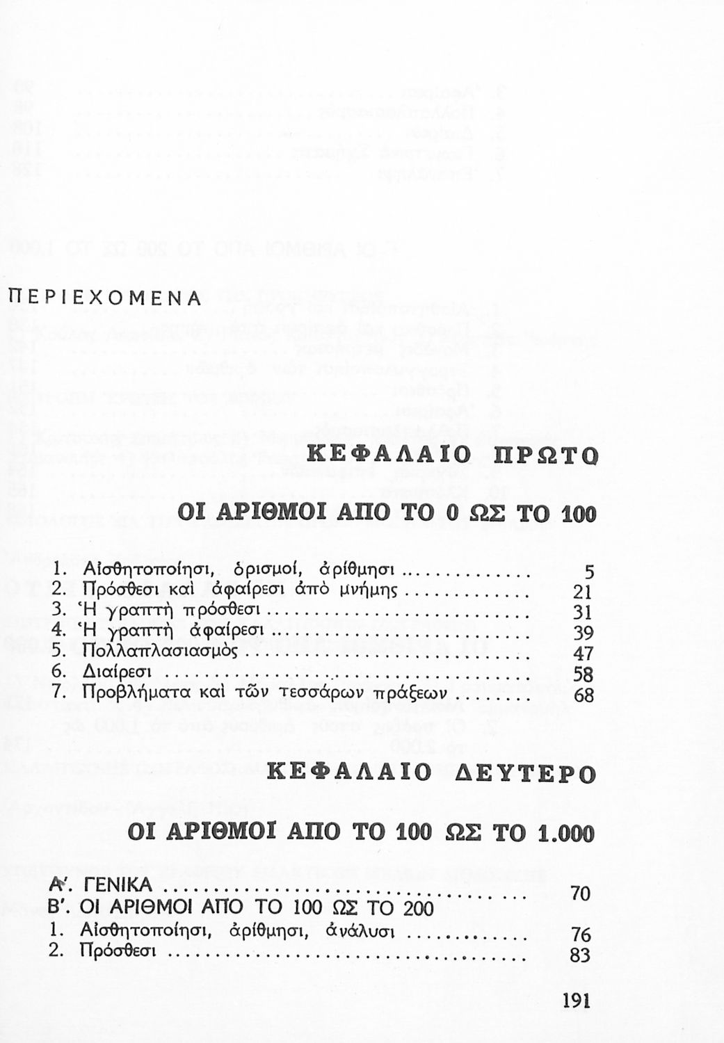 Σχολικό εγχειρίδιο Αριθμητικής για την Γ΄ Δημοτικού που περιλαμβάνει θεωρία, παραδείγματα και ασκήσεις και εστιάζει στις αριθμητικές πράξεις. Περιέχει και 11 σελίδες Γεωμετρίας. Φέρει το σύμβολο της δικτατορίας.