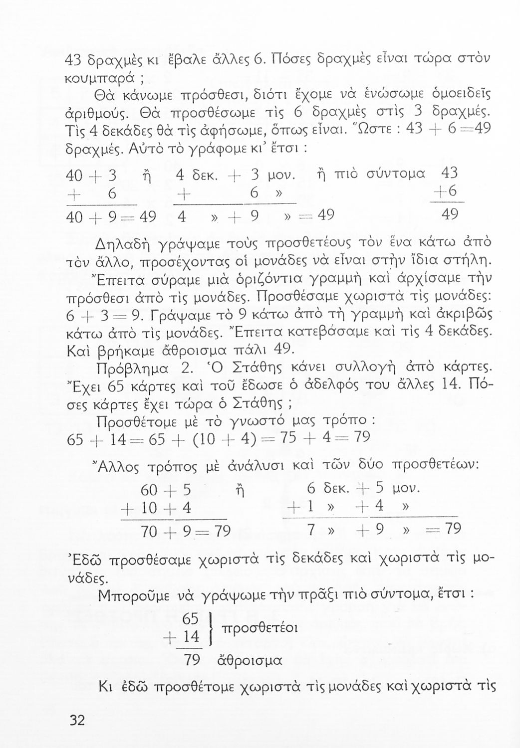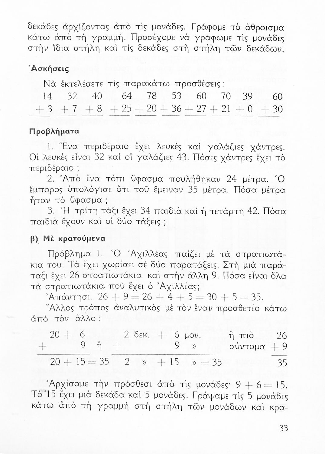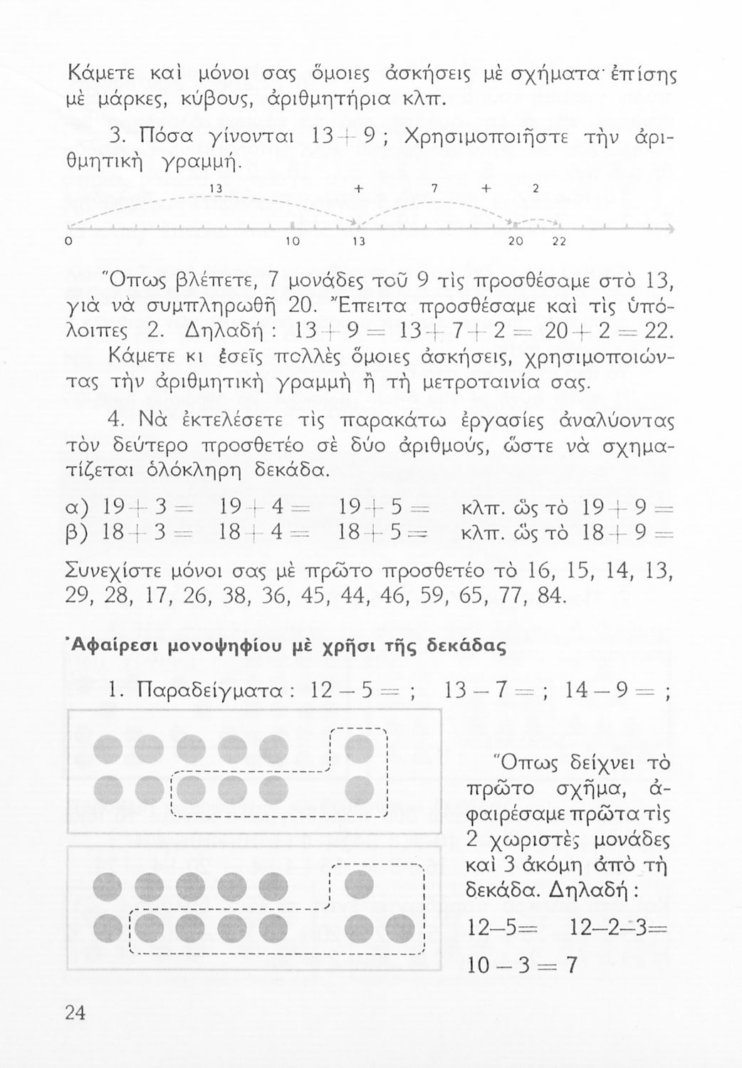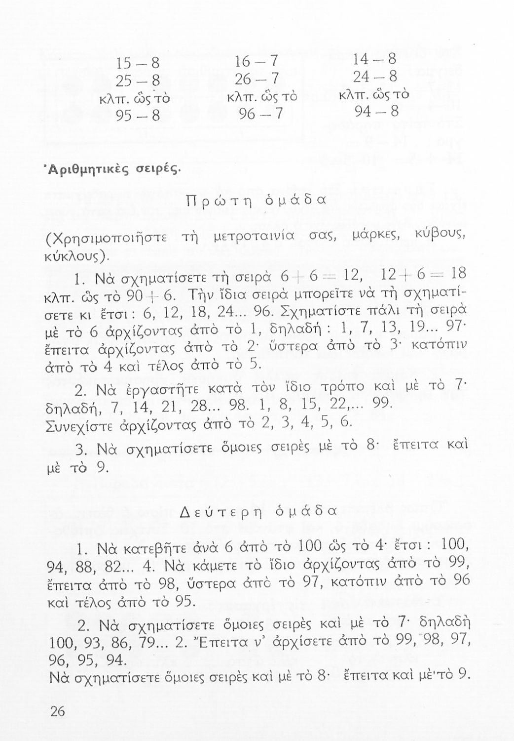 Σχολικό εγχειρίδιο Αριθμητικής για την Γ΄ Δημοτικού που περιλαμβάνει θεωρία, παραδείγματα και ασκήσεις και εστιάζει στις αριθμητικές πράξεις. Περιέχει και 11 σελίδες Γεωμετρίας. Φέρει το σύμβολο της δικτατορίας.