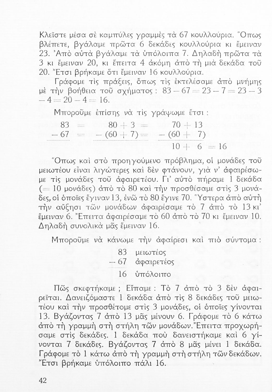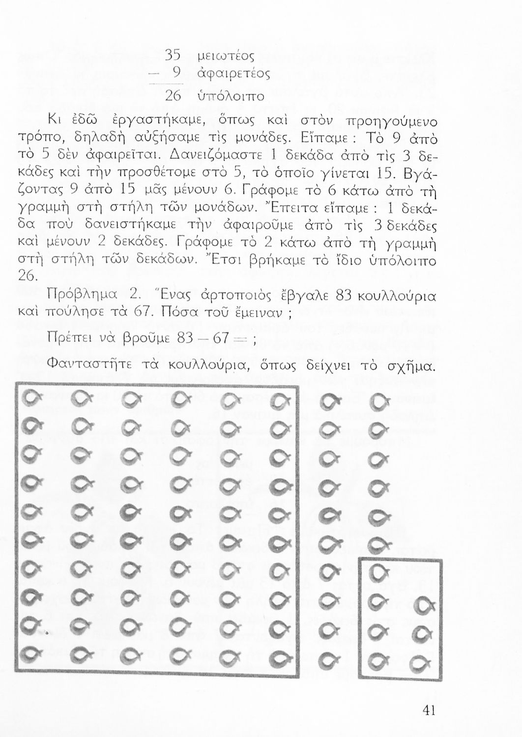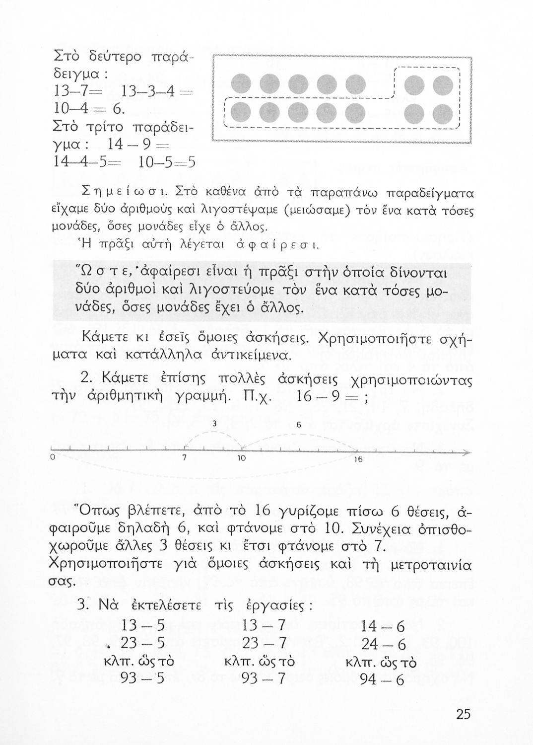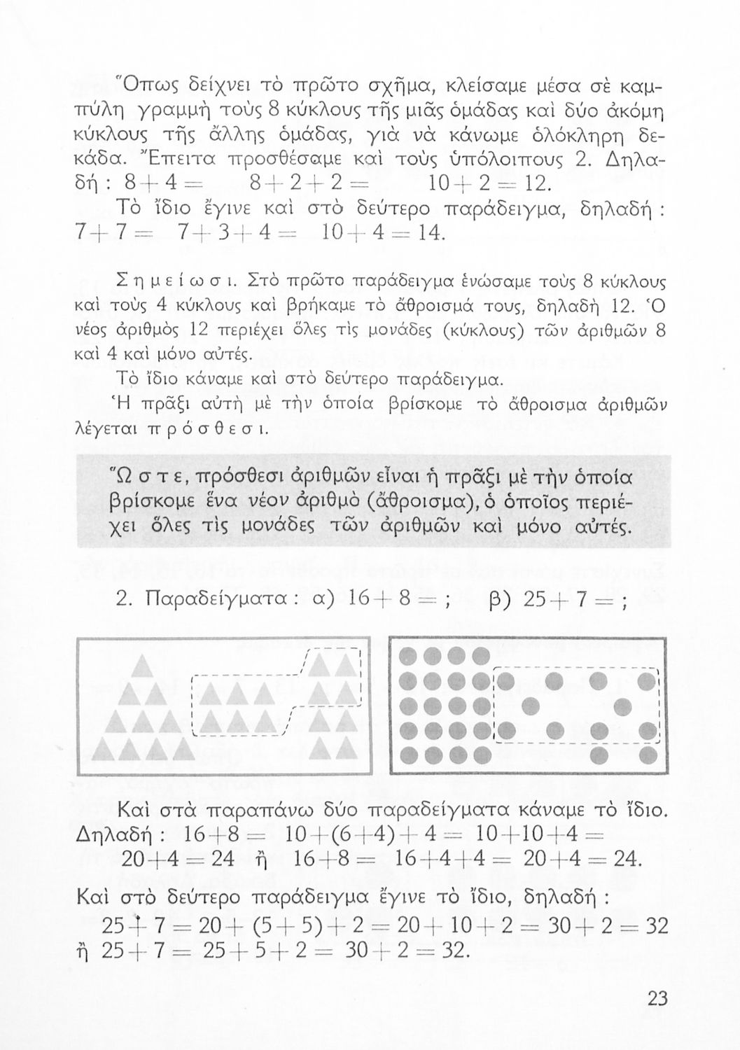 Σχολικό εγχειρίδιο Αριθμητικής για την Γ΄ Δημοτικού που περιλαμβάνει θεωρία, παραδείγματα και ασκήσεις και εστιάζει στις αριθμητικές πράξεις. Περιέχει και 11 σελίδες Γεωμετρίας. Φέρει το σύμβολο της δικτατορίας.