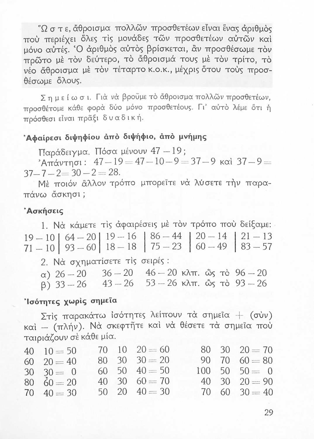 520 ## _aΣχολικό εγχειρίδιο Αριθμητικής για την Γ΄ Δημοτικού που περιλαμβάνει θεωρία, παραδείγματα και ασκήσεις και εστιάζει στις αριθμητικές πράξεις. Περιέχει και 11 σελίδες Γεωμετρίας. Φέρει το σύμβολο της δικτατορίας.