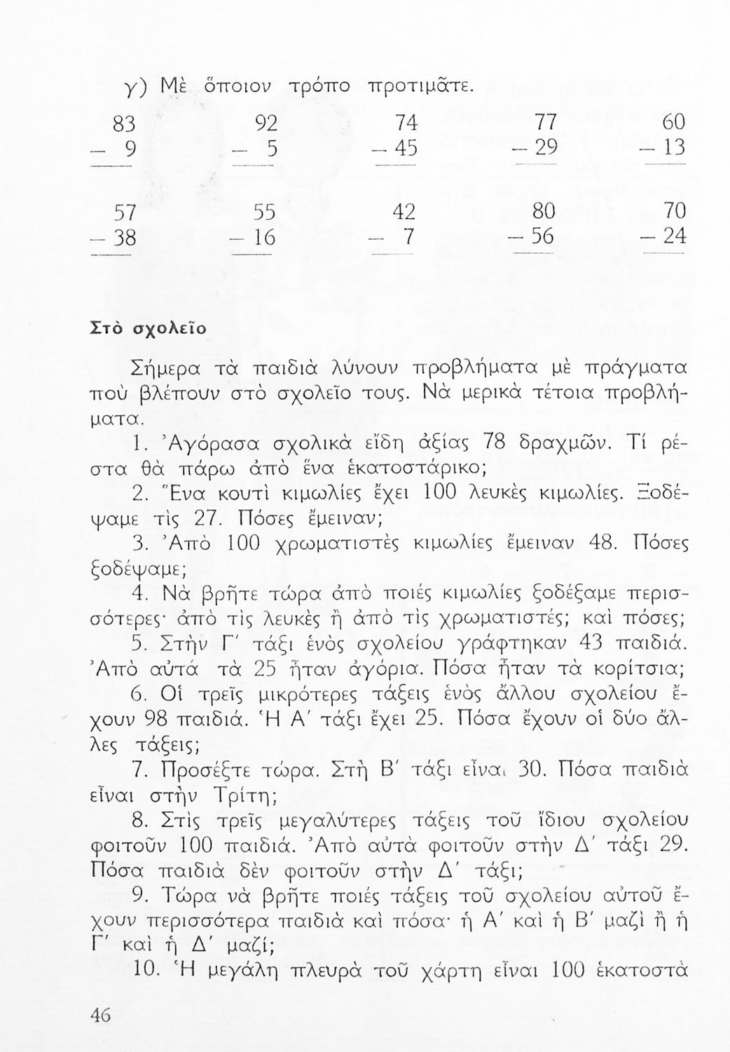 Σχολικό εγχειρίδιο με προβλήματα Αριθμητικής για την Γ΄ Δημοτικού χωρισμένο με βάση τις αριθμητικές πράξεις και τις εκατοντάδες.