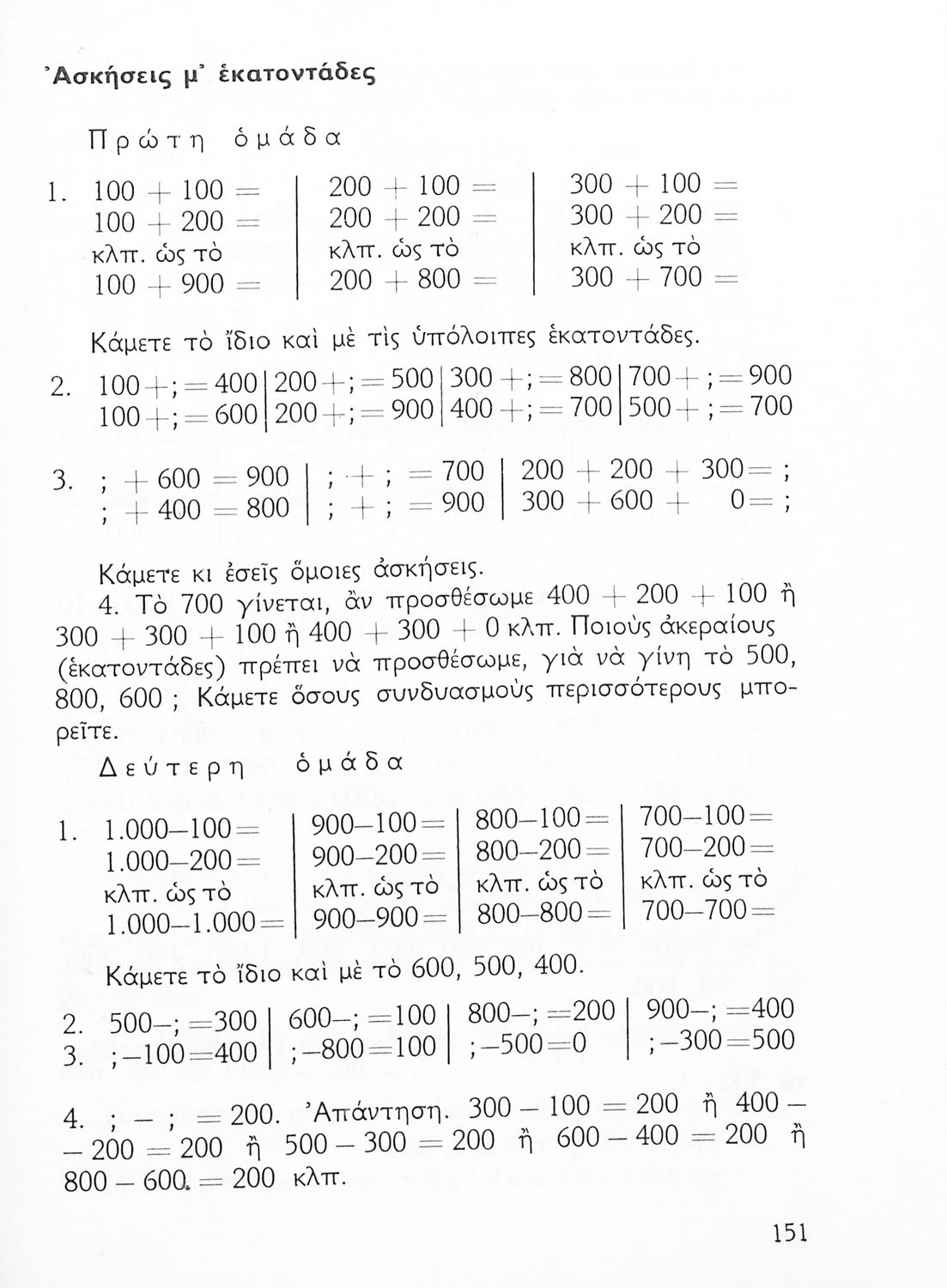 Σχολικό εγχειρίδιο με προβλήματα Αριθμητικής για την Γ΄ Δημοτικού χωρισμένο με βάση τις αριθμητικές πράξεις και τις εκατοντάδες.