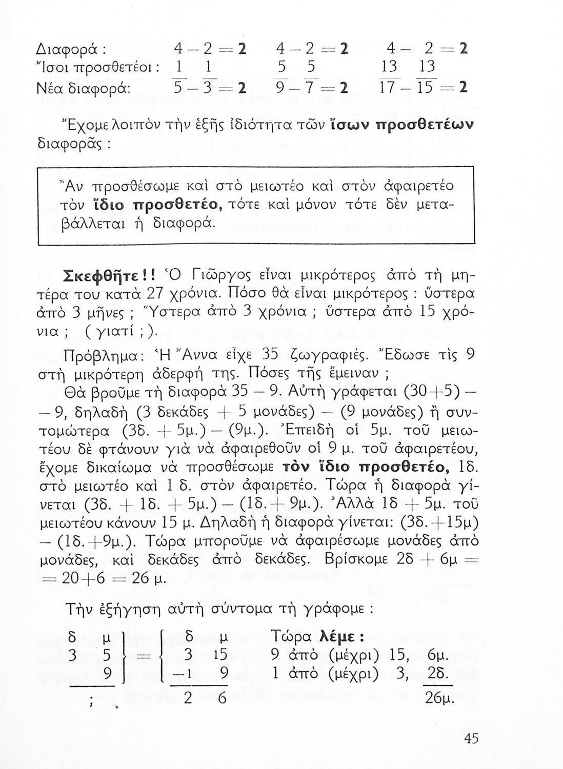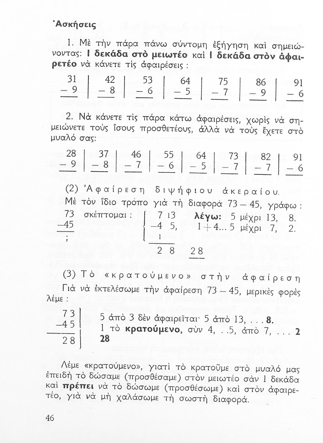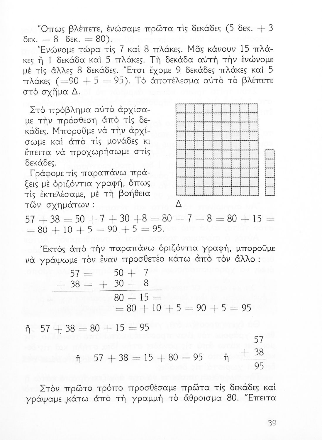Σχολικό εγχειρίδιο Αριθμητικής για την Γ΄ Δημοτικού που περιλαμβάνει θεωρία, παραδείγματα και ασκήσεις και εστιάζει στις αριθμητικές πράξεις. Περιέχει και 11 σελίδες Γεωμετρίας. Φέρει το σύμβολο της ...
