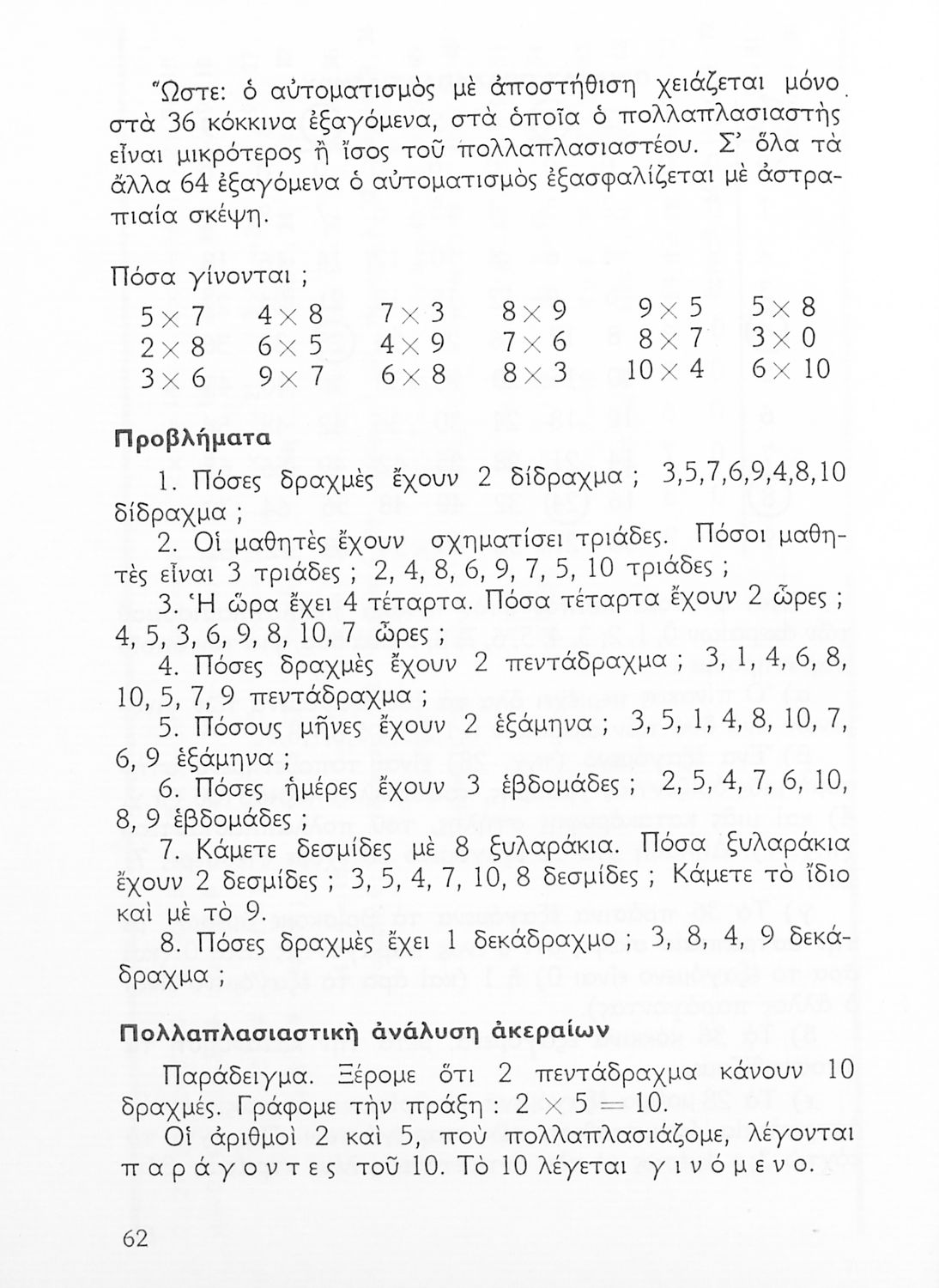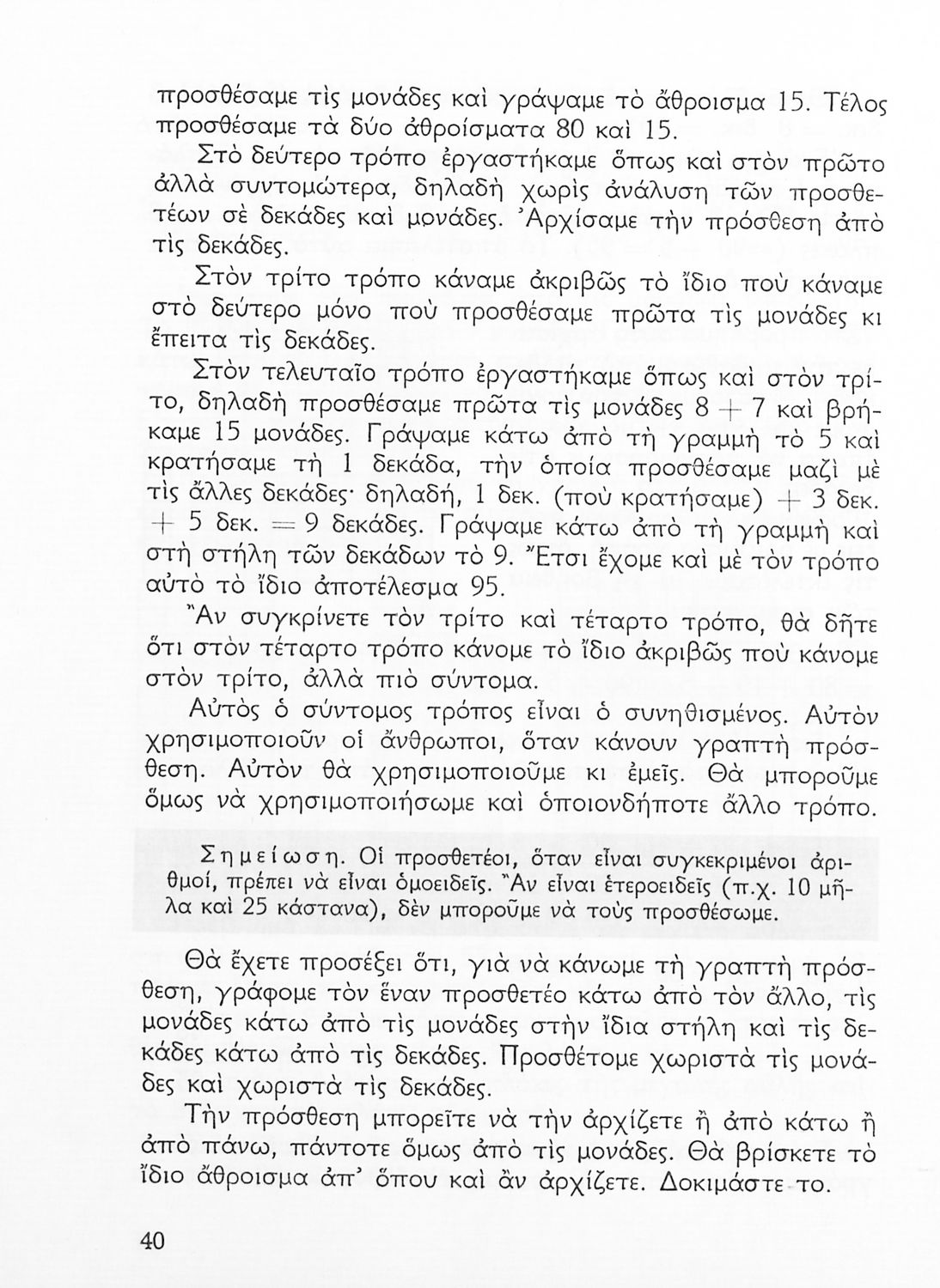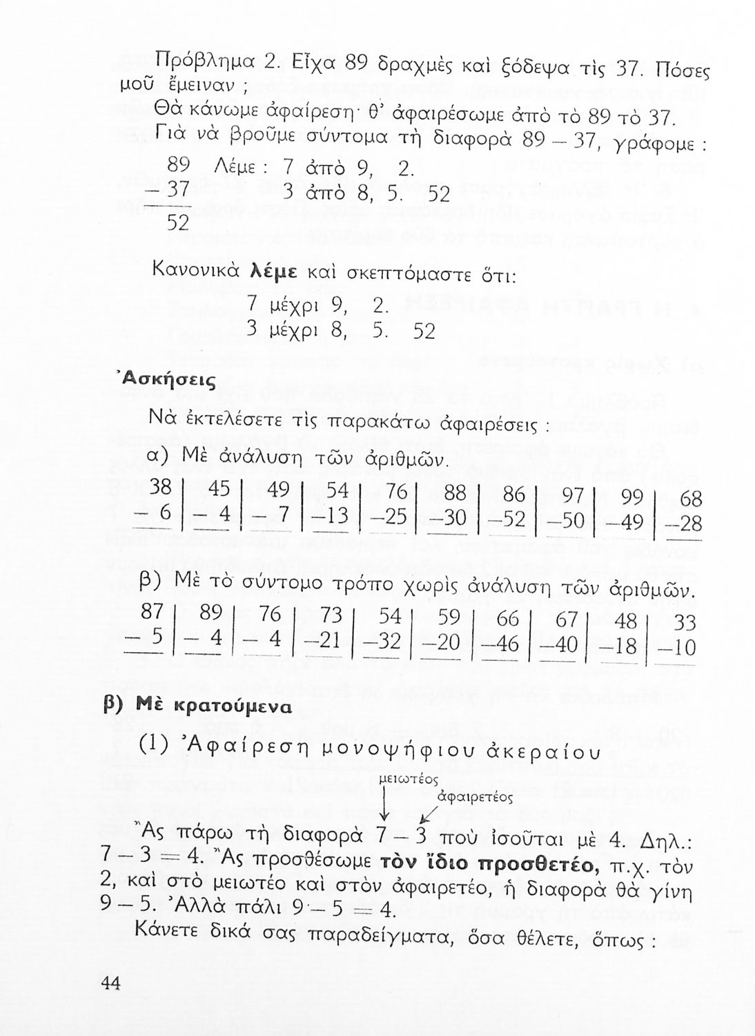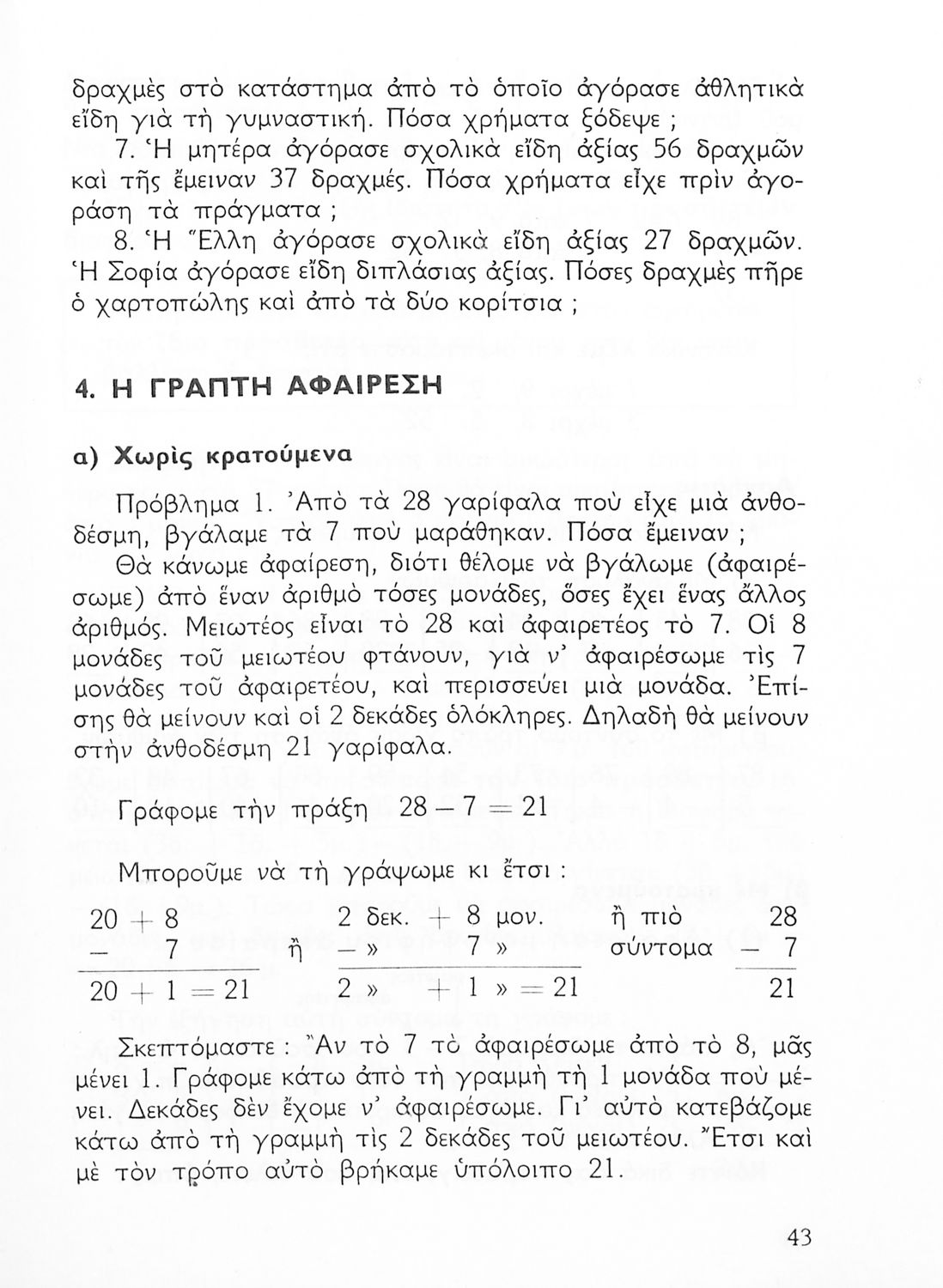 Σχολικό εγχειρίδιο Αριθμητικής για την Γ΄ Δημοτικού που περιλαμβάνει θεωρία, παραδείγματα και ασκήσεις και εστιάζει στις αριθμητικές πράξεις. Περιέχει και 11 σελίδες Γεωμετρίας. Φέρει το σύμβολο της ...