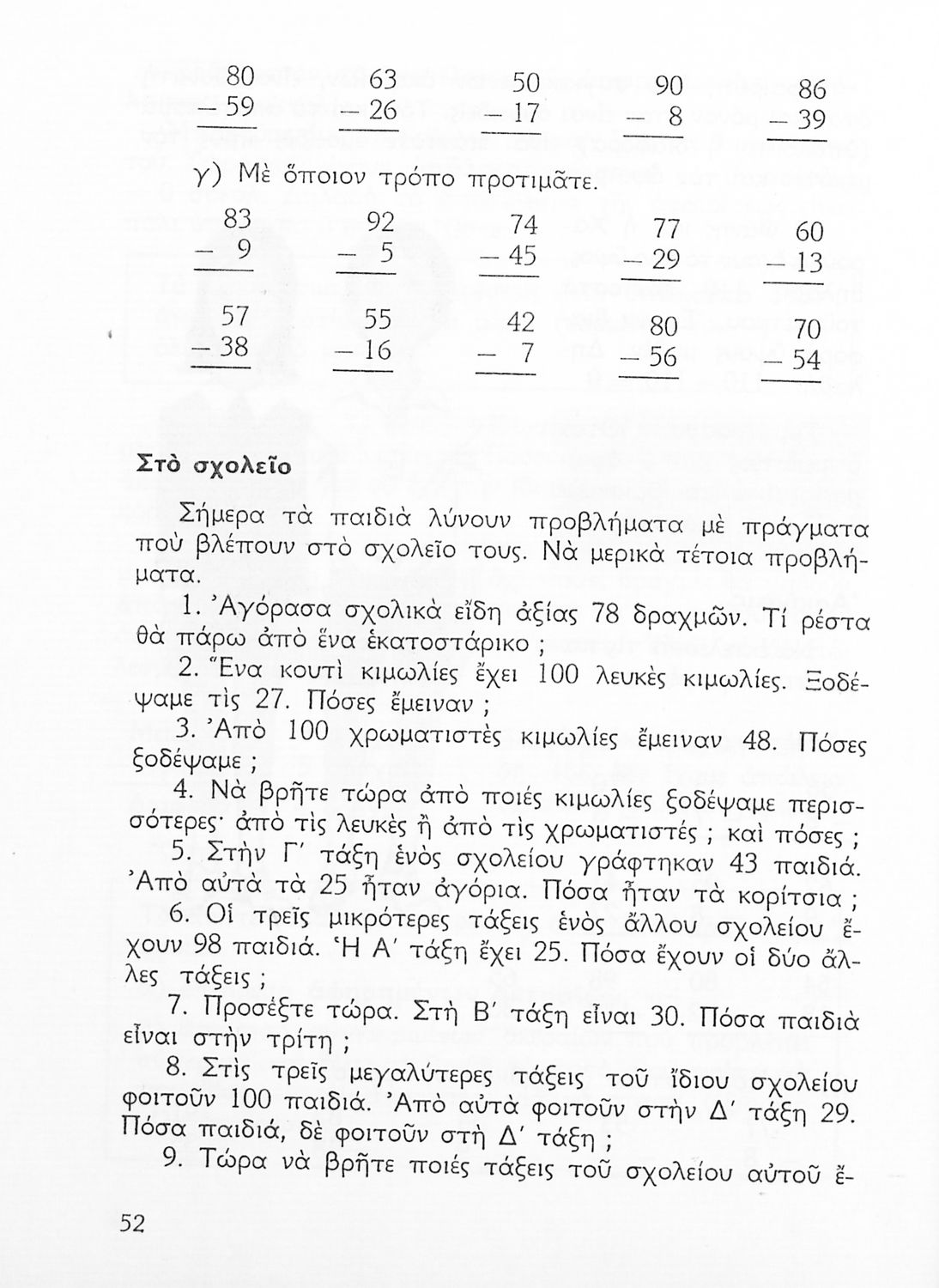 Σχολικό εγχειρίδιο με προβλήματα Αριθμητικής για την Γ΄ Δημοτικού χωρισμένο με βάση τις αριθμητικές πράξεις και τις εκατοντάδες.