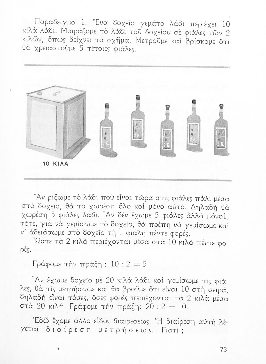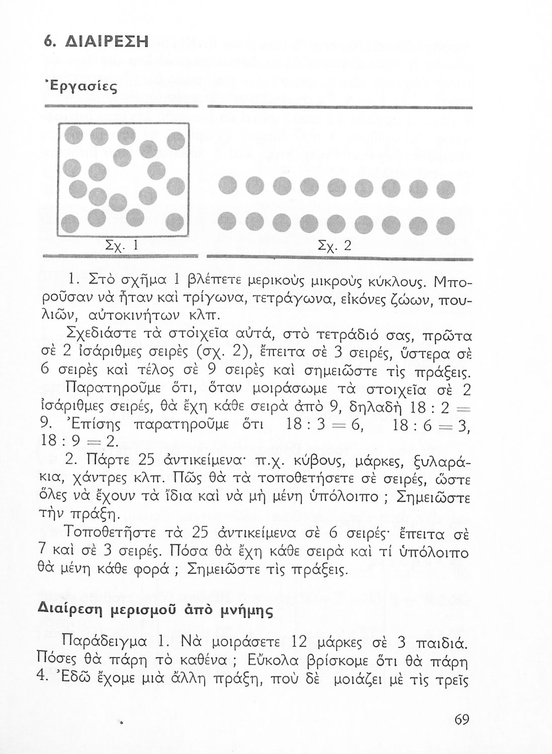Σχολικό εγχειρίδιο Μαθηματικών ΣΤ΄ Δημοτικού που περιλαμβάνει ασκήσεις λογιστικού χαρακτήρα και ασκήσεις μέτρησης γεωμετρικών σχημάτων. Φέρει το σύμβολο της δικτατορίας.