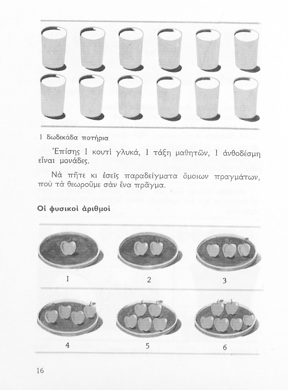Σχολικό εγχειρίδιο Μαθηματικών ΣΤ΄ Δημοτικού που περιλαμβάνει ασκήσεις λογιστικού χαρακτήρα και ασκήσεις μέτρησης γεωμετρικών σχημάτων. Φέρει το σύμβολο της δικτατορίας.