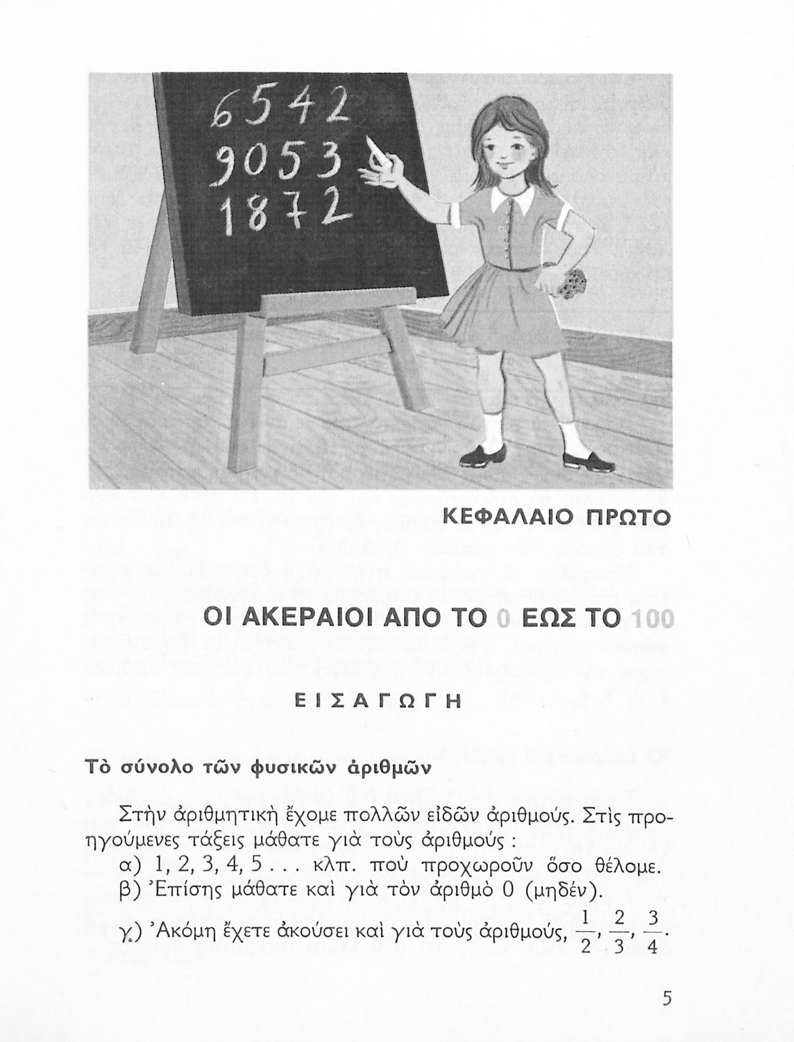 Σχολικό εγχειρίδιο Μαθηματικών Ε΄ Δημοτικού που συνδυάζει Αριθμητική και Γεωμετρία και εστιάζει στις πράξεις με ακέραιους και συμμιγείς αριθμούς και τη μέτρηση γεωμετρικών στερεών.