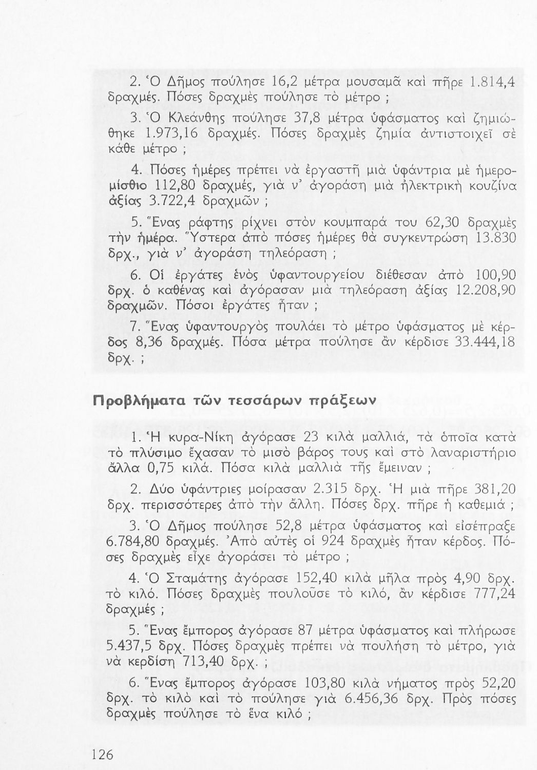 Σχολικό εγχειρίδιο Αριθμητικής Δ΄ Δημοτικού χωρισμένο σε πρακτικά προβλήματα και τις λύσεις τους που περιλαμβάνει και κάποια στοιχεία Γεωμετρίας.