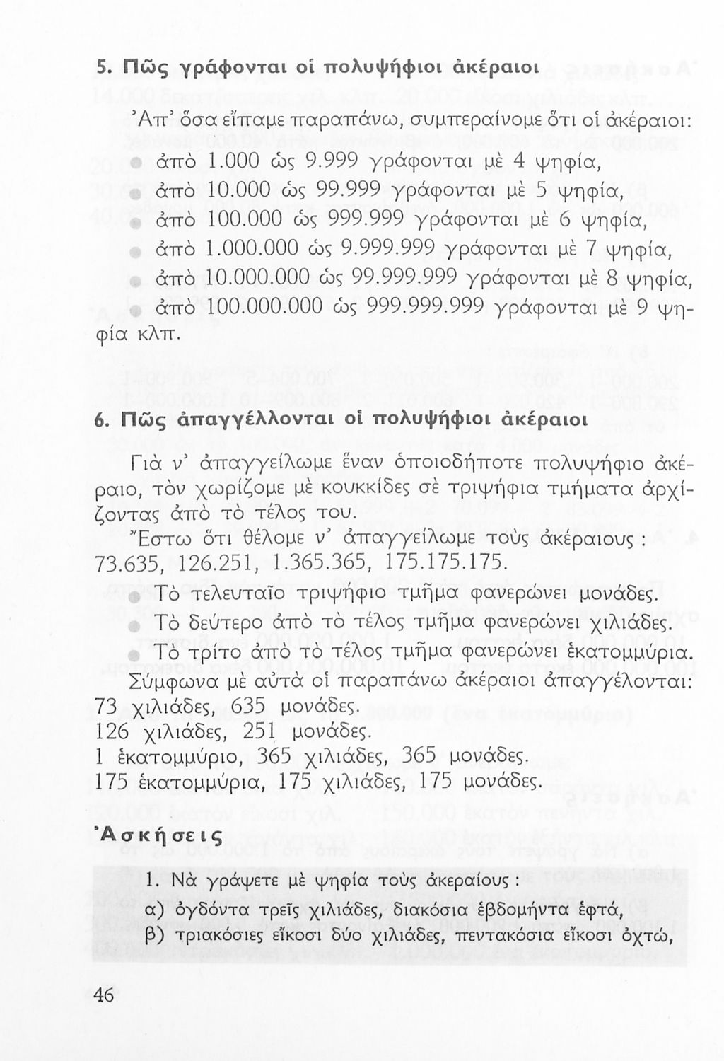 Σχολικό εγχειρίδιο Μαθηματικών ΣΤ΄ Δημοτικού που περιλαμβάνει ασκήσεις λογιστικού χαρακτήρα και ασκήσεις μέτρησης γεωμετρικών σχημάτων.