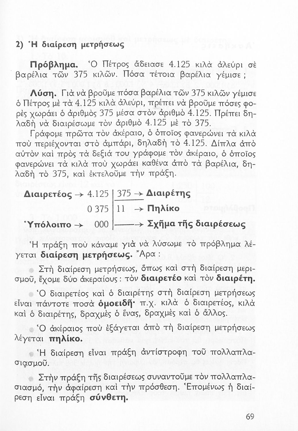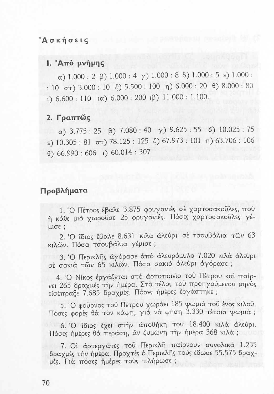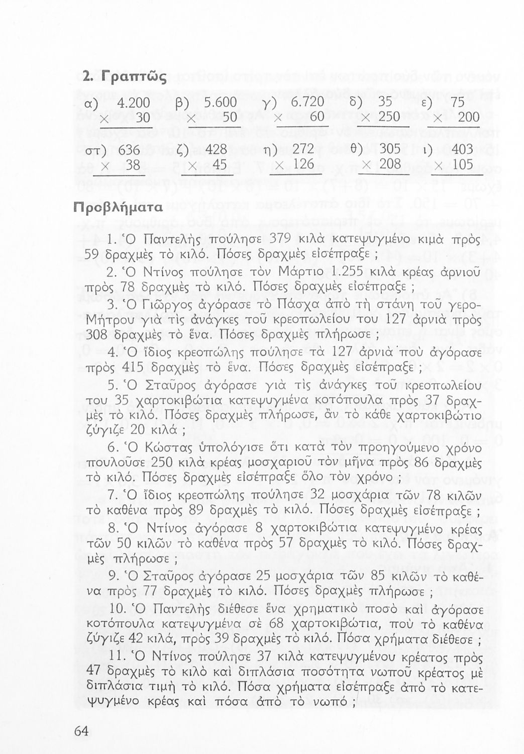Σχολικό εγχειρίδιο Αριθμητικής Δ΄ Δημοτικού χωρισμένο σε πρακτικά προβλήματα και τις λύσεις τους που περιλαμβάνει και κάποια στοιχεία Γεωμετρίας.