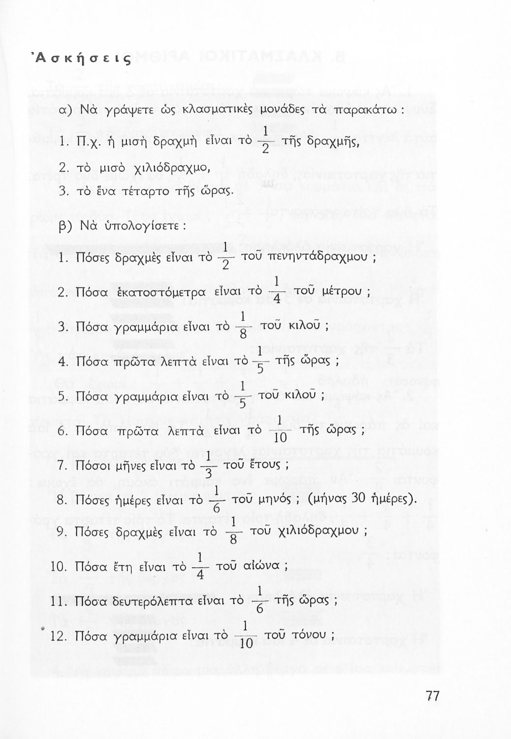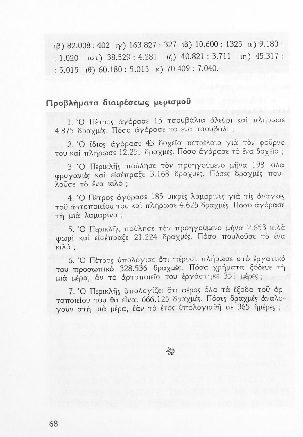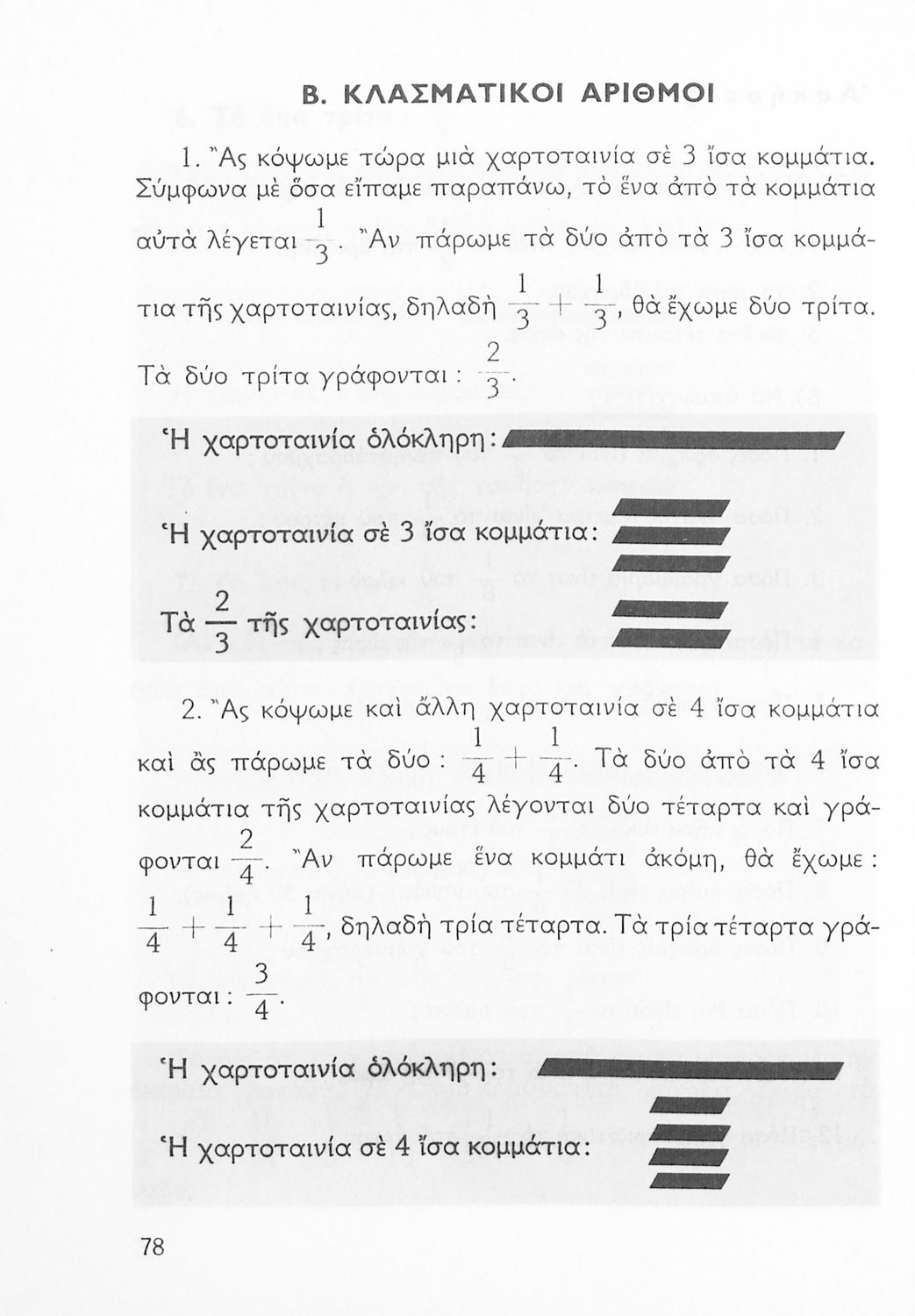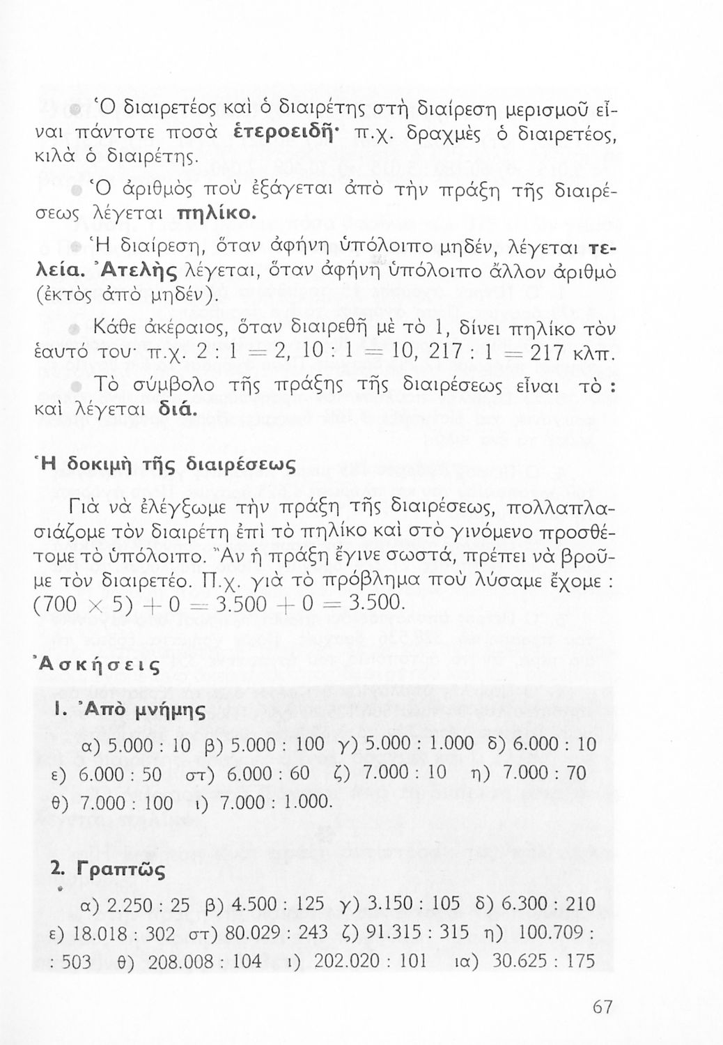 Σχολικό εγχειρίδιο Αριθμητικής Δ΄ Δημοτικού χωρισμένο σε πρακτικά προβλήματα και τις λύσεις τους που περιλαμβάνει και κάποια στοιχεία Γεωμετρίας.