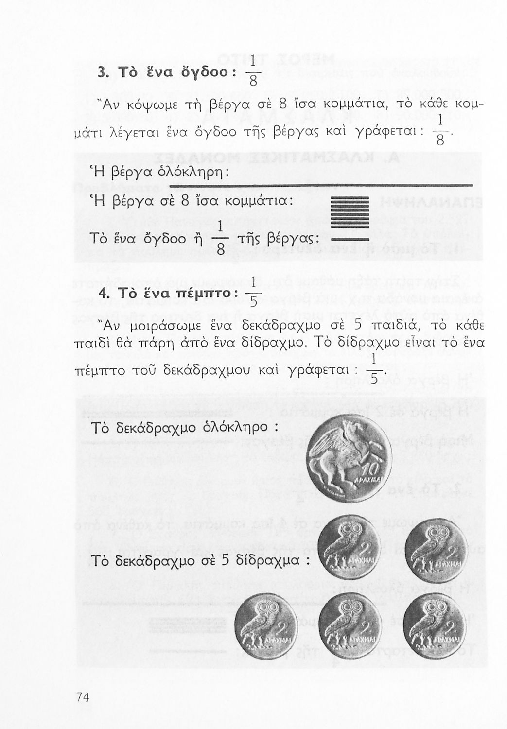 Σχολικό εγχειρίδιο Αριθμητικής Δ΄ Δημοτικού χωρισμένο σε πρακτικά προβλήματα και τις λύσεις τους που εστιάζει στις πράξεις με ακέραιους και συμμιγείς αριθμούς και περιλαμβάνει στοιχεία Γεωμετρίας.
