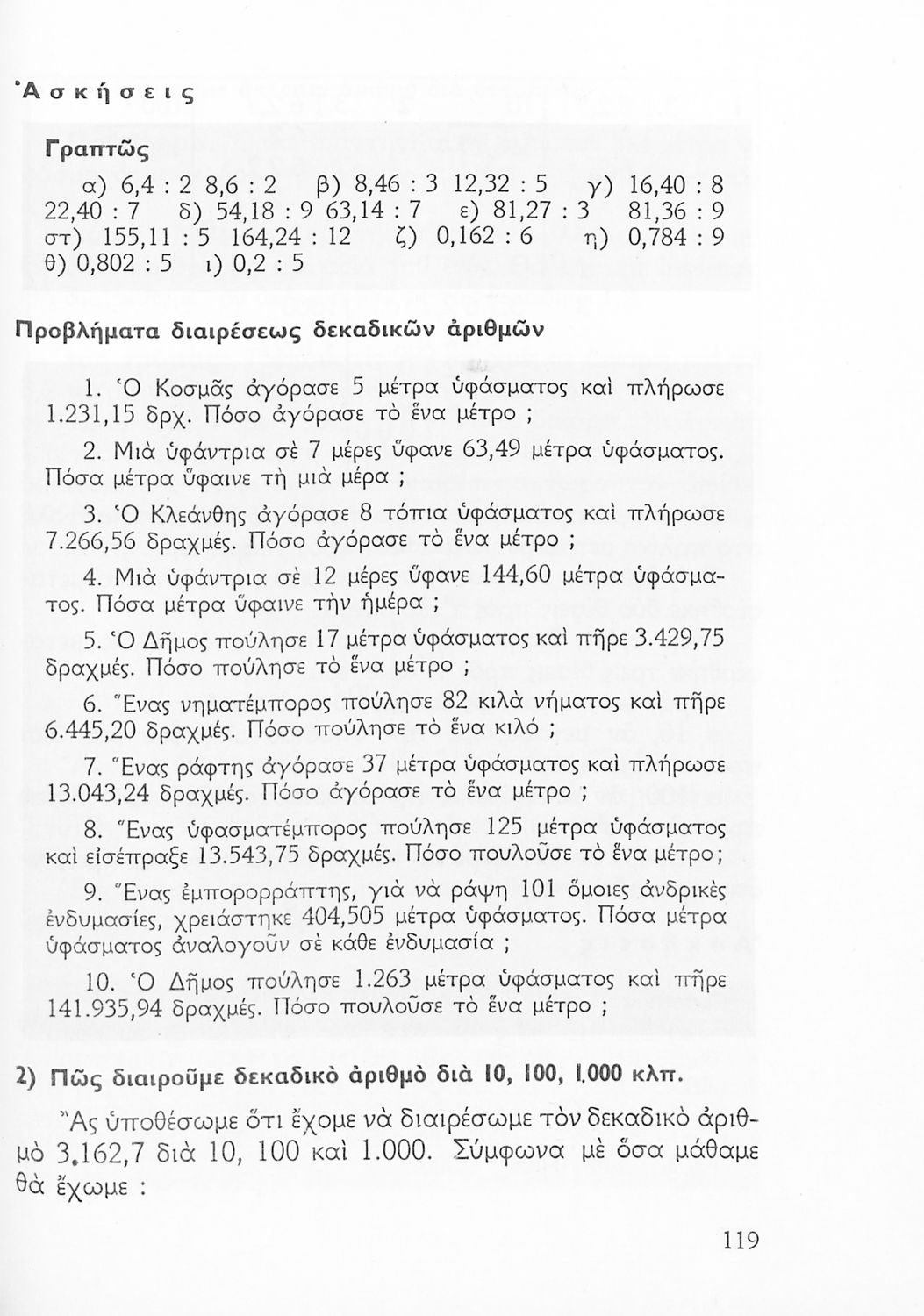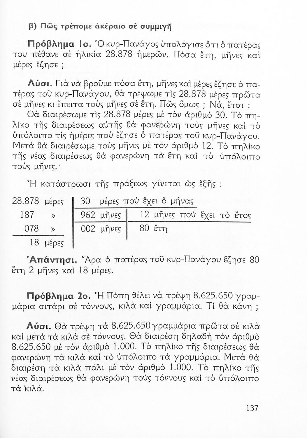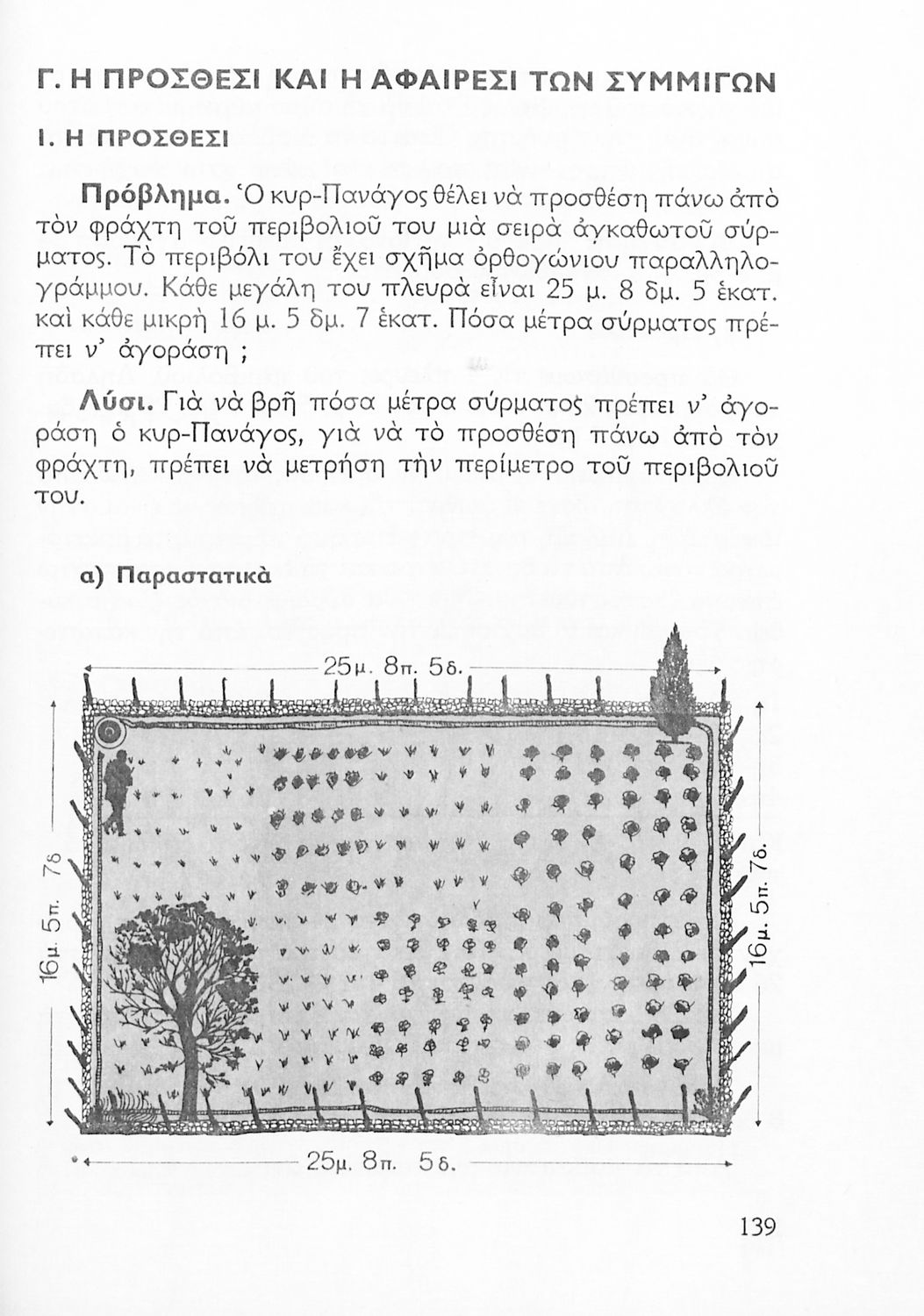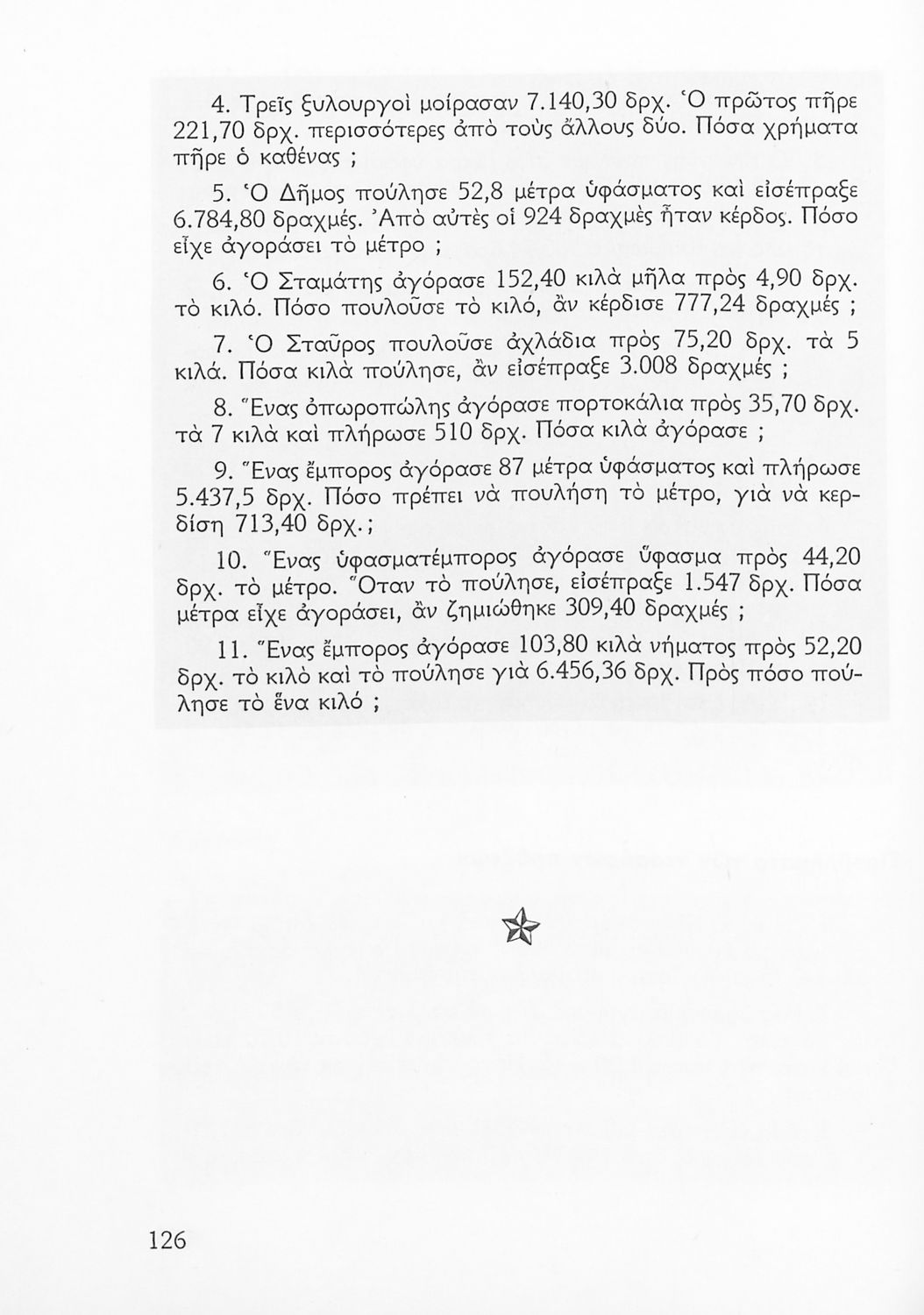 Σχολικό εγχειρίδιο Αριθμητικής Δ΄ Δημοτικού χωρισμένο σε πρακτικά προβλήματα και τις λύσεις τους που περιλαμβάνει και κάποια στοιχεία Γεωμετρίας.