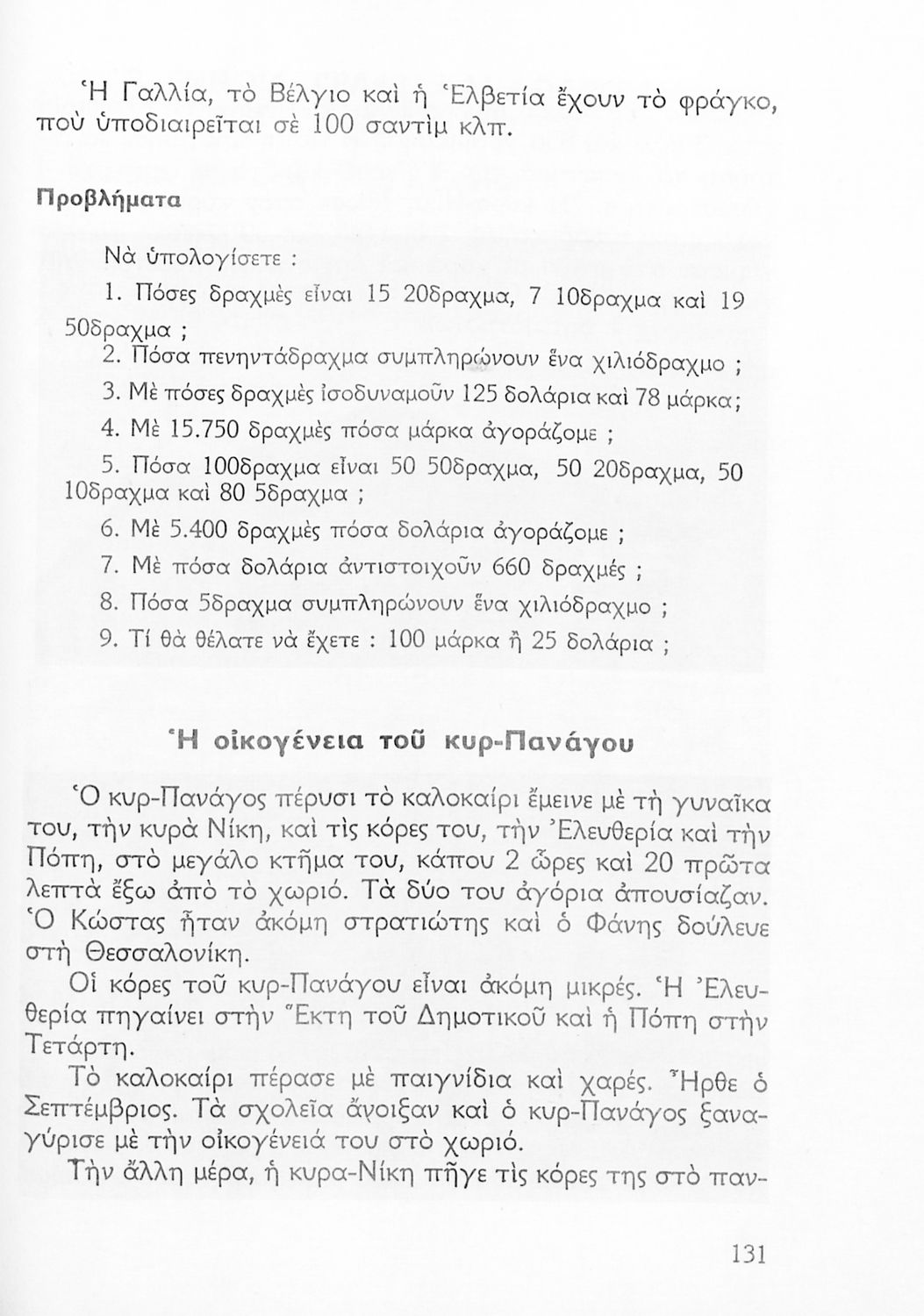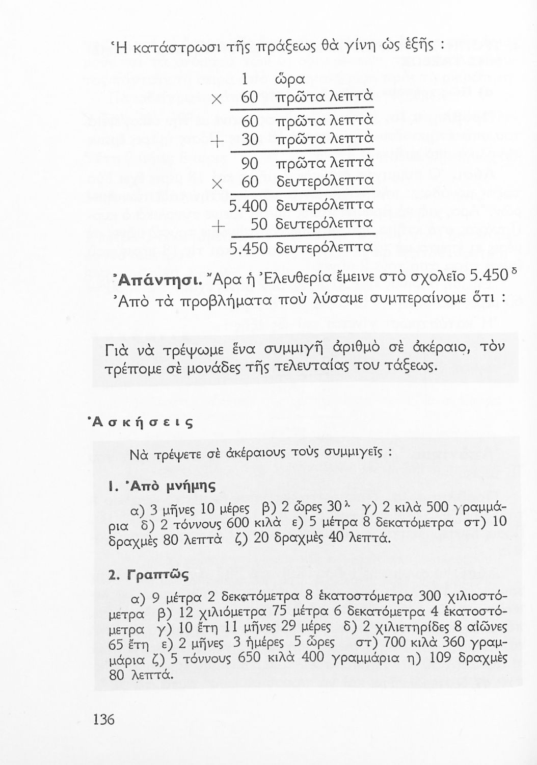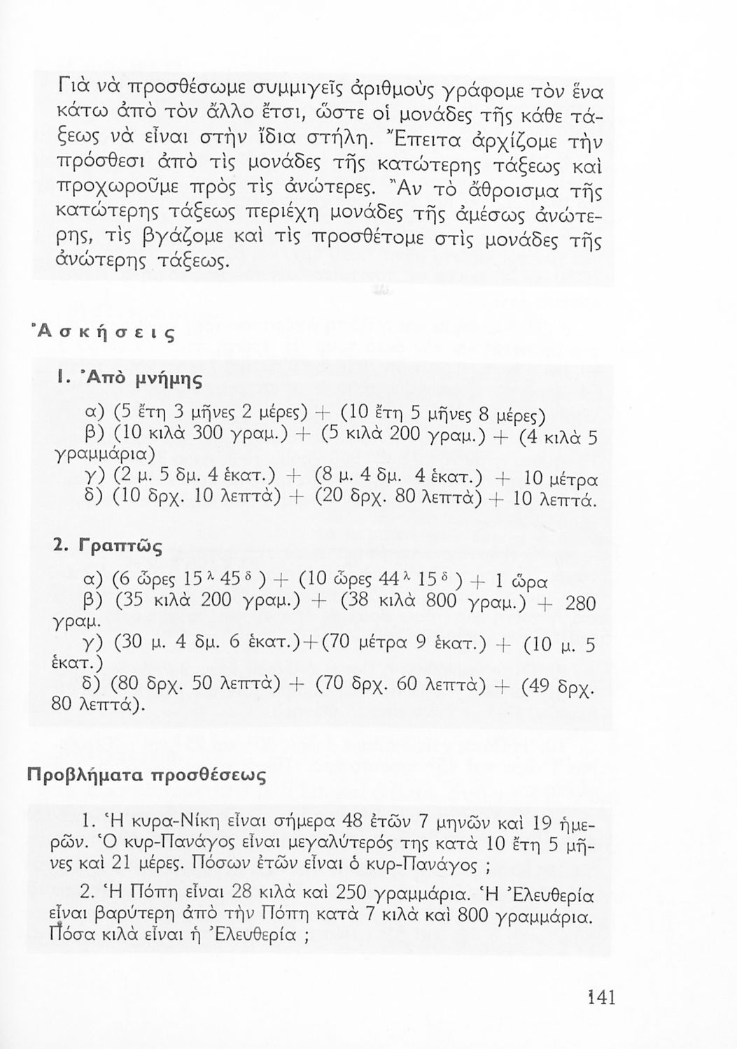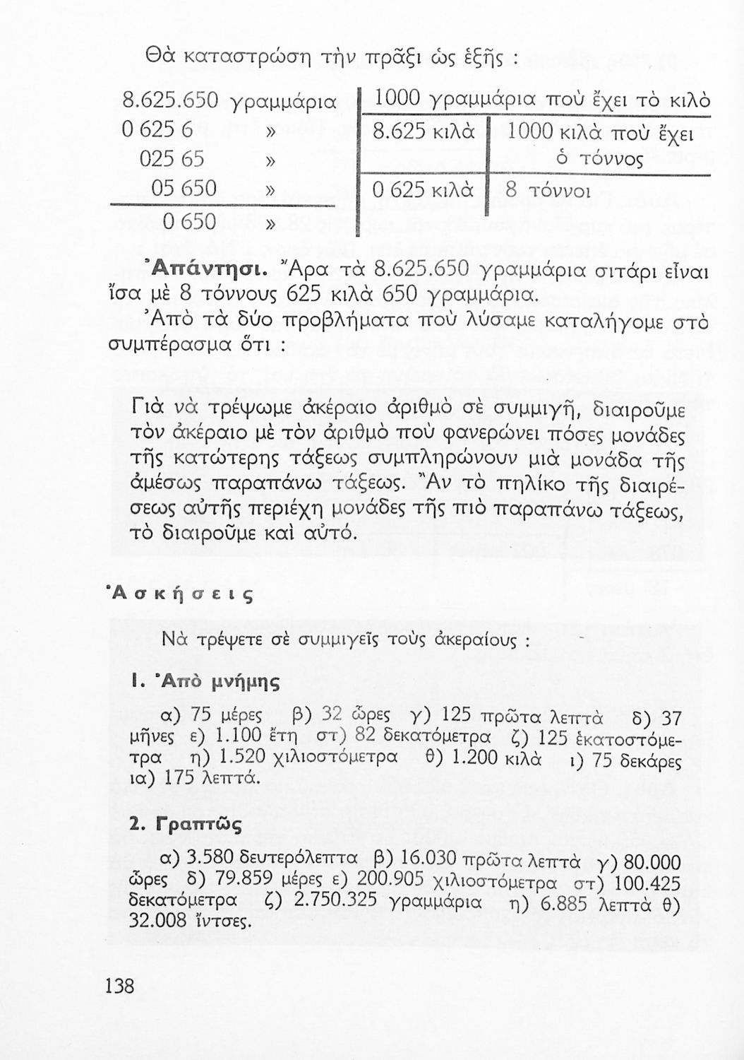 Σχολικό εγχειρίδιο Αριθμητικής Δ΄ Δημοτικού χωρισμένο σε πρακτικά προβλήματα και τις λύσεις τους που περιλαμβάνει και κάποια στοιχεία Γεωμετρίας.