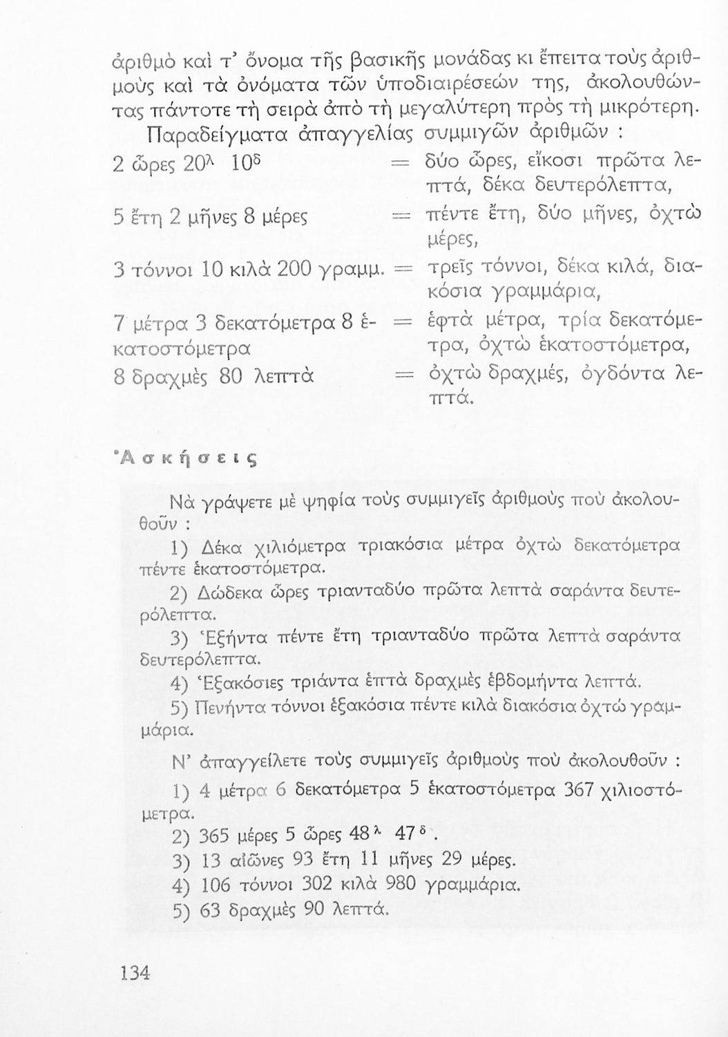 Σχολικό εγχειρίδιο Μαθηματικών ΣΤ΄ Δημοτικού που περιλαμβάνει ασκήσεις λογιστικού χαρακτήρα και ασκήσεις μέτρησης γεωμετρικών σχημάτων.
