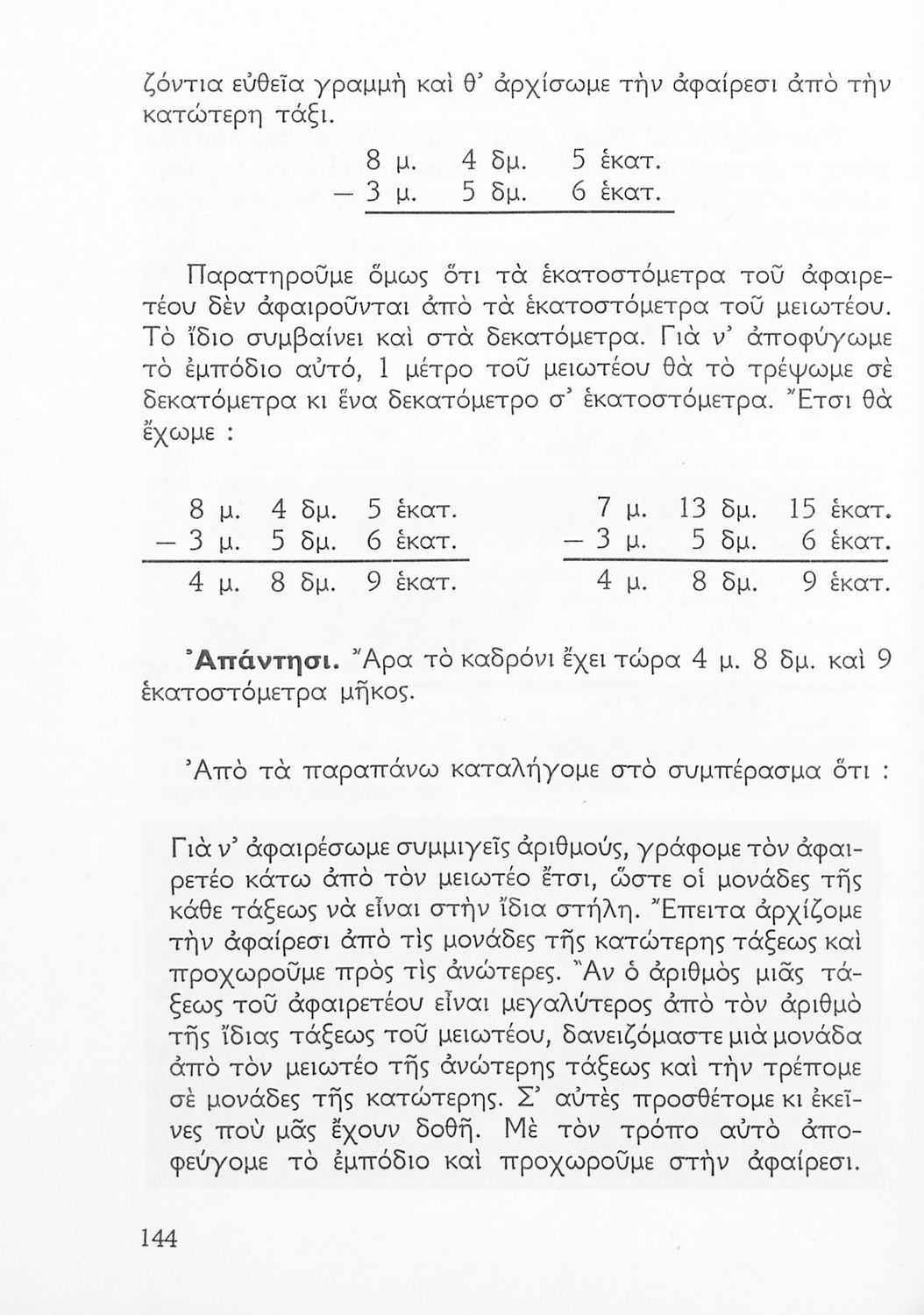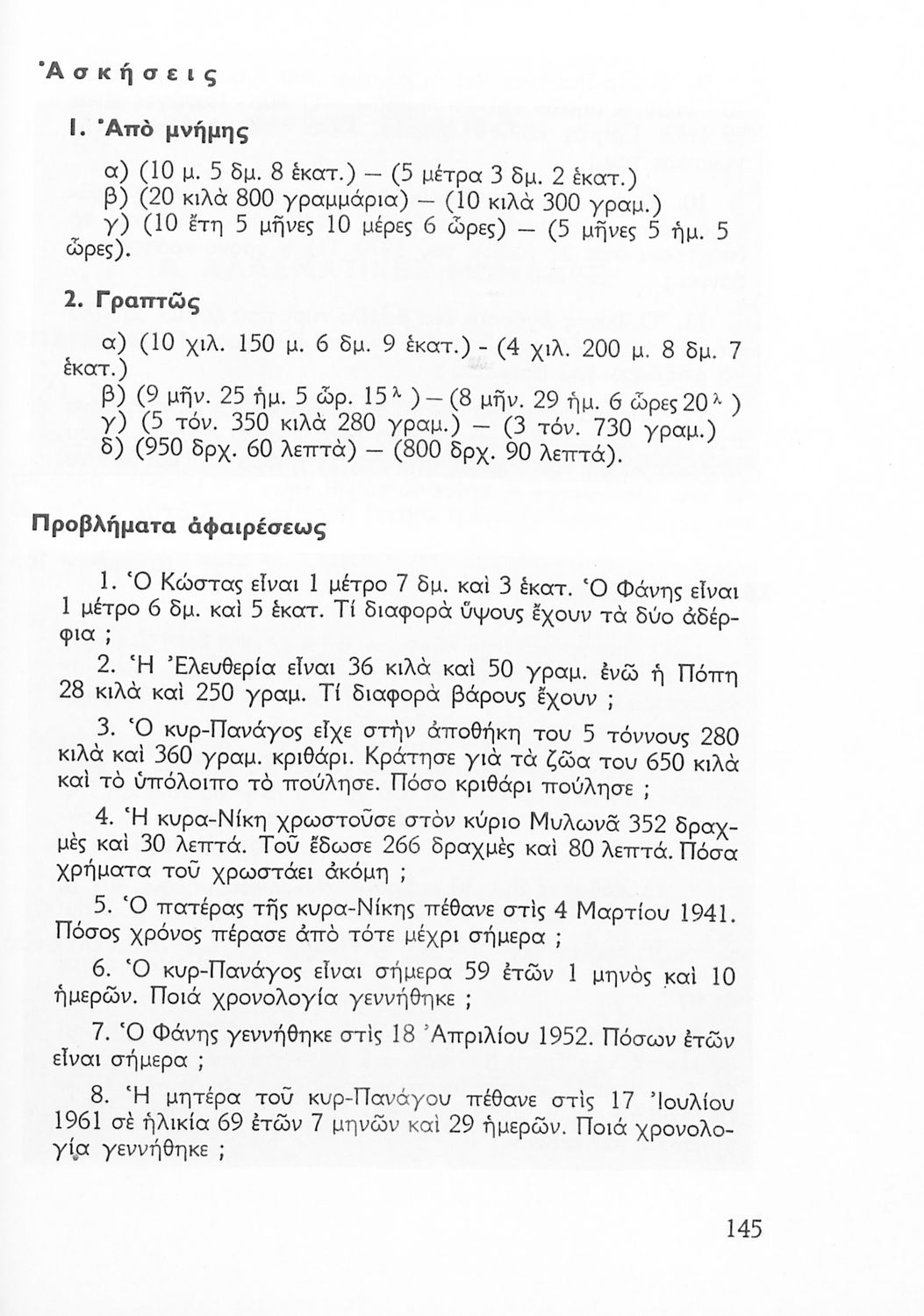 LDR 01191 2200217 4500 035 ## _a03-20555967 040 ## _aΒιβλιοθήκη της Βουλής των Ελλήνων 041 ## _ael 100 ## _aΗλίας Σαμαράς 110 ## _a20555967 245 0# _aΑριθμητική και Γεωμετρία Δ΄ τάξεως Δημοτικού 250 ## _a2η Έκδοση 260 ## _aΑθήνα _bΟργανισμός Εκδόσεως Διδακτικών Βιβλίων _c1973 300 ## _a167 _bΕικόνες, σκίτσα, έγχρωμα 520 ## _aΣχολικό εγχειρίδιο Μαθηματικών Δ ΄ Δημοτικού που αποτελεί εισαγωγή στους βασικούς αριθμούς και τις αριθμητικές πράξεις ακέραιων και κλασματικών αριθμών. 521 ## _aΔ' Δημοτικού 522 ## _aΕλλάδα 546 ## _aΔημοτική 563 ## _aΜαλακό Εξώφυλλο 583 ## _a2306/12-2-1973 _c1973 650 #4 _aΑκέραιοι αριθμοί _aΑφαίρεση _aΔιαίρεση _aΚλασματικοί αριθμοί _aΠολλαπλασιασμός _aΠρόσθεση