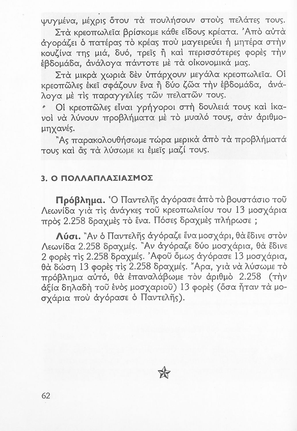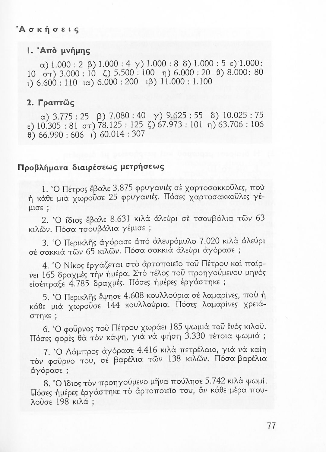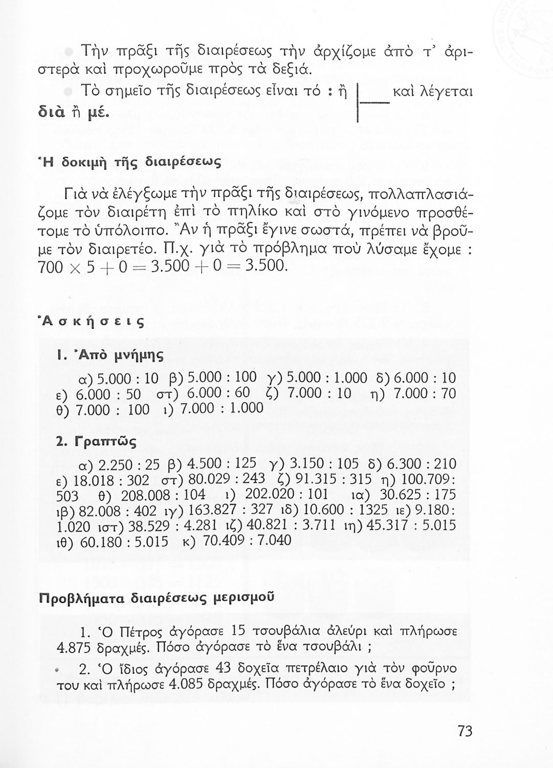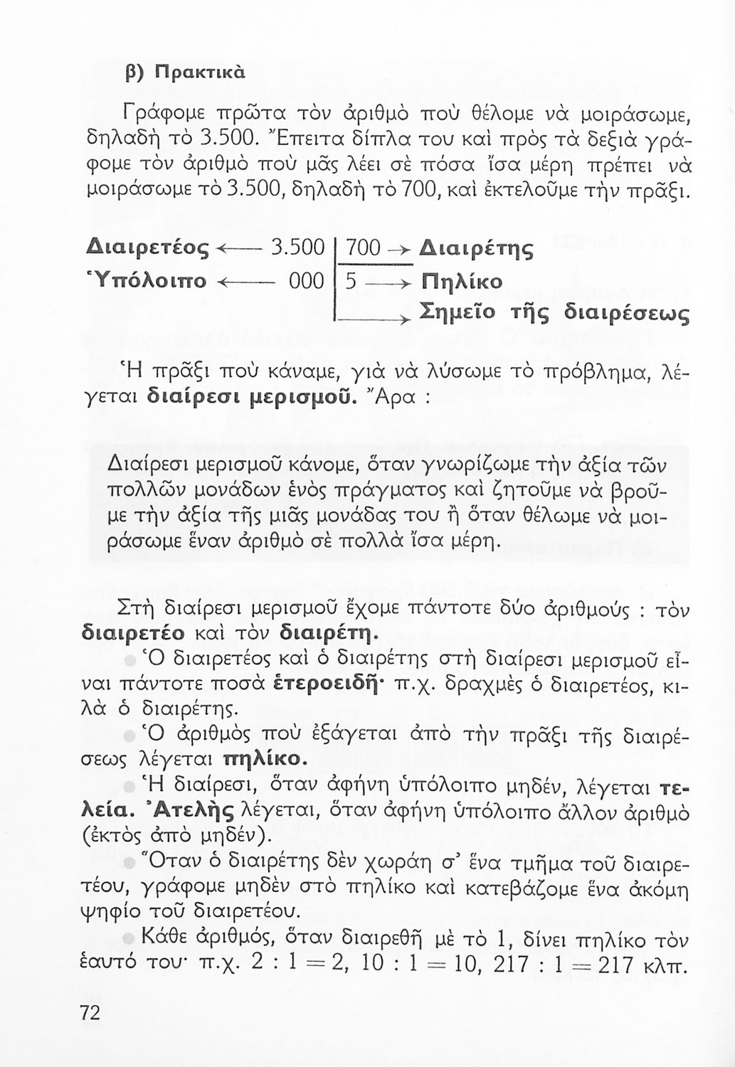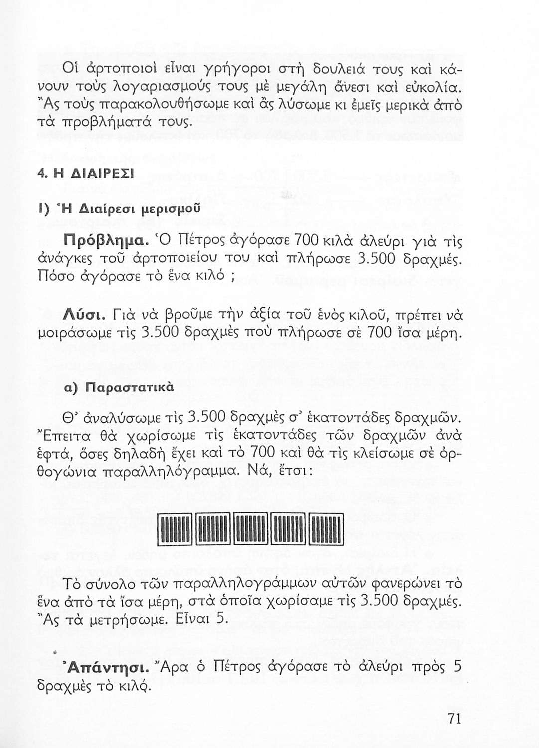 Σχολικό εγχειρίδιο Αριθμητικής Δ΄ Δημοτικού χωρισμένο σε πρακτικά προβλήματα και τις λύσεις τους που περιλαμβάνει και κάποια στοιχεία Γεωμετρίας.
