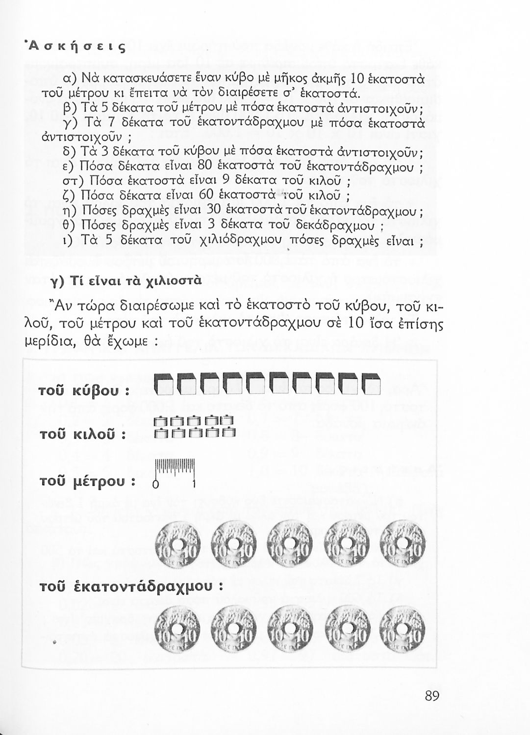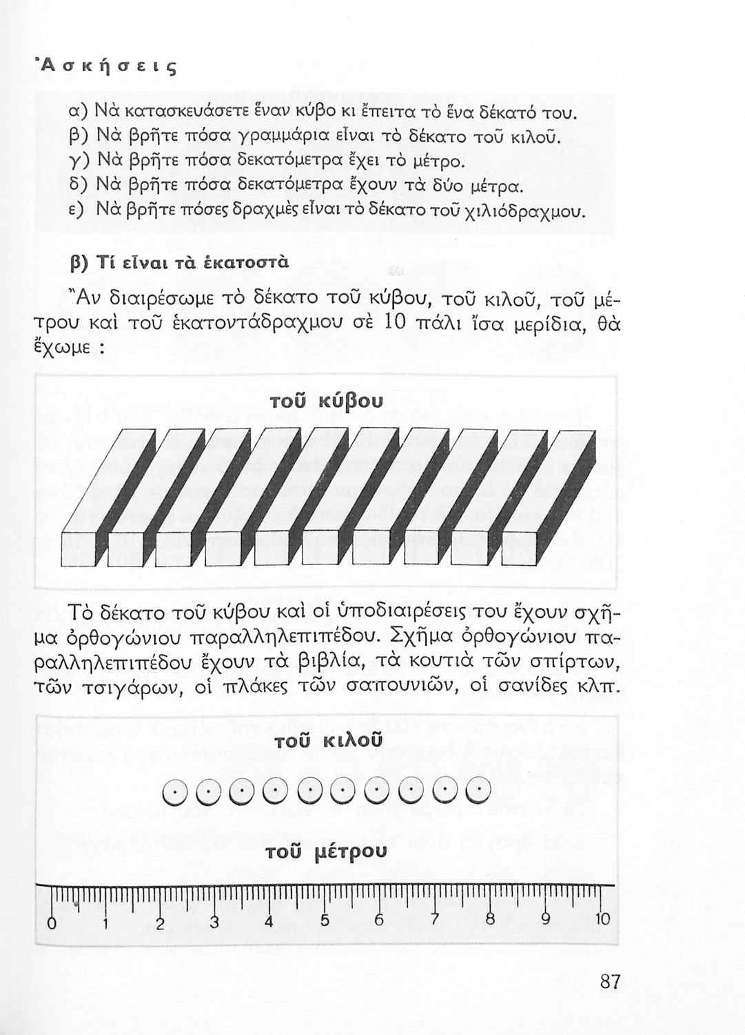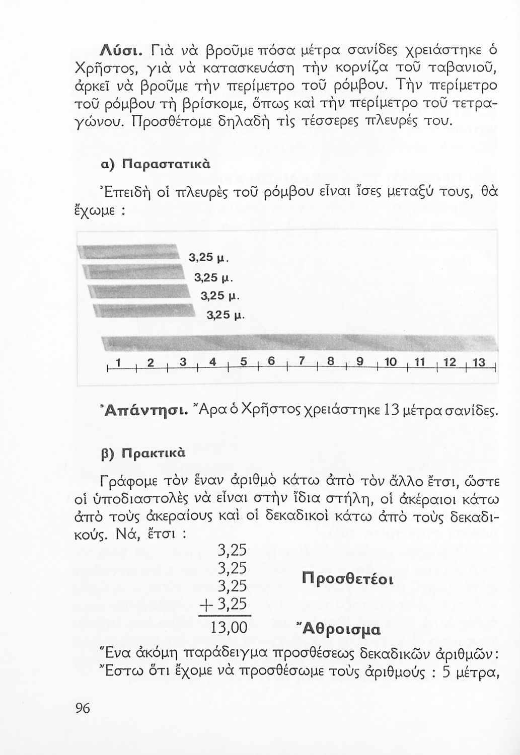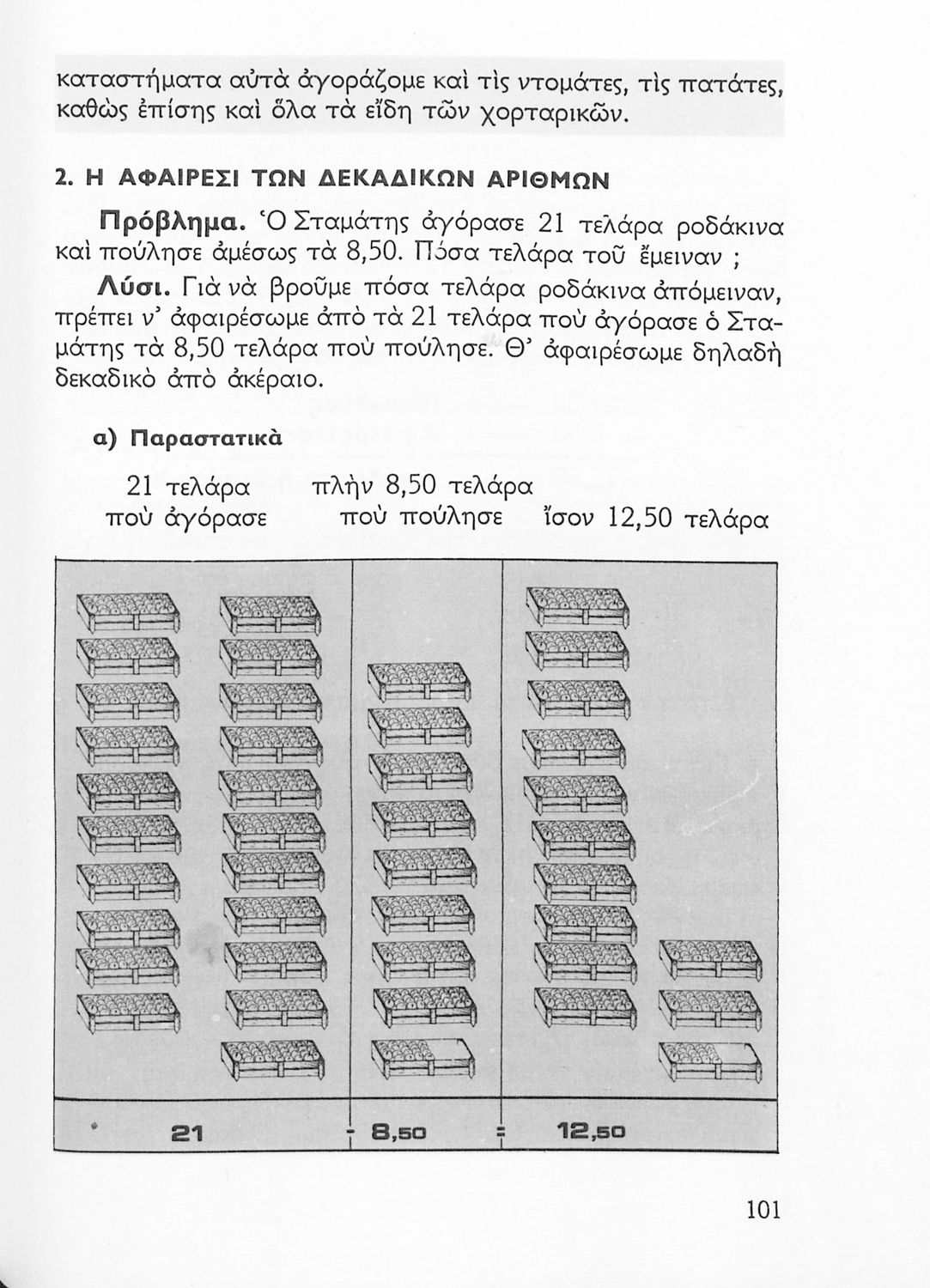 Σχολικό εγχειρίδιο Αριθμητικής Δ΄ Δημοτικού χωρισμένο σε πρακτικά προβλήματα και τις λύσεις τους που περιλαμβάνει και κάποια στοιχεία Γεωμετρίας.