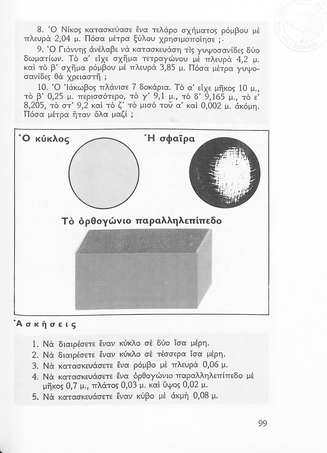 Σχολικό εγχειρίδιο Μαθηματικών ΣΤ΄ Δημοτικού που περιλαμβάνει ασκήσεις λογιστικού χαρακτήρα και ασκήσεις μέτρησης γεωμετρικών σχημάτων.