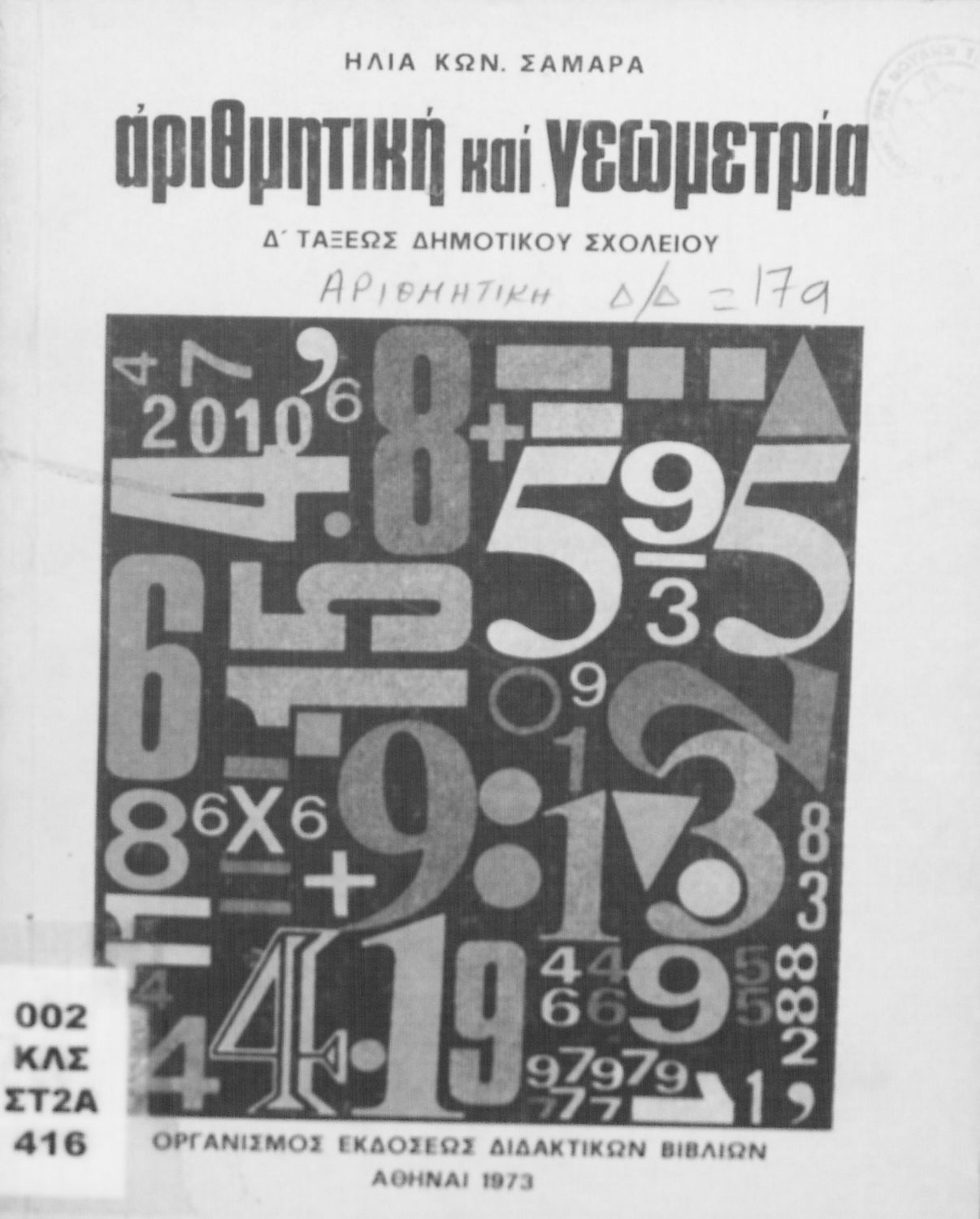 Βαθμίδα εκπαίδευσης: Πρωτοβάθμια Τάξη: Δ' Δημοτικού Μάθημα: Μαθηματικά Γλώσσα: Δημοτική Παρουσίαση περιεχομένου: Σχολικό εγχειρίδιο Μαθηματικών Δ ΄ Δημοτικού που αποτελεί εισαγωγή στους βασικούς αριθμούς και τις αριθμητικές πράξεις ακέραιων και κλασματικών αριθμών. |