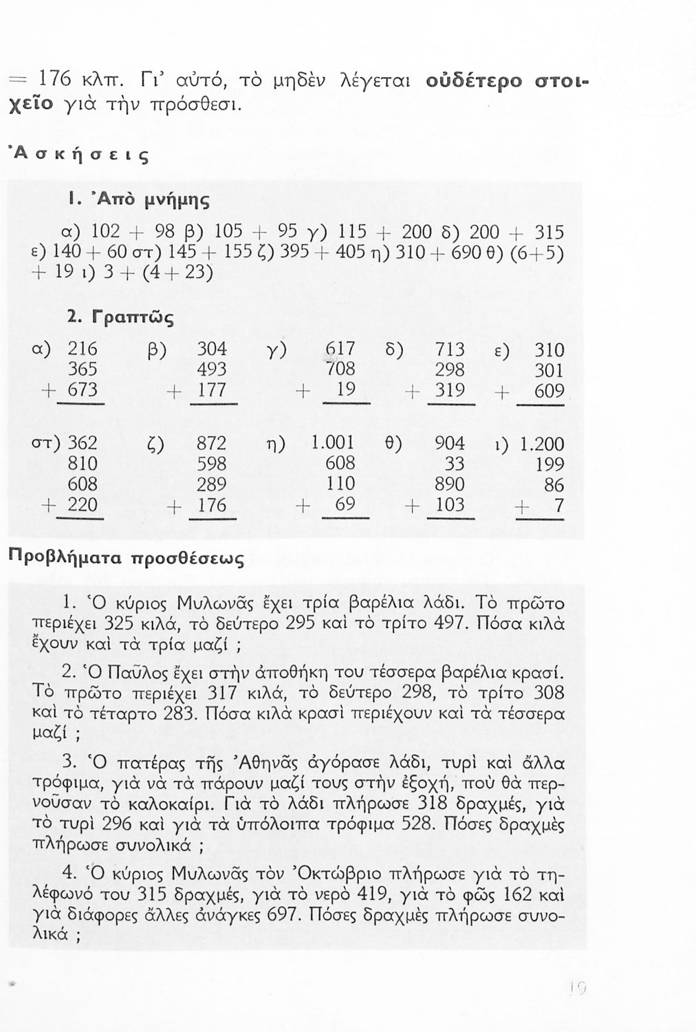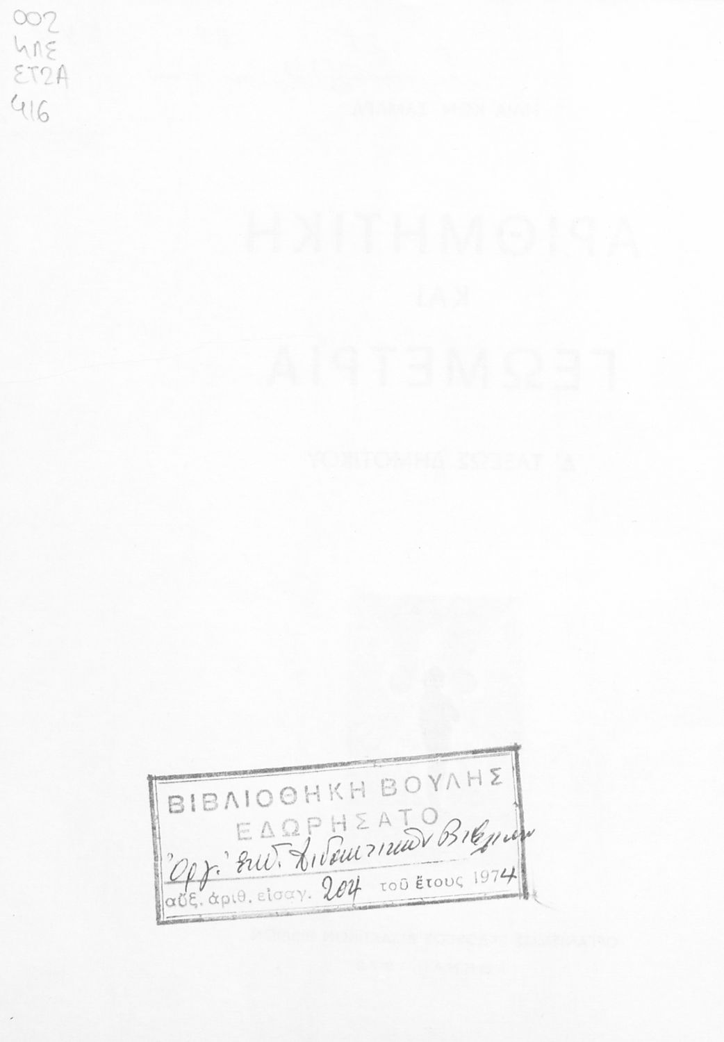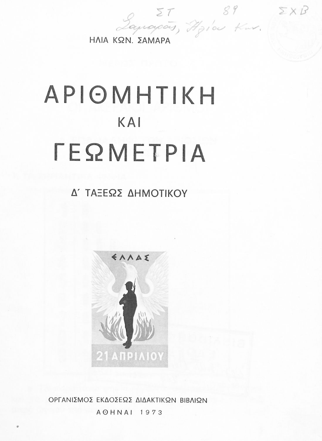 LDR 01191 2200217 4500 035 ## _a03-20555967 040 ## _aΒιβλιοθήκη της Βουλής των Ελλήνων 041 ## _ael 100 ## _aΗλίας Σαμαράς 110 ## _a20555967 245 0# _aΑριθμητική και Γεωμετρία Δ΄ τάξεως Δημοτικού 250 ## _a2η Έκδοση 260 ## _aΑθήνα _bΟργανισμός Εκδόσεως Διδακτικών Βιβλίων _c1973 300 ## _a167 _bΕικόνες, σκίτσα, έγχρωμα 520 ## _aΣχολικό εγχειρίδιο Μαθηματικών Δ ΄ Δημοτικού που αποτελεί εισαγωγή στους βασικούς αριθμούς και τις αριθμητικές πράξεις ακέραιων και κλασματικών αριθμών. 521 ## _aΔ' Δημοτικού 522 ## _aΕλλάδα 546 ## _aΔημοτική 563 ## _aΜαλακό Εξώφυλλο 583 ## _a2306/12-2-1973 _c1973 650 #4 _aΑκέραιοι αριθμοί _aΑφαίρεση _aΔιαίρεση _aΚλασματικοί αριθμοί _aΠολλαπλασιασμός _aΠρόσθεση