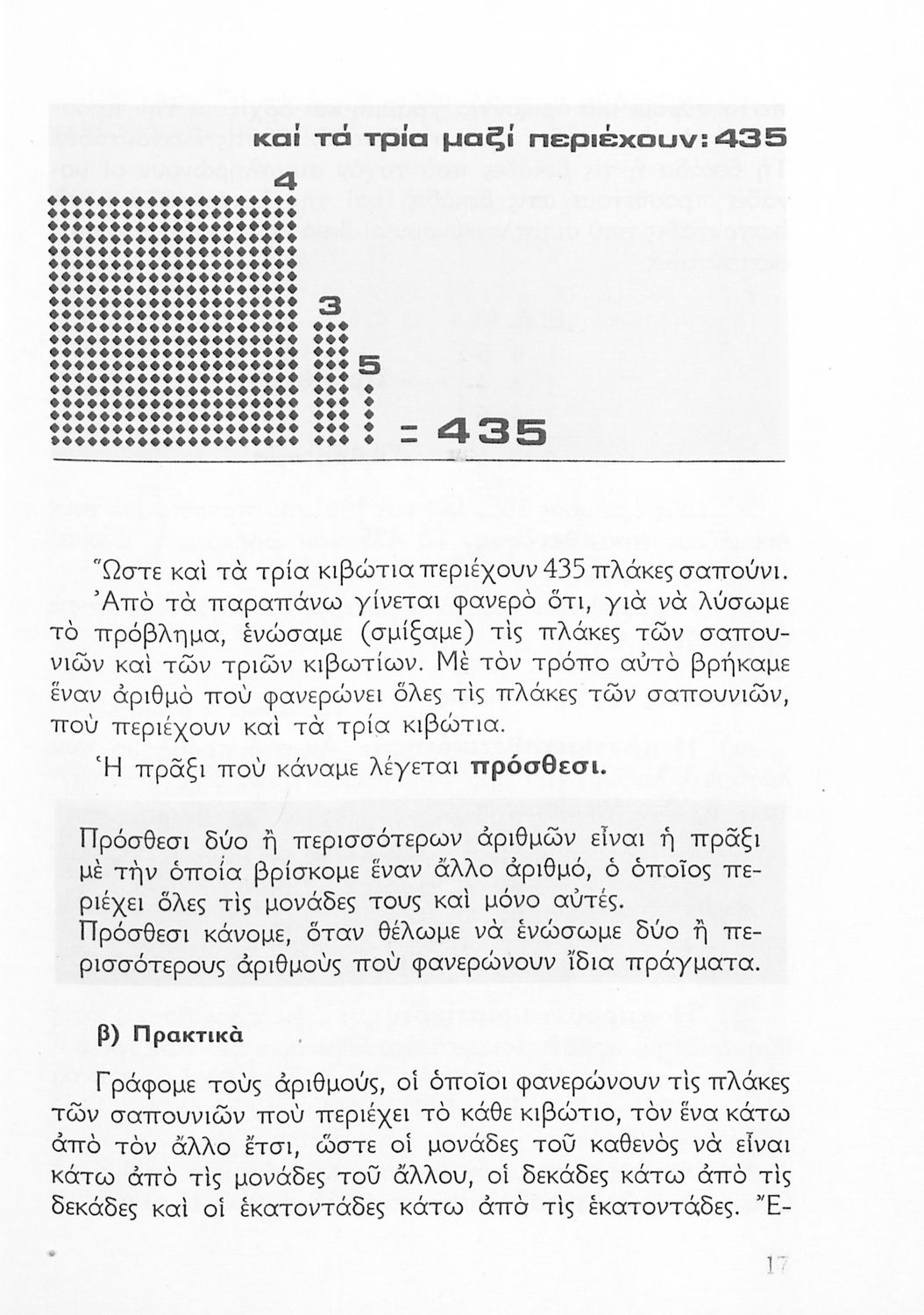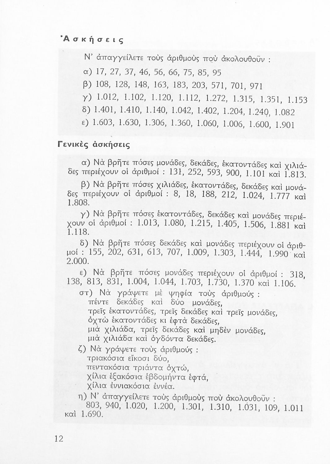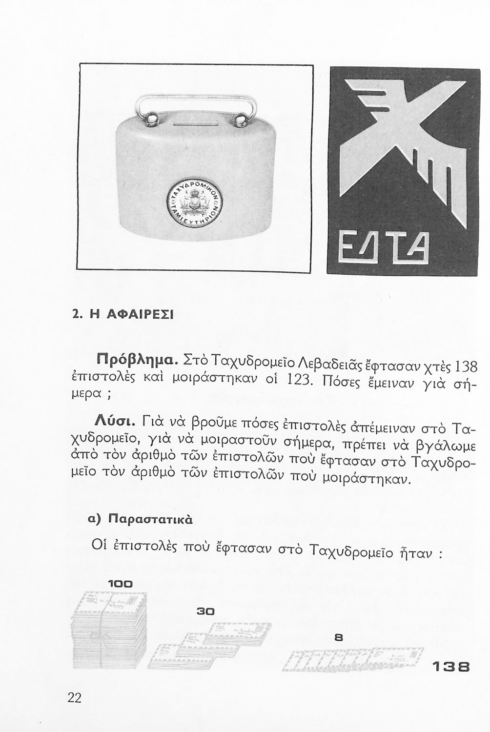 LDR 01191 2200217 4500 035 ## _a03-20555967 040 ## _aΒιβλιοθήκη της Βουλής των Ελλήνων 041 ## _ael 100 ## _aΗλίας Σαμαράς 110 ## _a20555967 245 0# _aΑριθμητική και Γεωμετρία Δ΄ τάξεως Δημοτικού 250 ## _a2η Έκδοση 260 ## _aΑθήνα _bΟργανισμός Εκδόσεως Διδακτικών Βιβλίων _c1973 300 ## _a167 _bΕικόνες, σκίτσα, έγχρωμα 520 ## _aΣχολικό εγχειρίδιο Μαθηματικών Δ ΄ Δημοτικού που αποτελεί εισαγωγή στους βασικούς αριθμούς και τις αριθμητικές πράξεις ακέραιων και κλασματικών αριθμών. 521 ## _aΔ' Δημοτικού 522 ## _aΕλλάδα 546 ## _aΔημοτική 563 ## _aΜαλακό Εξώφυλλο 583 ## _a2306/12-2-1973 _c1973 650 #4 _aΑκέραιοι αριθμοί _aΑφαίρεση _aΔιαίρεση _aΚλασματικοί αριθμοί _aΠολλαπλασιασμός _aΠρόσθεση