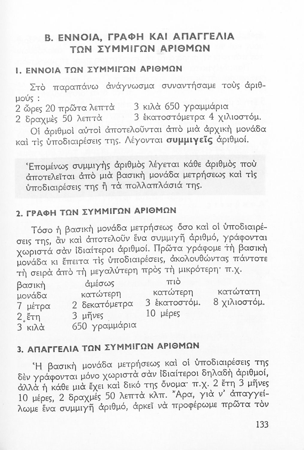 Σχολικό εγχειρίδιο Αριθμητικής Δ΄ Δημοτικού χωρισμένο σε πρακτικά προβλήματα και τις λύσεις τους που εστιάζει στις πράξεις με ακέραιους και συμμιγείς αριθμούς και περιλαμβάνει στοιχεία Γεωμετρίας.