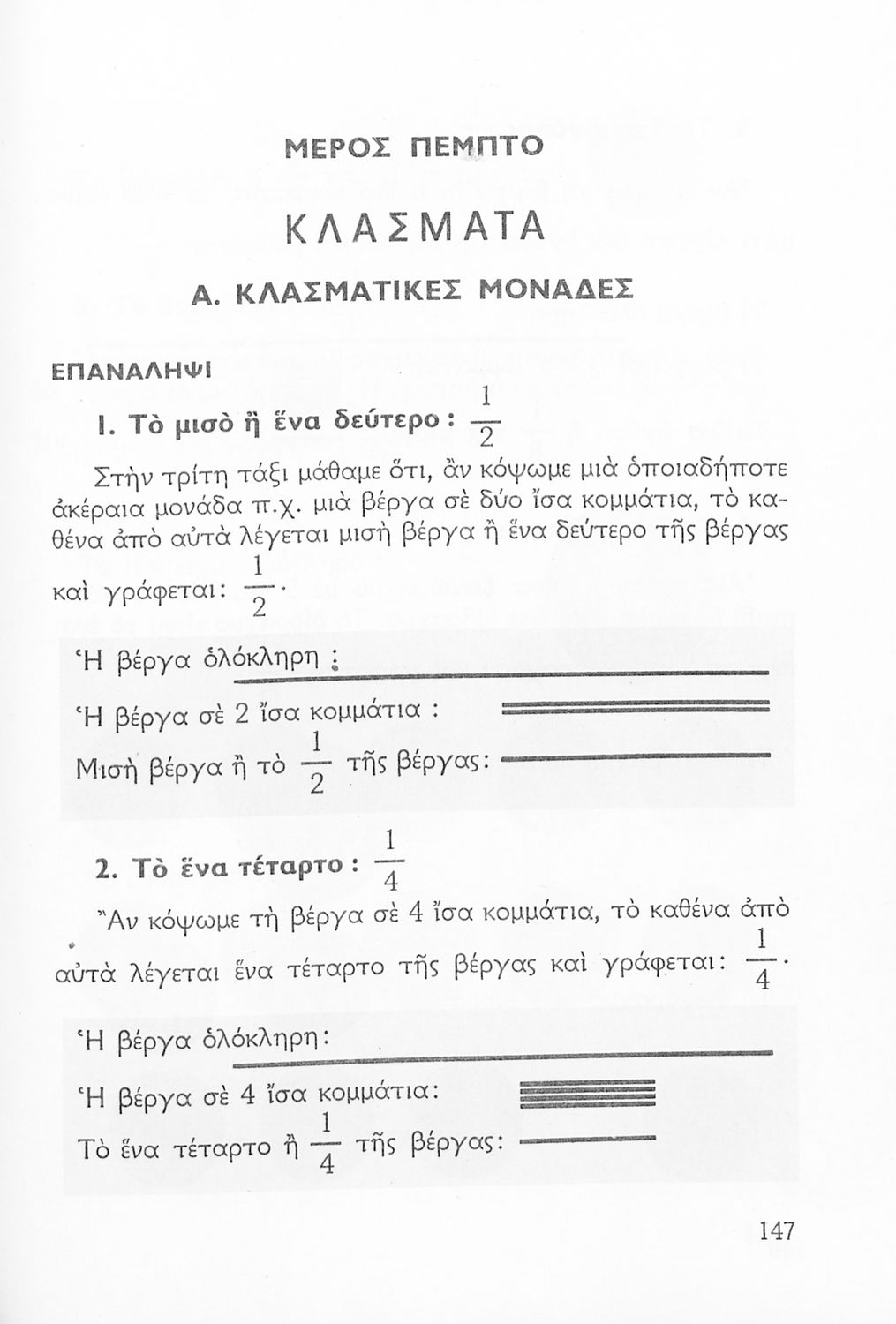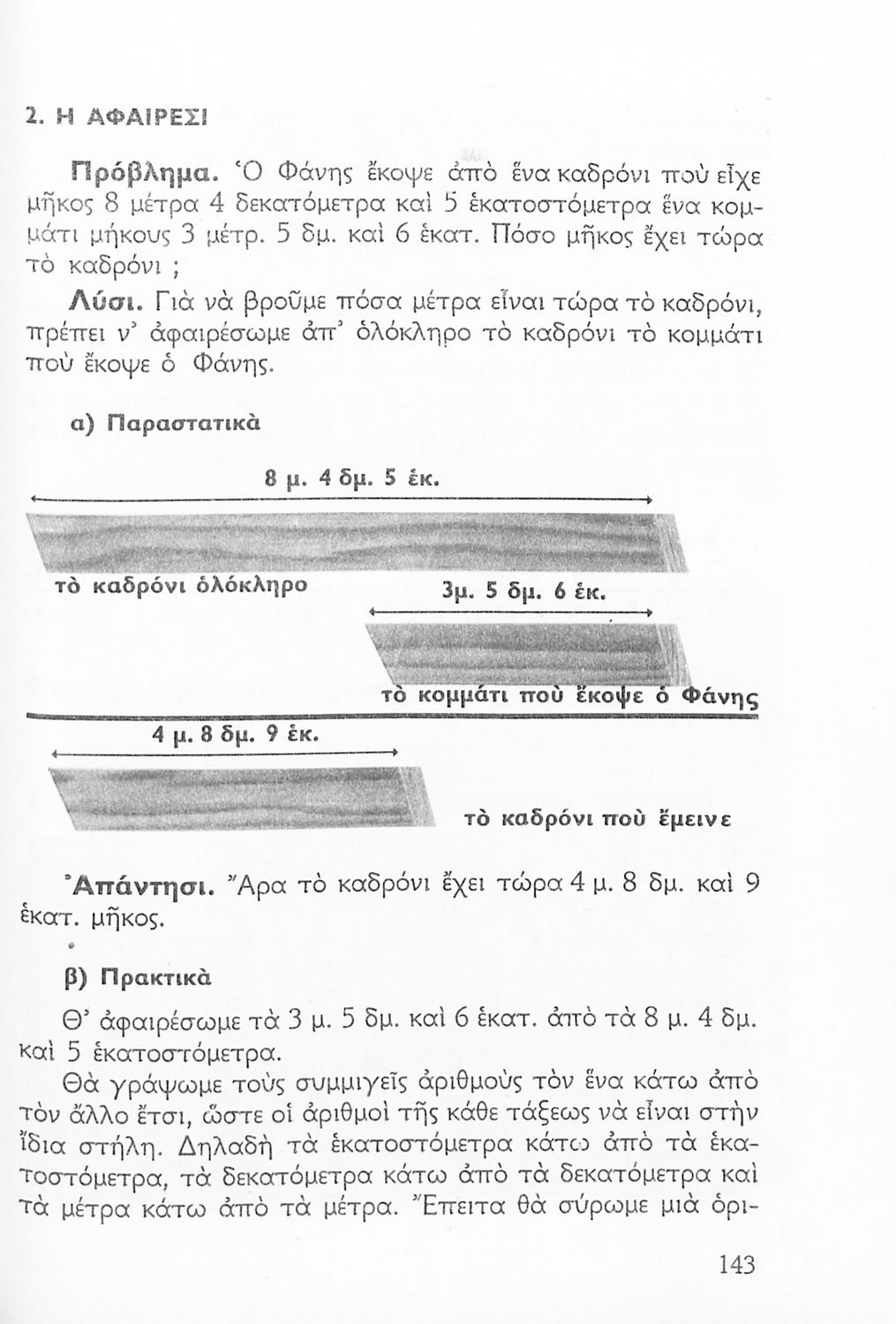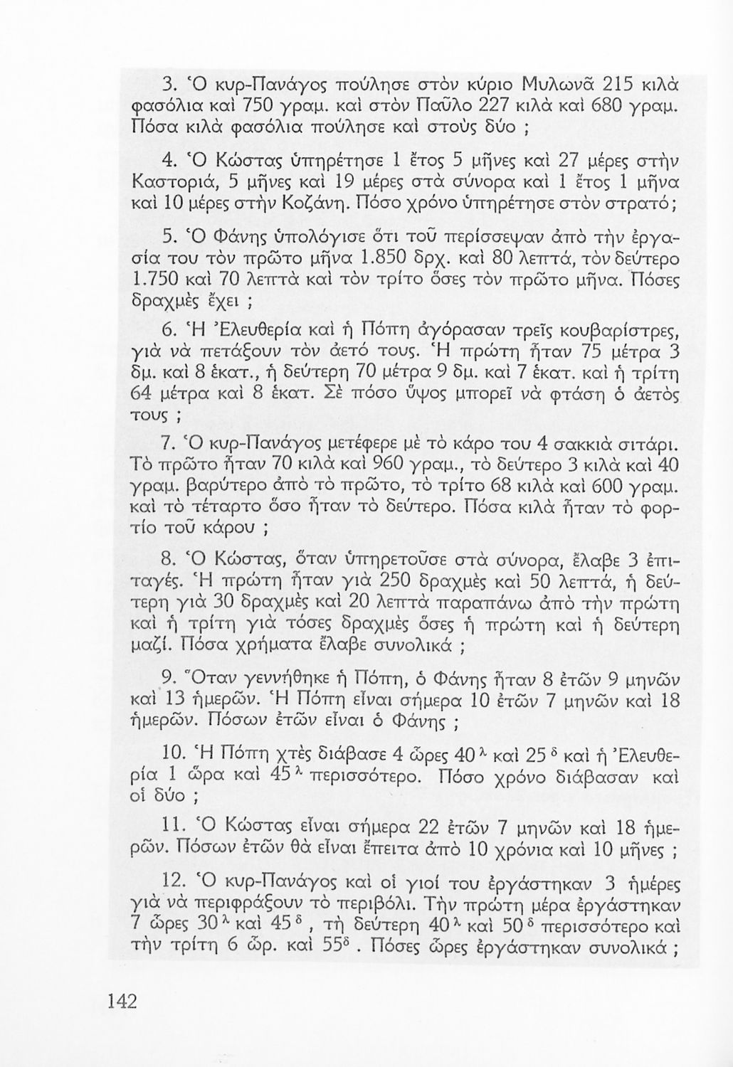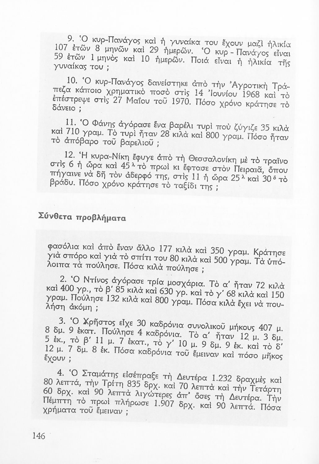 Σχολικό εγχειρίδιο Αριθμητικής Δ΄ Δημοτικού χωρισμένο σε πρακτικά προβλήματα και τις λύσεις τους που περιλαμβάνει και κάποια στοιχεία Γεωμετρίας.