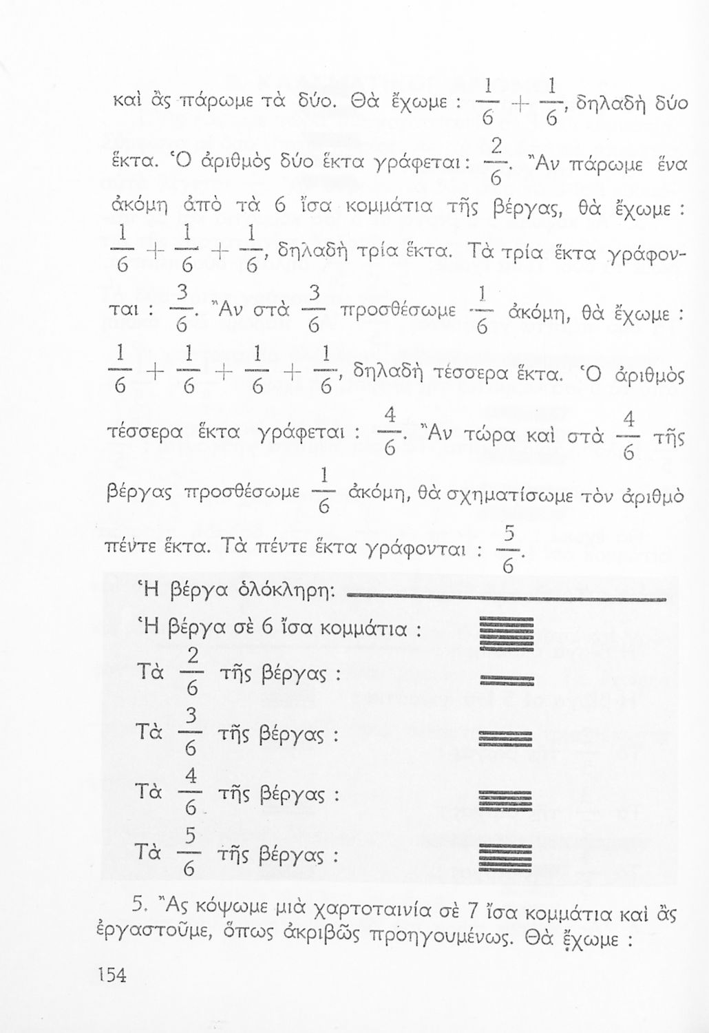 Σχολικό εγχειρίδιο Αριθμητικής Δ΄ Δημοτικού χωρισμένο σε πρακτικά προβλήματα και τις λύσεις τους που εστιάζει στις πράξεις με ακέραιους και συμμιγείς αριθμούς και περιλαμβάνει στοιχεία Γεωμετρίας.