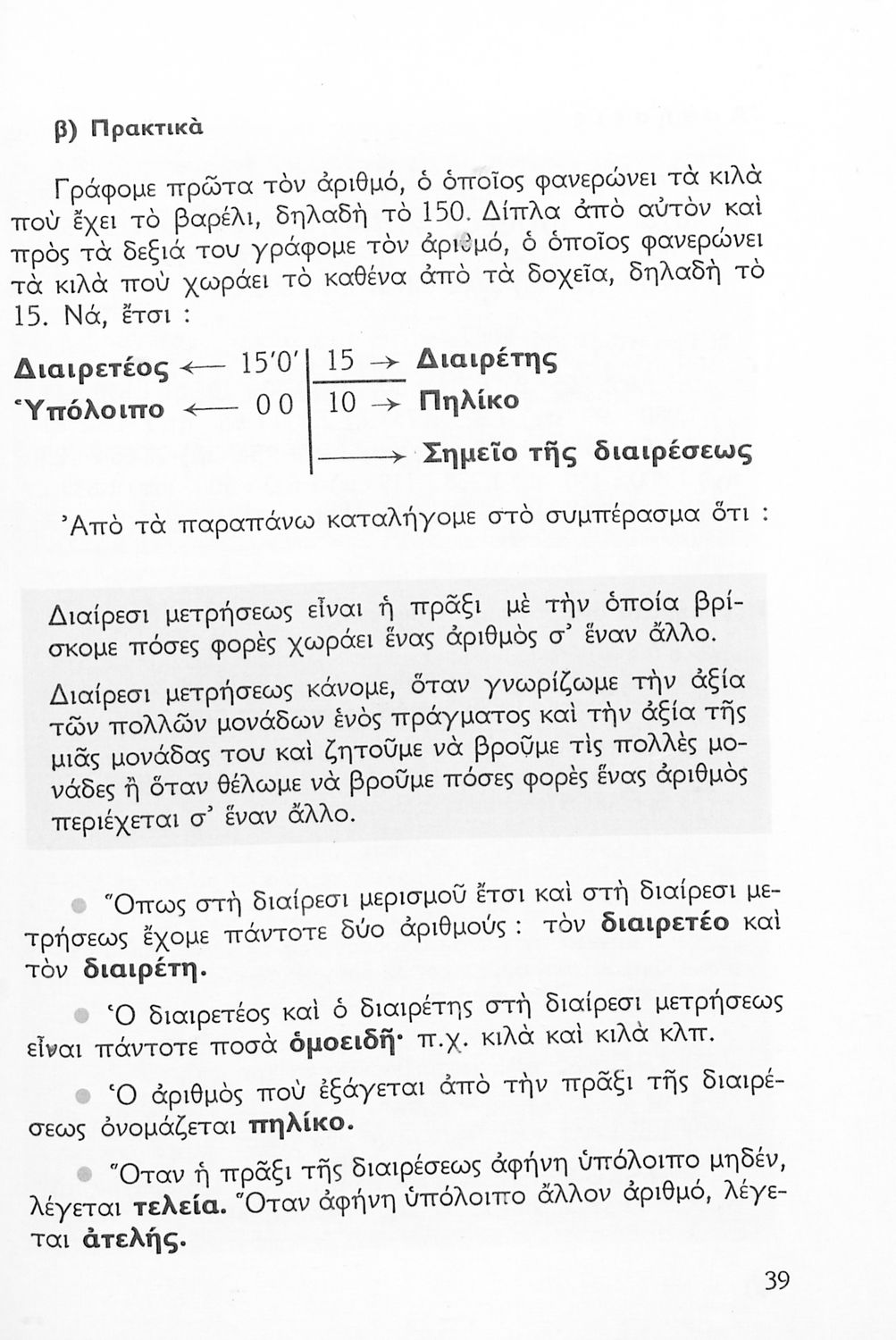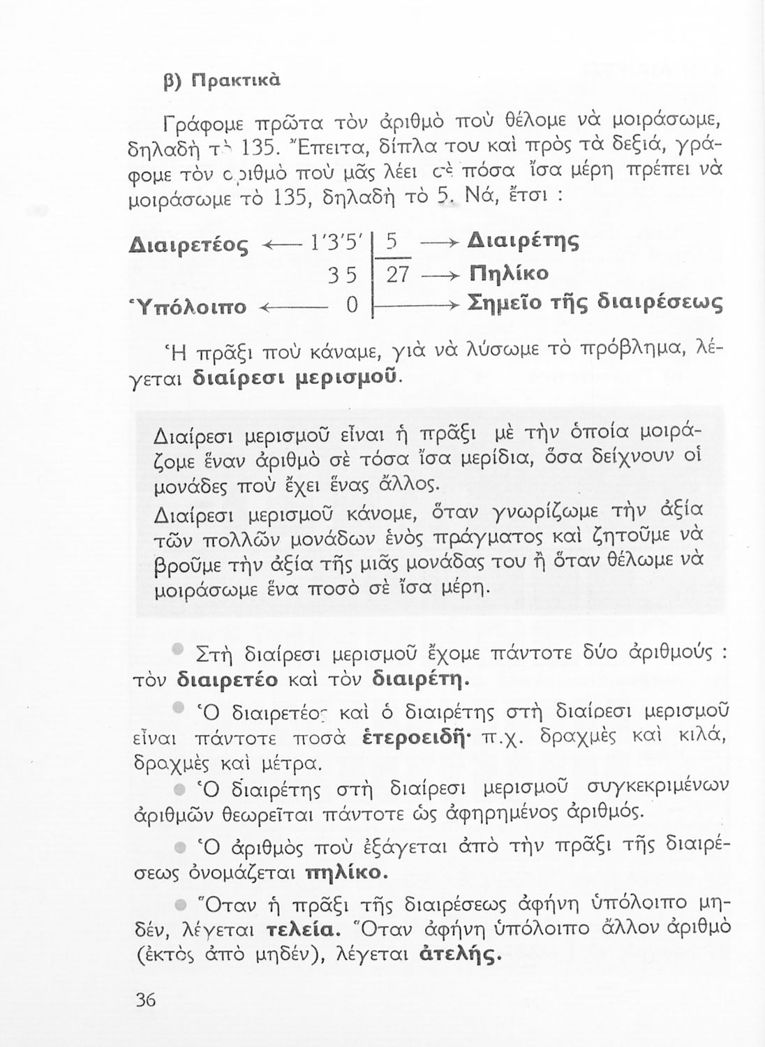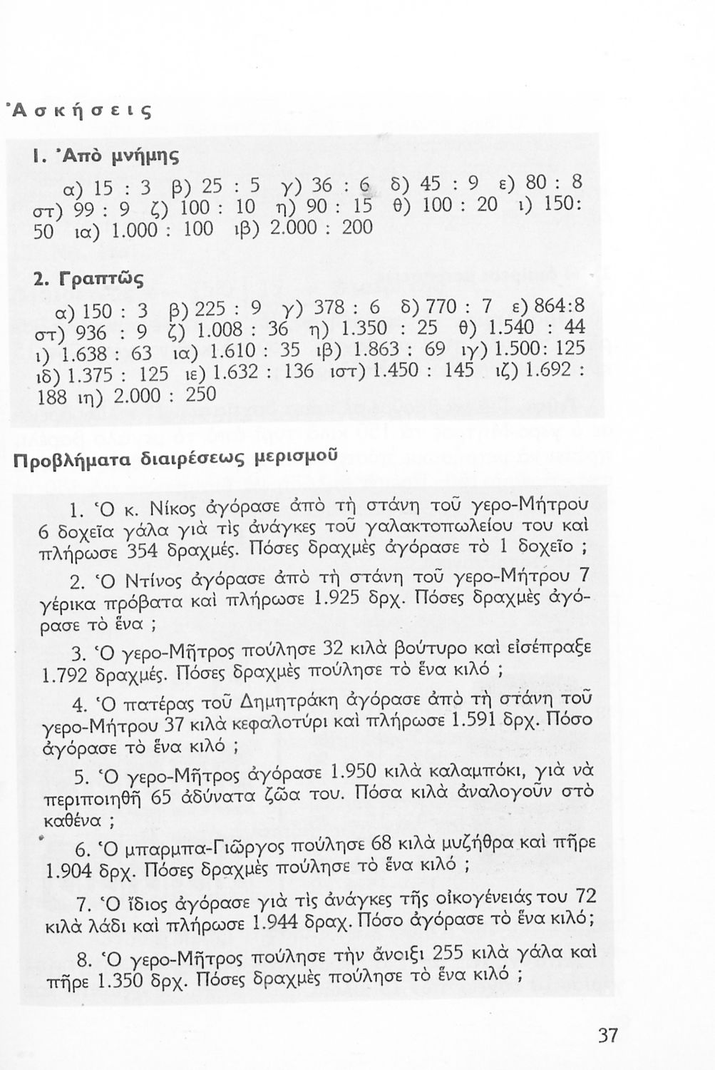 Σχολικό εγχειρίδιο Αριθμητικής Δ΄ Δημοτικού χωρισμένο σε πρακτικά προβλήματα και τις λύσεις τους που περιλαμβάνει και κάποια στοιχεία Γεωμετρίας.