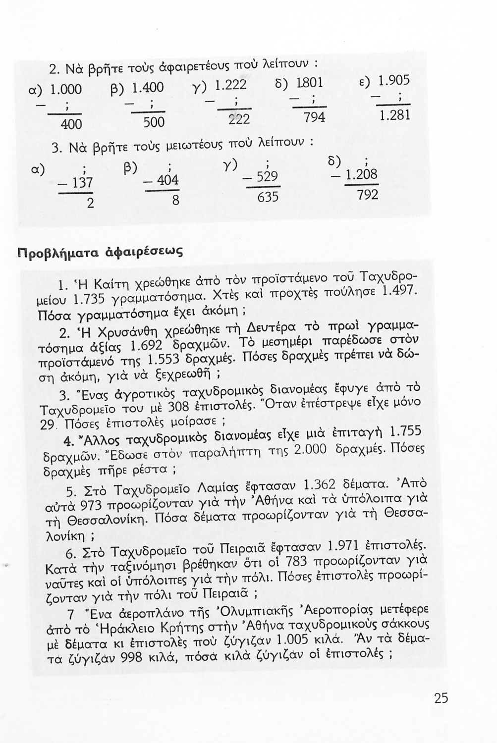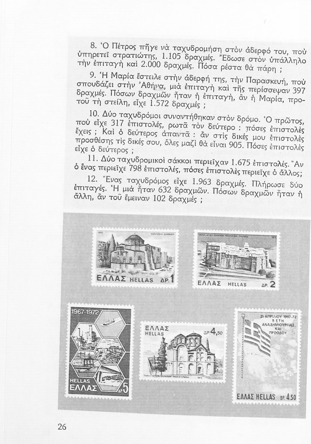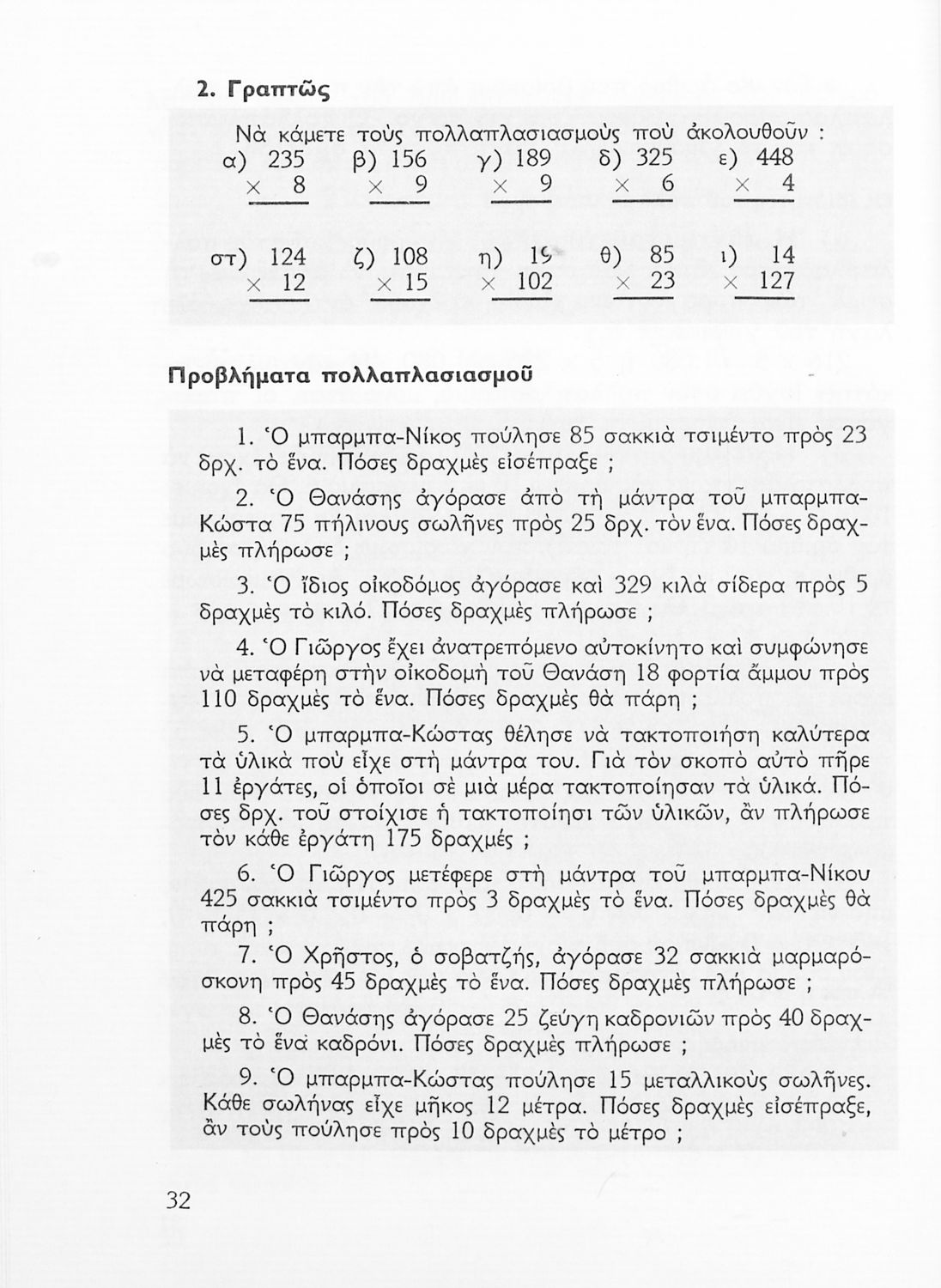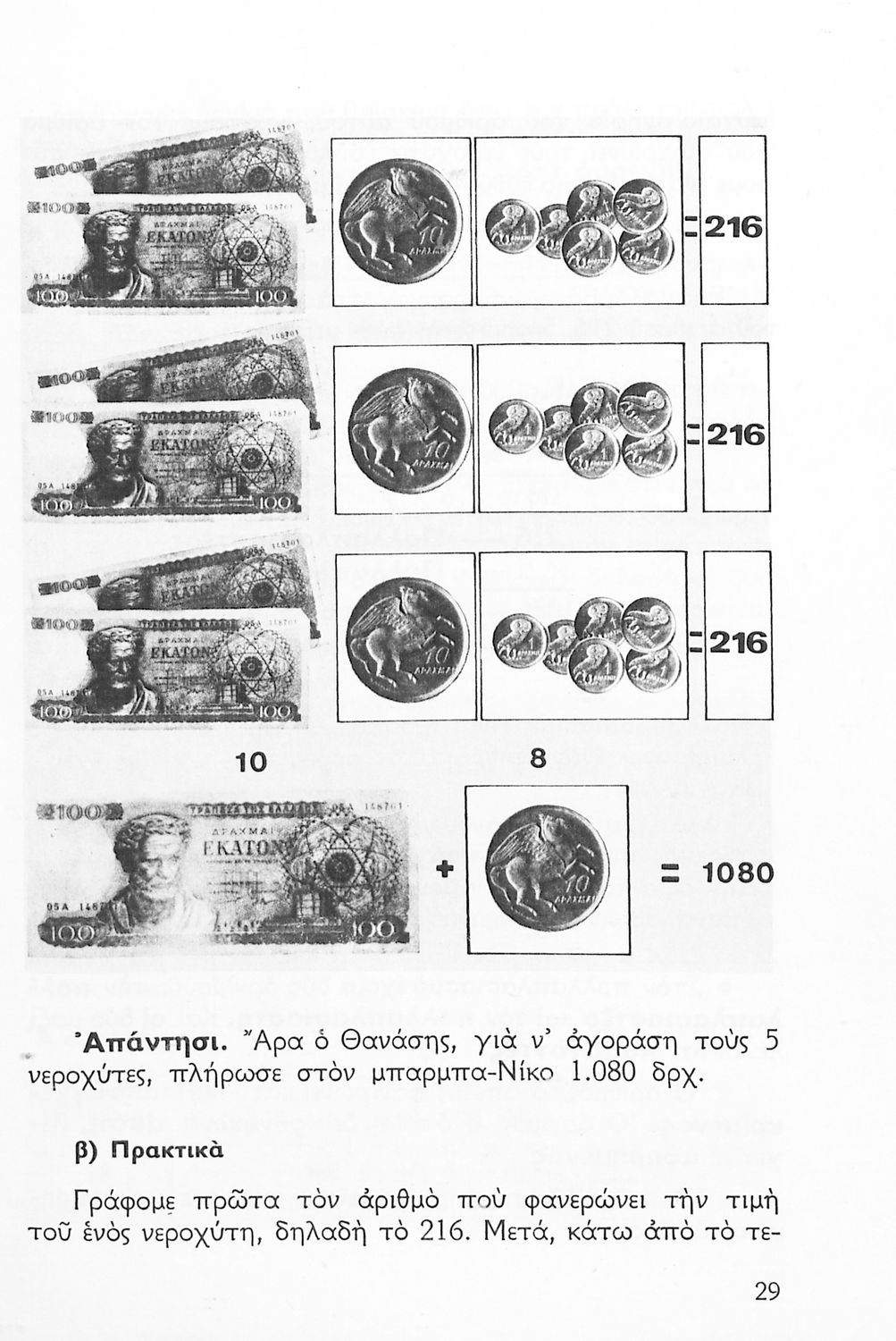 Σχολικό εγχειρίδιο Αριθμητικής Δ΄ Δημοτικού χωρισμένο σε πρακτικά προβλήματα και τις λύσεις τους που περιλαμβάνει και κάποια στοιχεία Γεωμετρίας.