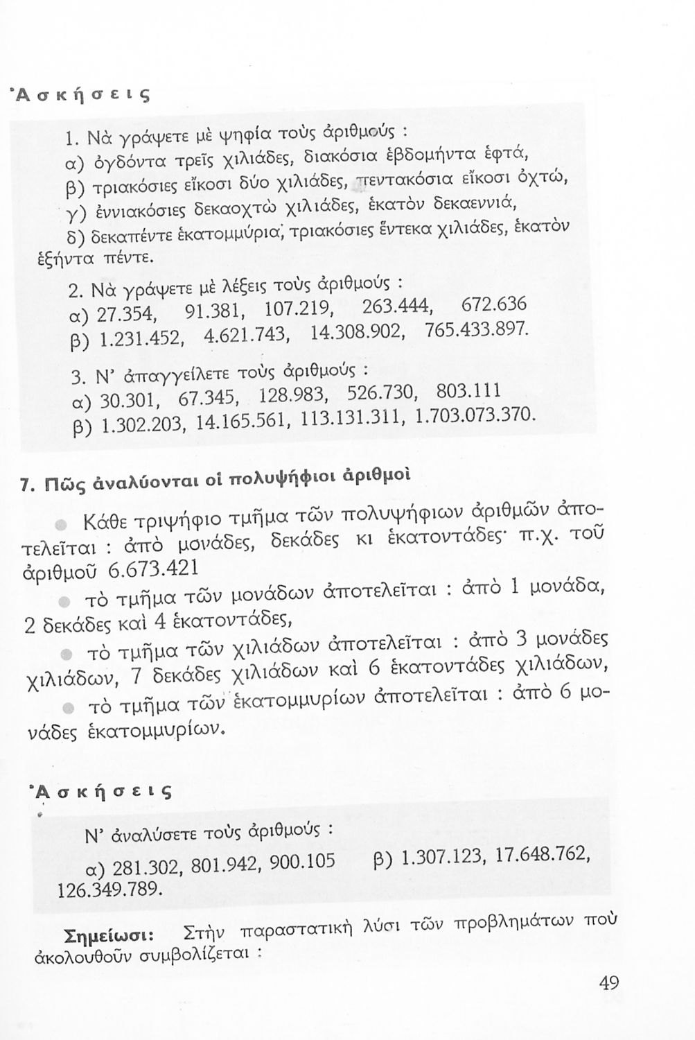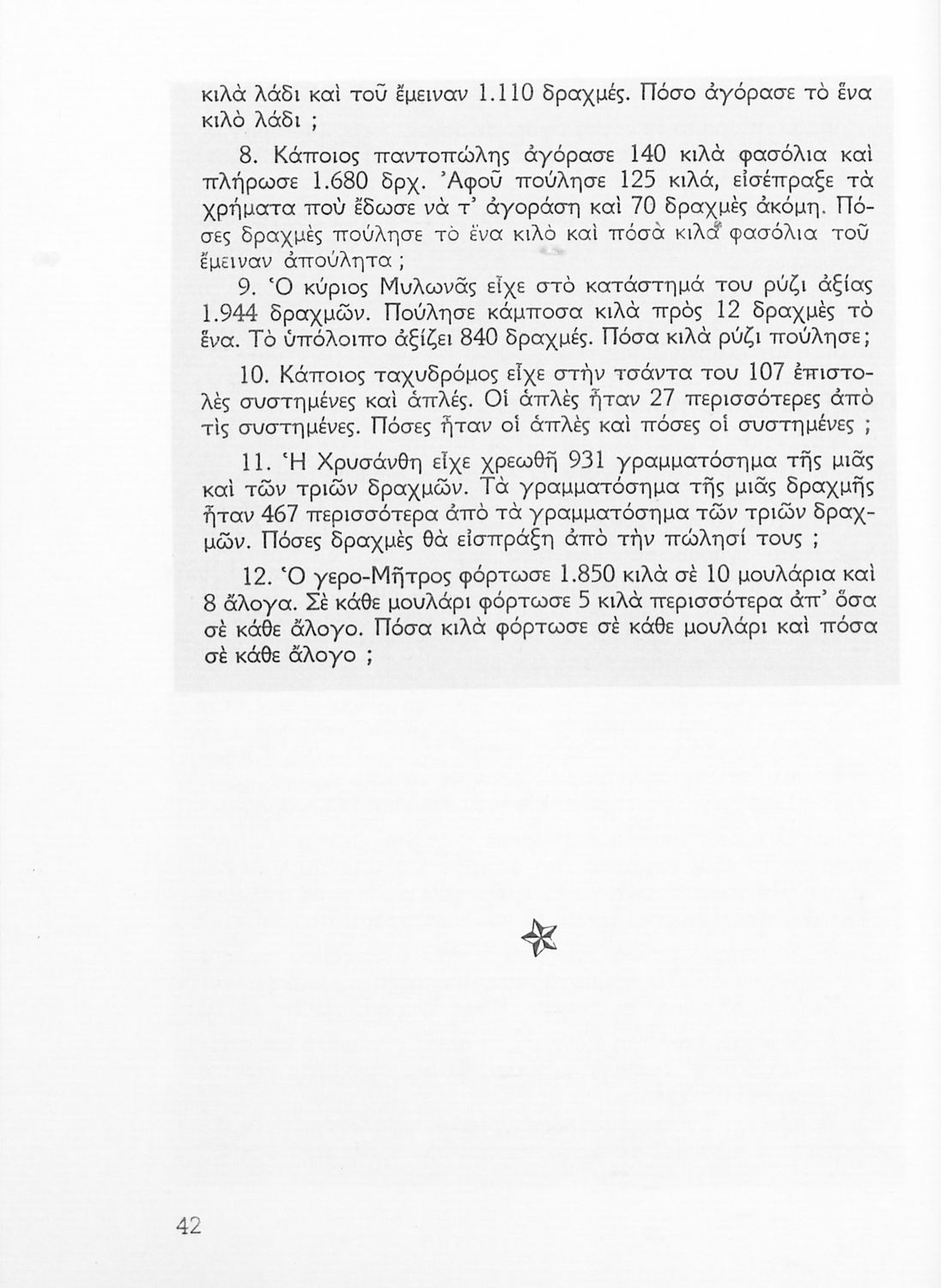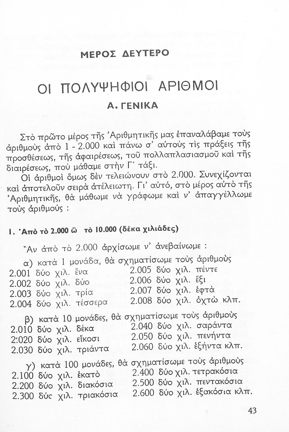 Σχολικό εγχειρίδιο Αριθμητικής Δ΄ Δημοτικού χωρισμένο σε πρακτικά προβλήματα και τις λύσεις τους που περιλαμβάνει και κάποια στοιχεία Γεωμετρίας.