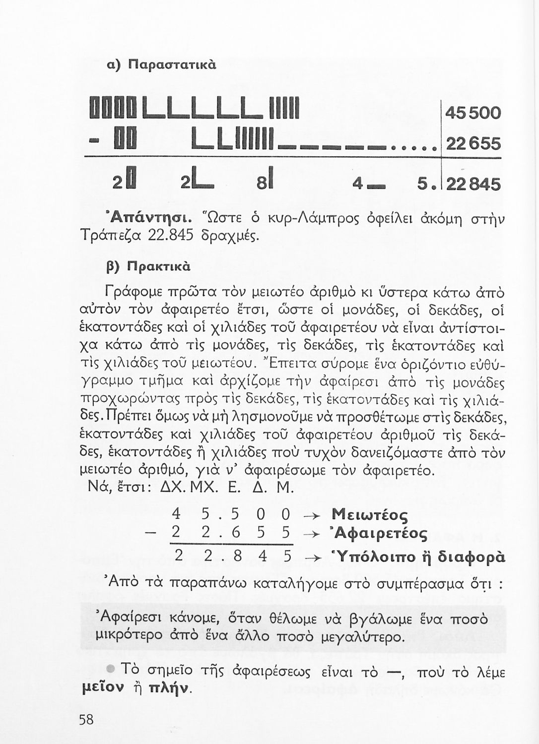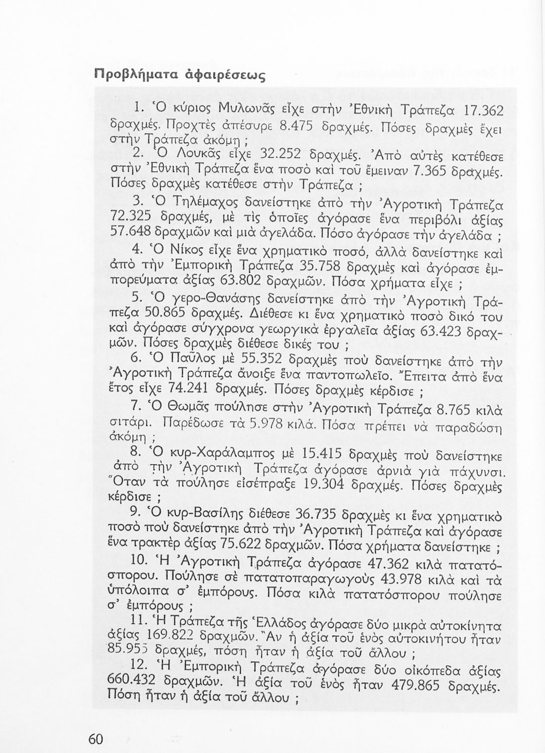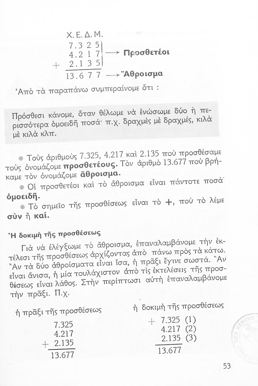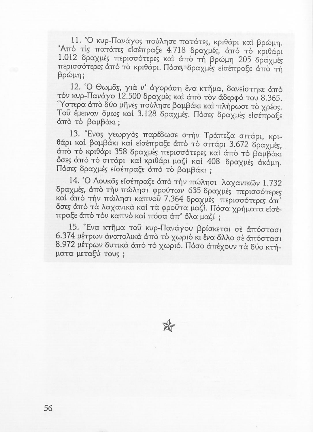 Σχολικό εγχειρίδιο Αριθμητικής Δ΄ Δημοτικού χωρισμένο σε πρακτικά προβλήματα και τις λύσεις τους που περιλαμβάνει και κάποια στοιχεία Γεωμετρίας.