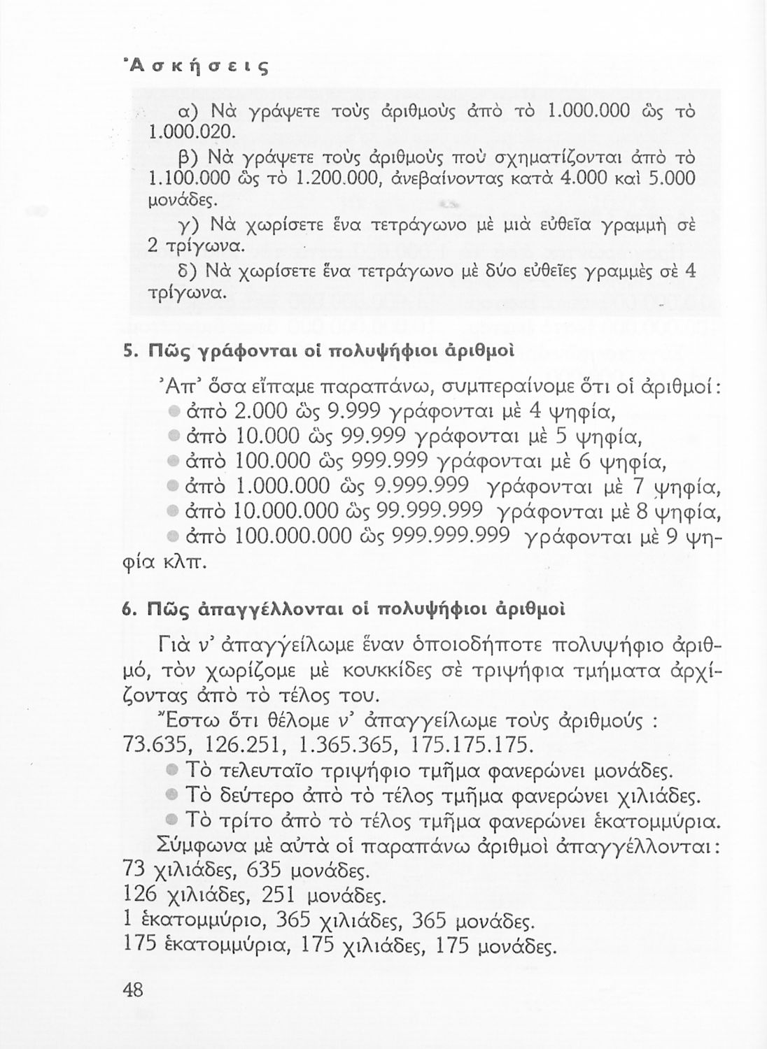 Σχολικό εγχειρίδιο Μαθηματικών ΣΤ΄ Δημοτικού που περιλαμβάνει ασκήσεις λογιστικού χαρακτήρα και ασκήσεις μέτρησης γεωμετρικών σχημάτων.