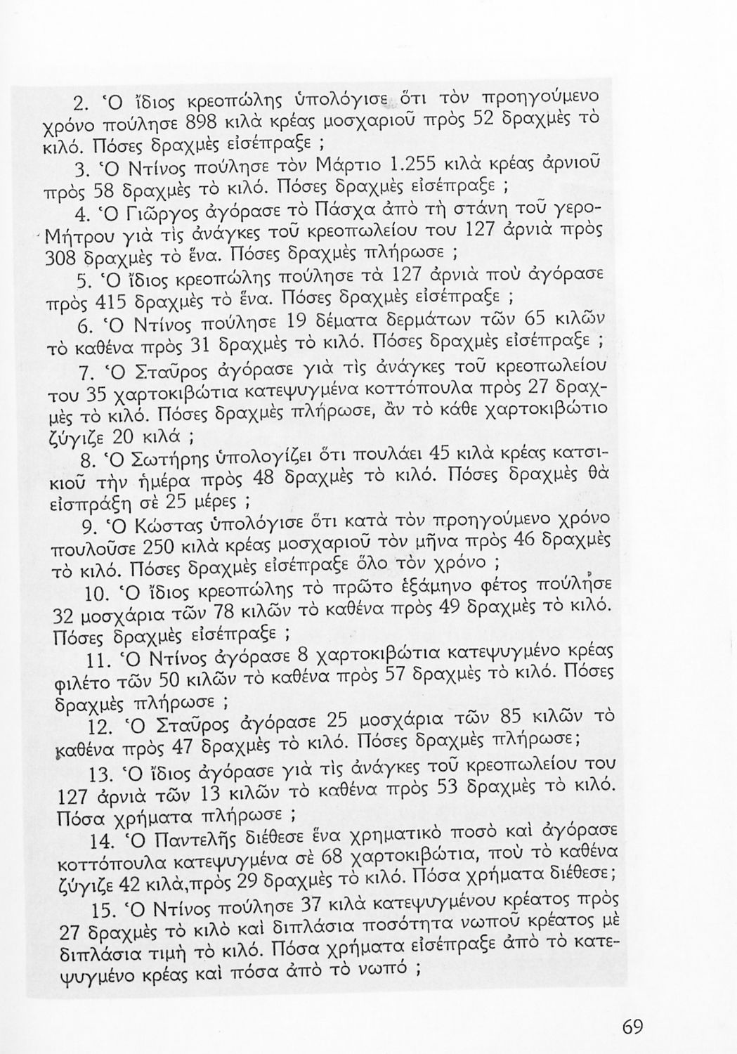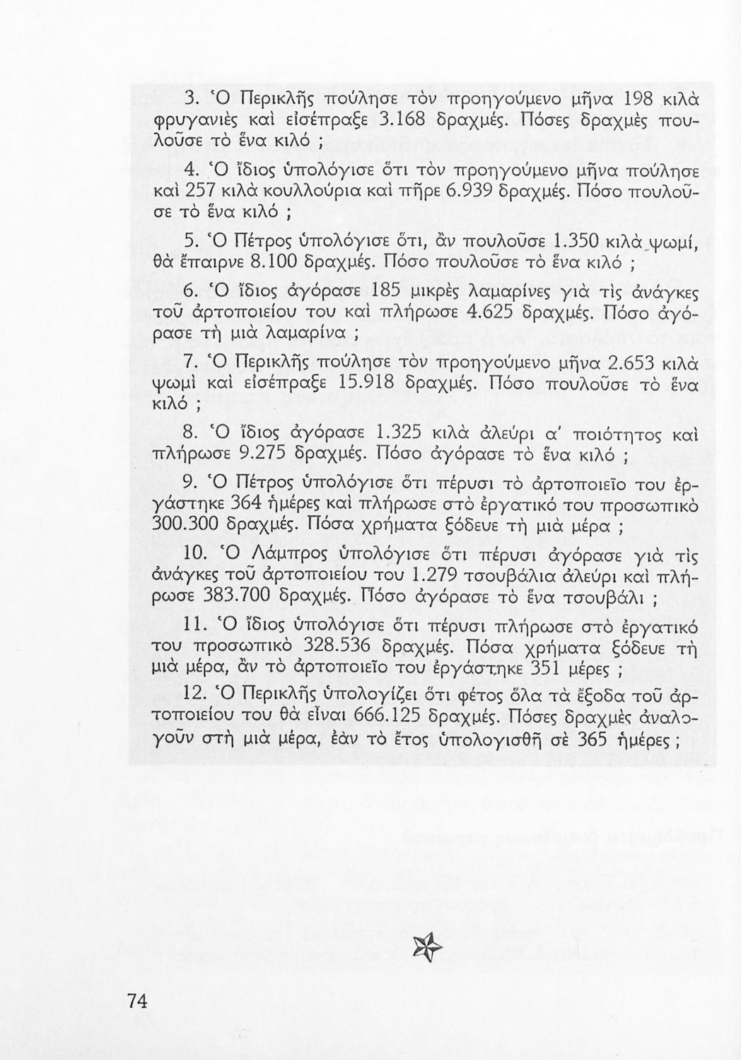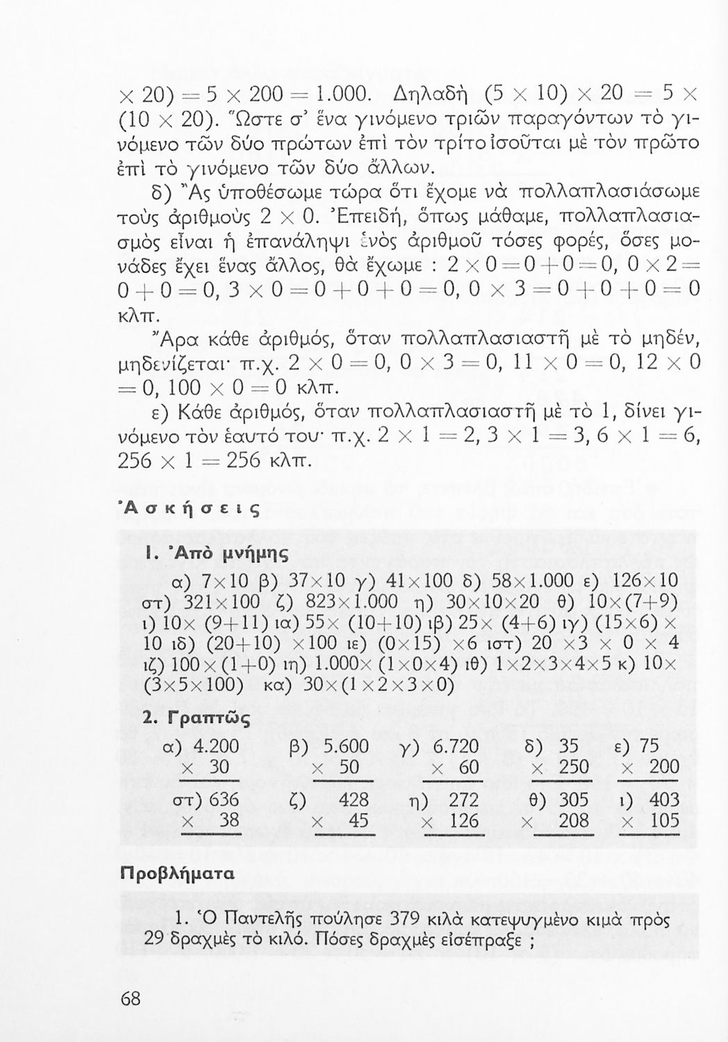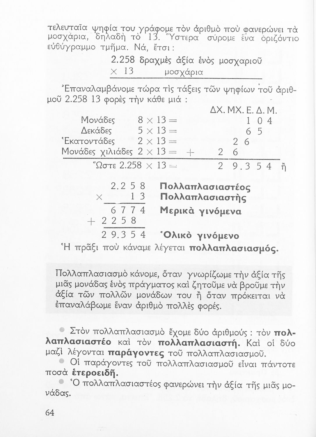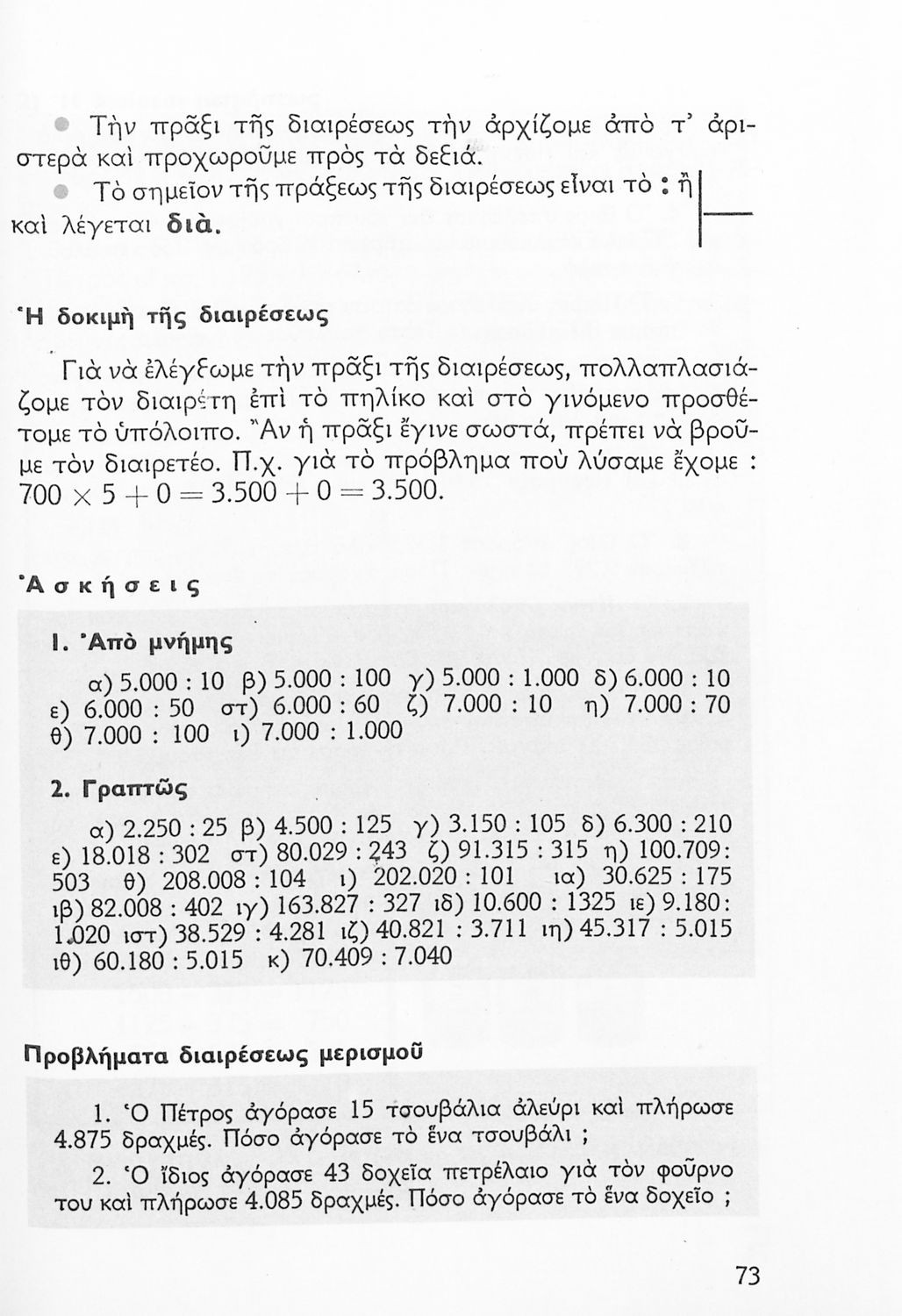 Σχολικό εγχειρίδιο Αριθμητικής Δ΄ Δημοτικού χωρισμένο σε πρακτικά προβλήματα και τις λύσεις τους που περιλαμβάνει και κάποια στοιχεία Γεωμετρίας.