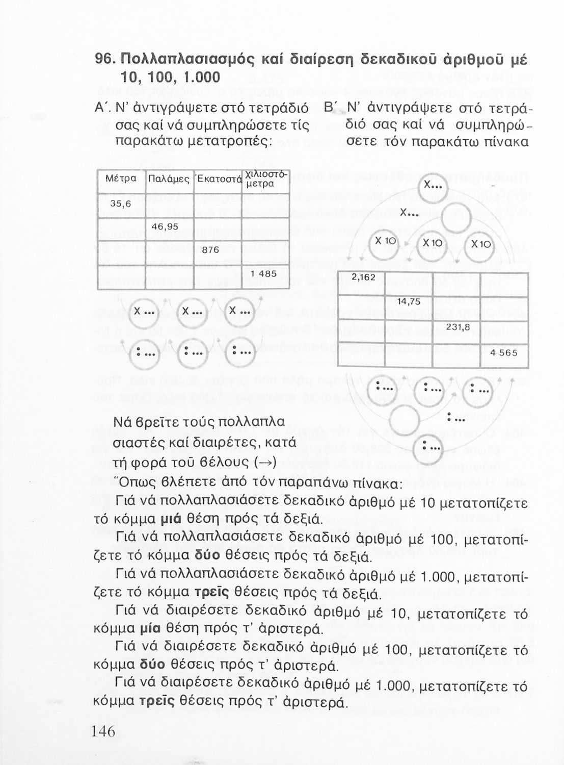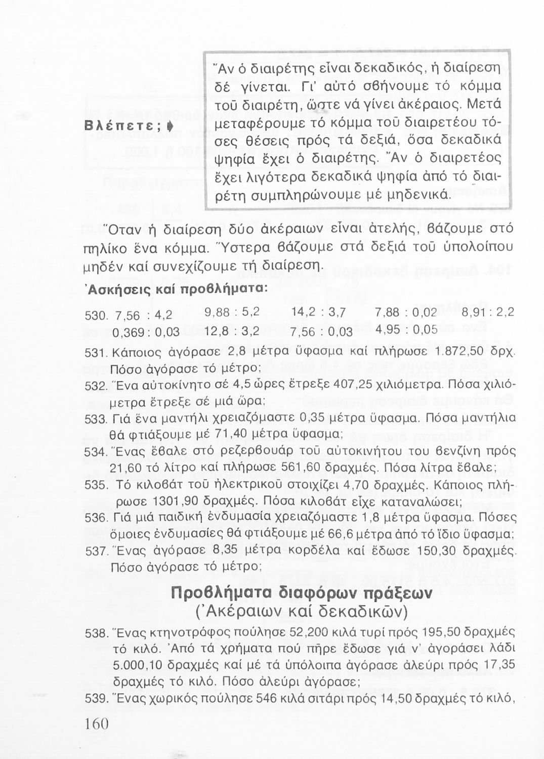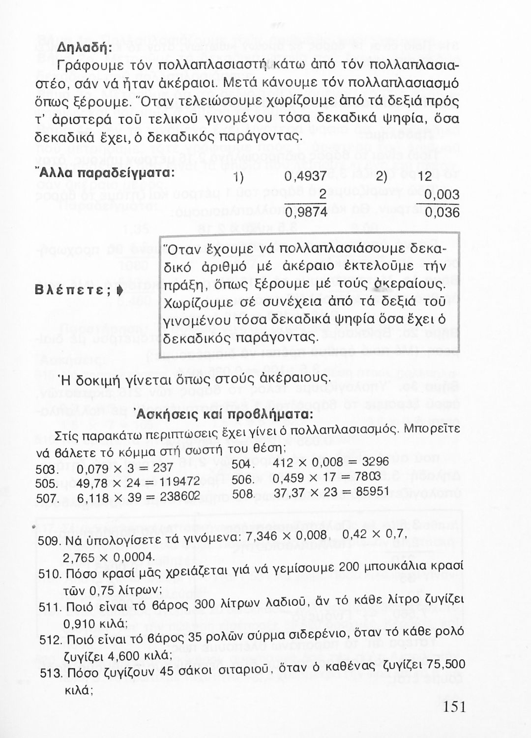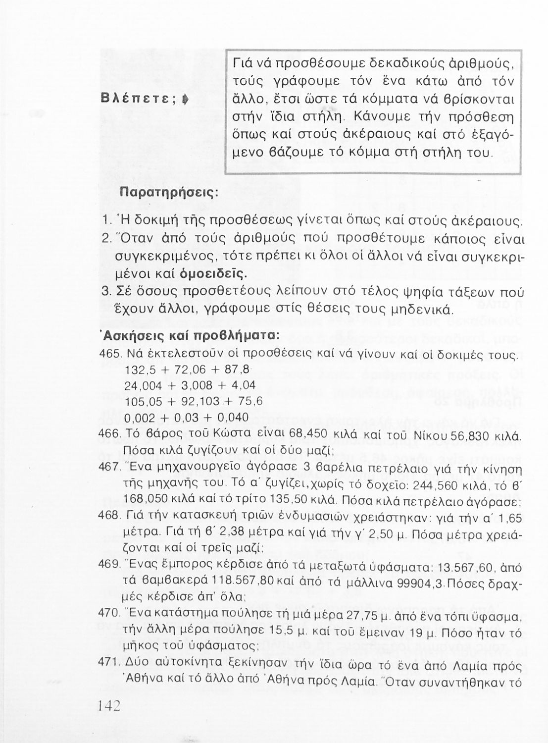 Σχολικό εγχειρίδιο Αριθμητικής Δ΄ Δημοτικού χωρισμένο σε πρακτικά προβλήματα και τις λύσεις τους που περιλαμβάνει και κάποια στοιχεία Γεωμετρίας.