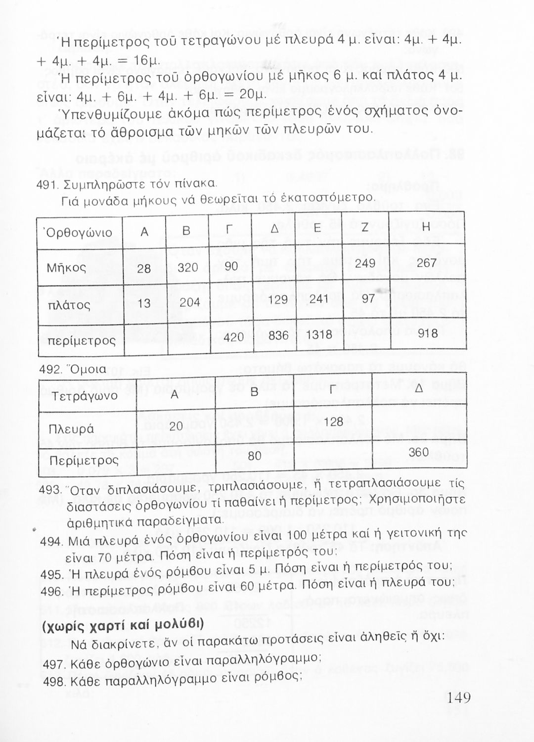 Αριθμητική Γεωμετρία Δ΄ Δημοτικού