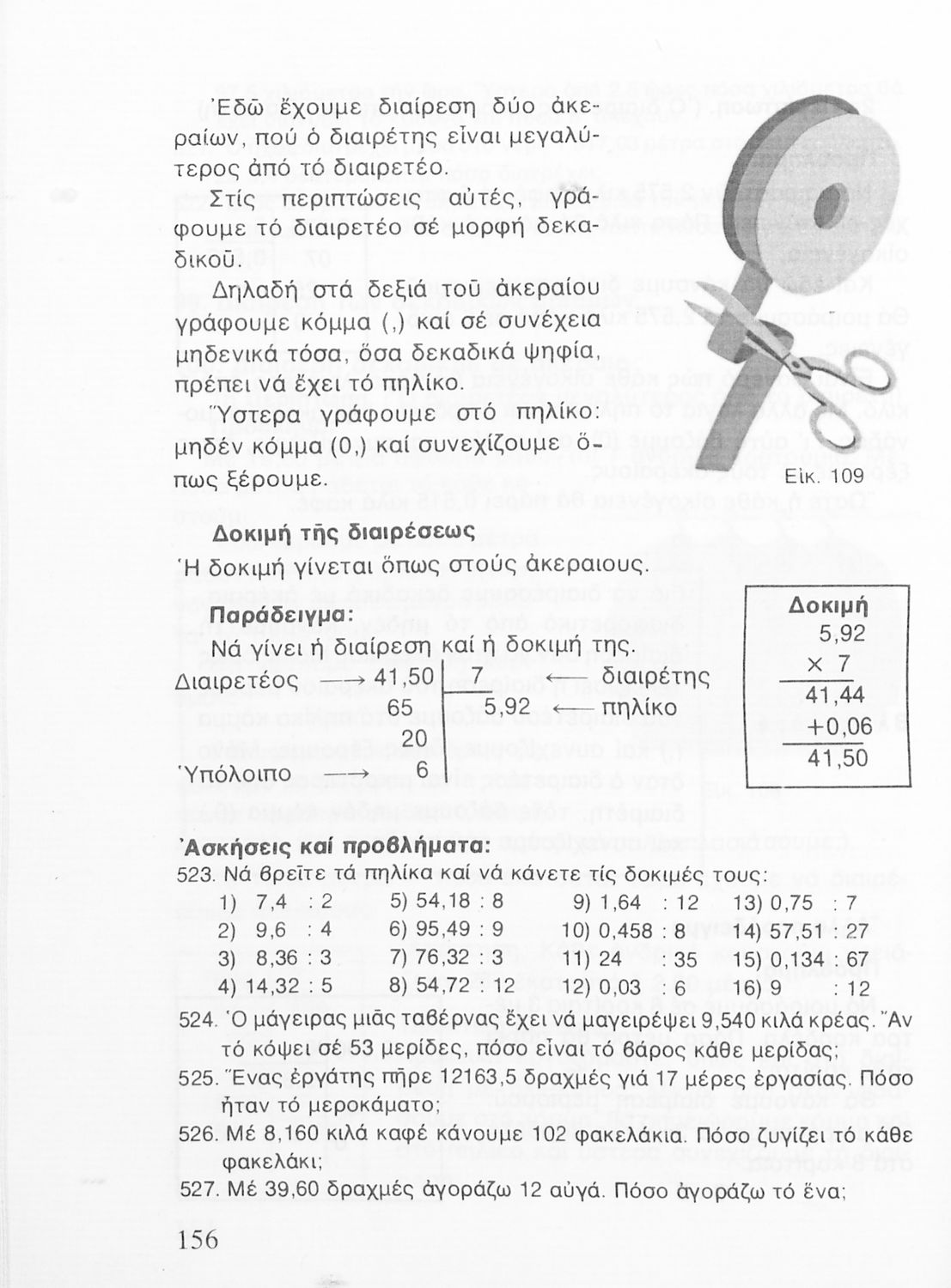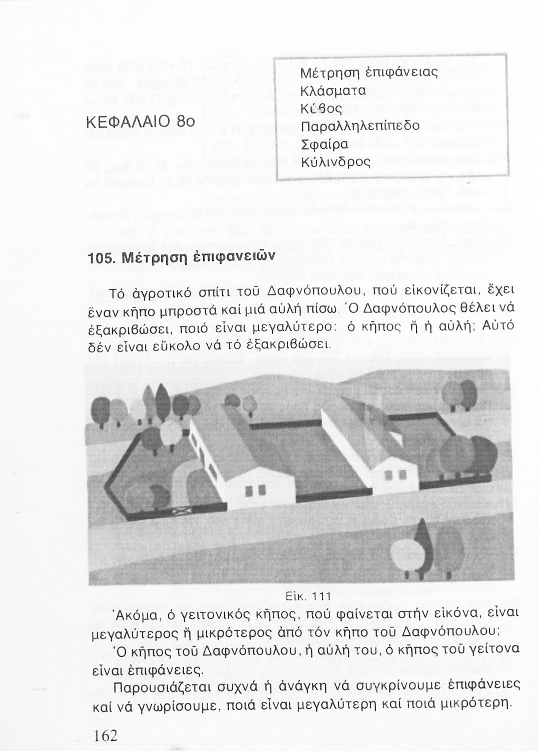 Σχολικό εγχειρίδιο Μαθηματικών ΣΤ΄ Δημοτικού που περιλαμβάνει ασκήσεις λογιστικού χαρακτήρα και ασκήσεις μέτρησης γεωμετρικών σχημάτων. Φέρει το σύμβολο της δικτατορίας.
