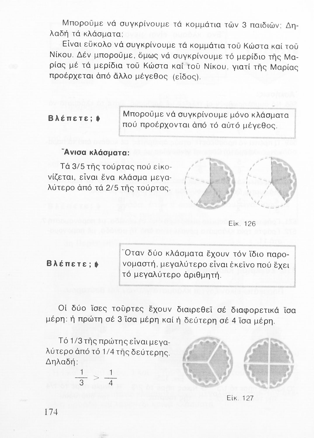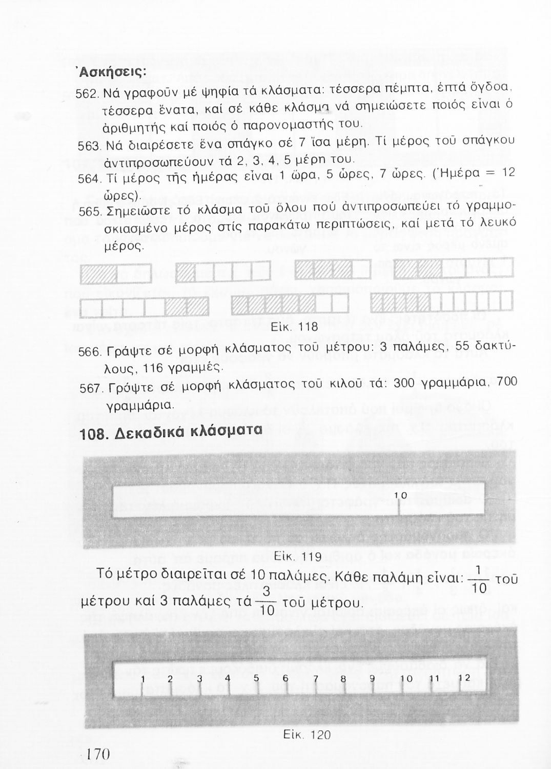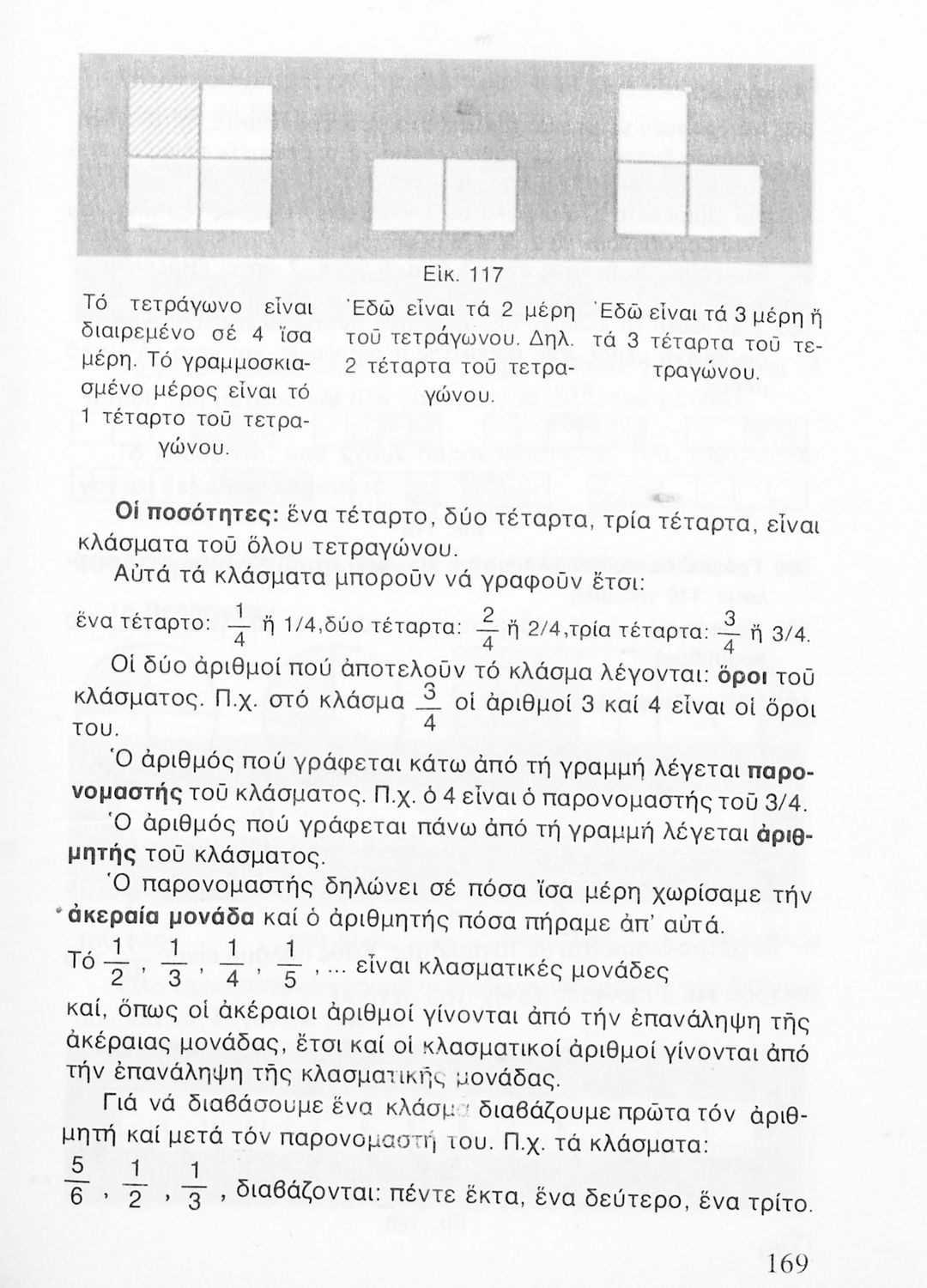 Σχολικό εγχειρίδιο Αριθμητικής Δ΄ Δημοτικού χωρισμένο σε πρακτικά προβλήματα και τις λύσεις τους που εστιάζει στις πράξεις με ακέραιους και συμμιγείς αριθμούς και περιλαμβάνει στοιχεία Γεωμετρίας.