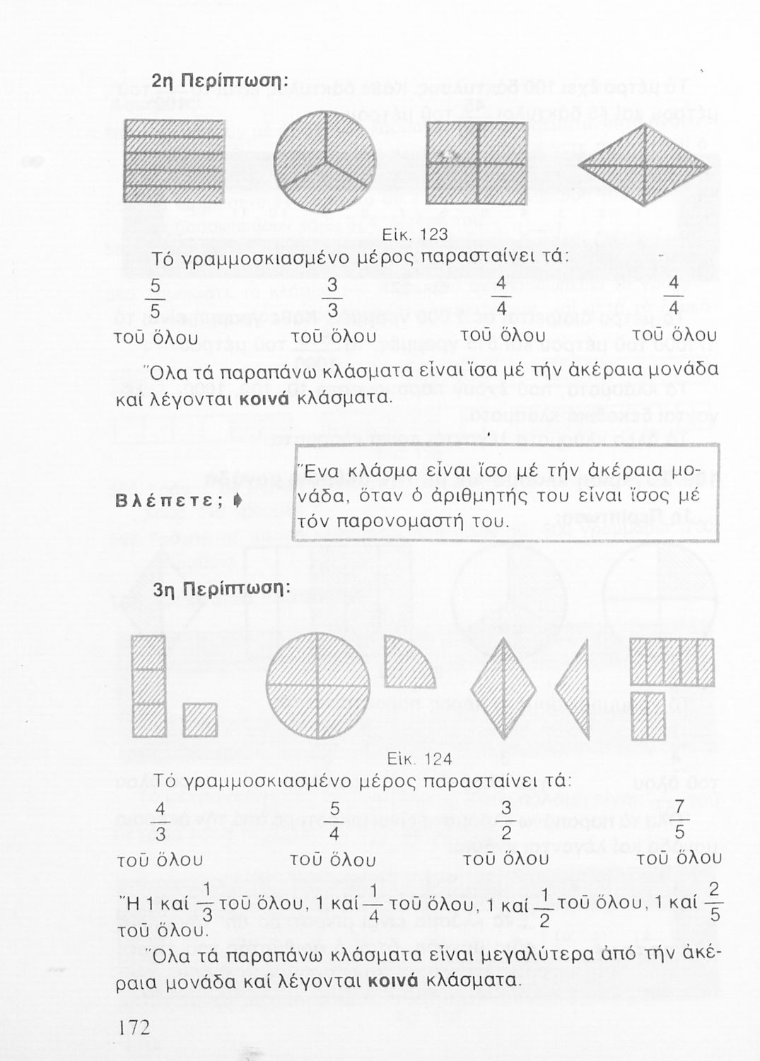 Σχολικό εγχειρίδιο Μαθηματικών Ε΄ Δημοτικού που συνδυάζει Αριθμητική και Γεωμετρία και εστιάζει στις πράξεις με ακέραιους και συμμιγείς αριθμούς και τη μέτρηση γεωμετρικών στερεών.