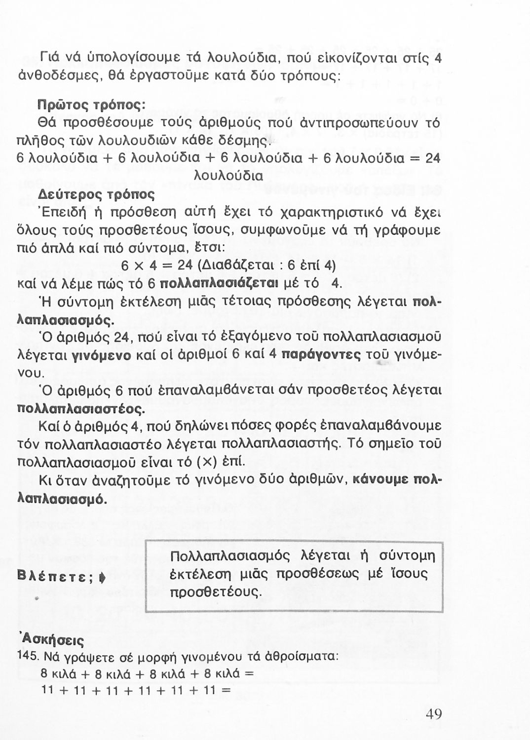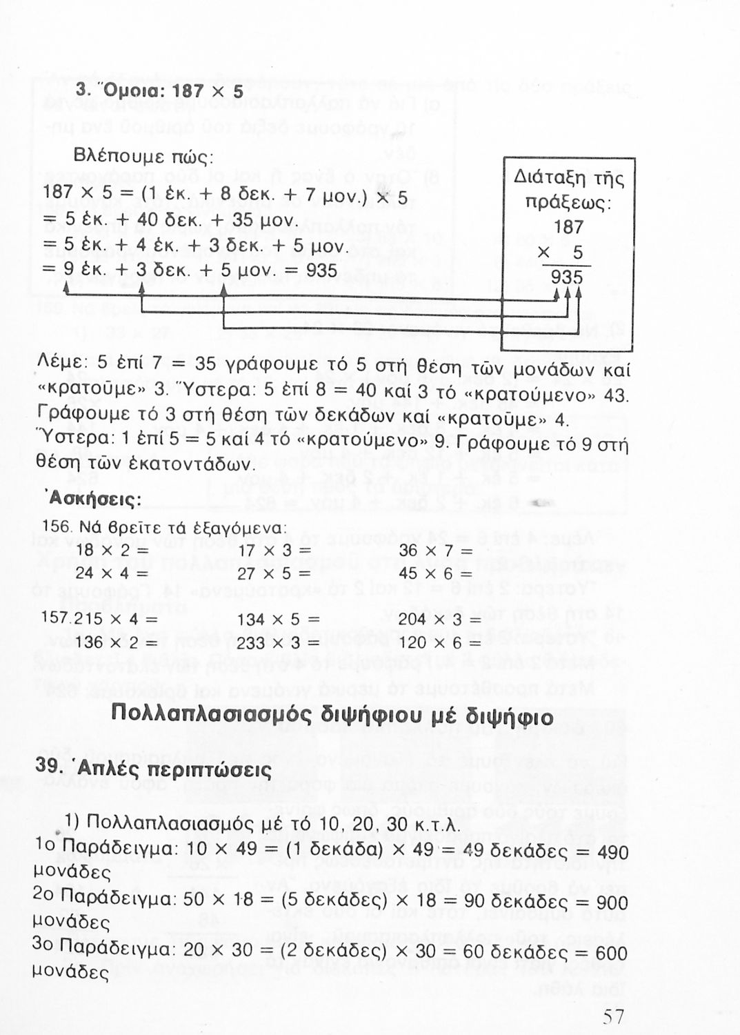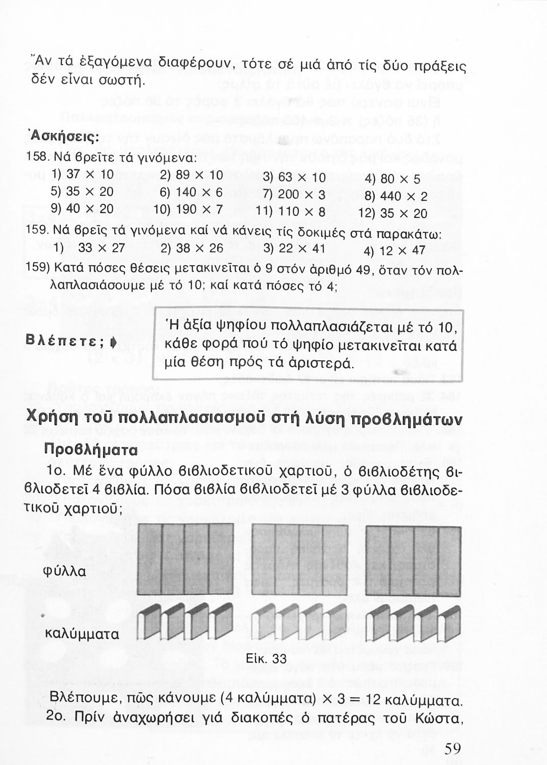 Σχολικό εγχειρίδιο Αριθμητικής Δ΄ Δημοτικού χωρισμένο σε πρακτικά προβλήματα και τις λύσεις τους που περιλαμβάνει και κάποια στοιχεία Γεωμετρίας.