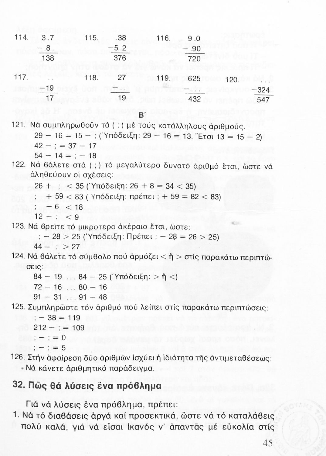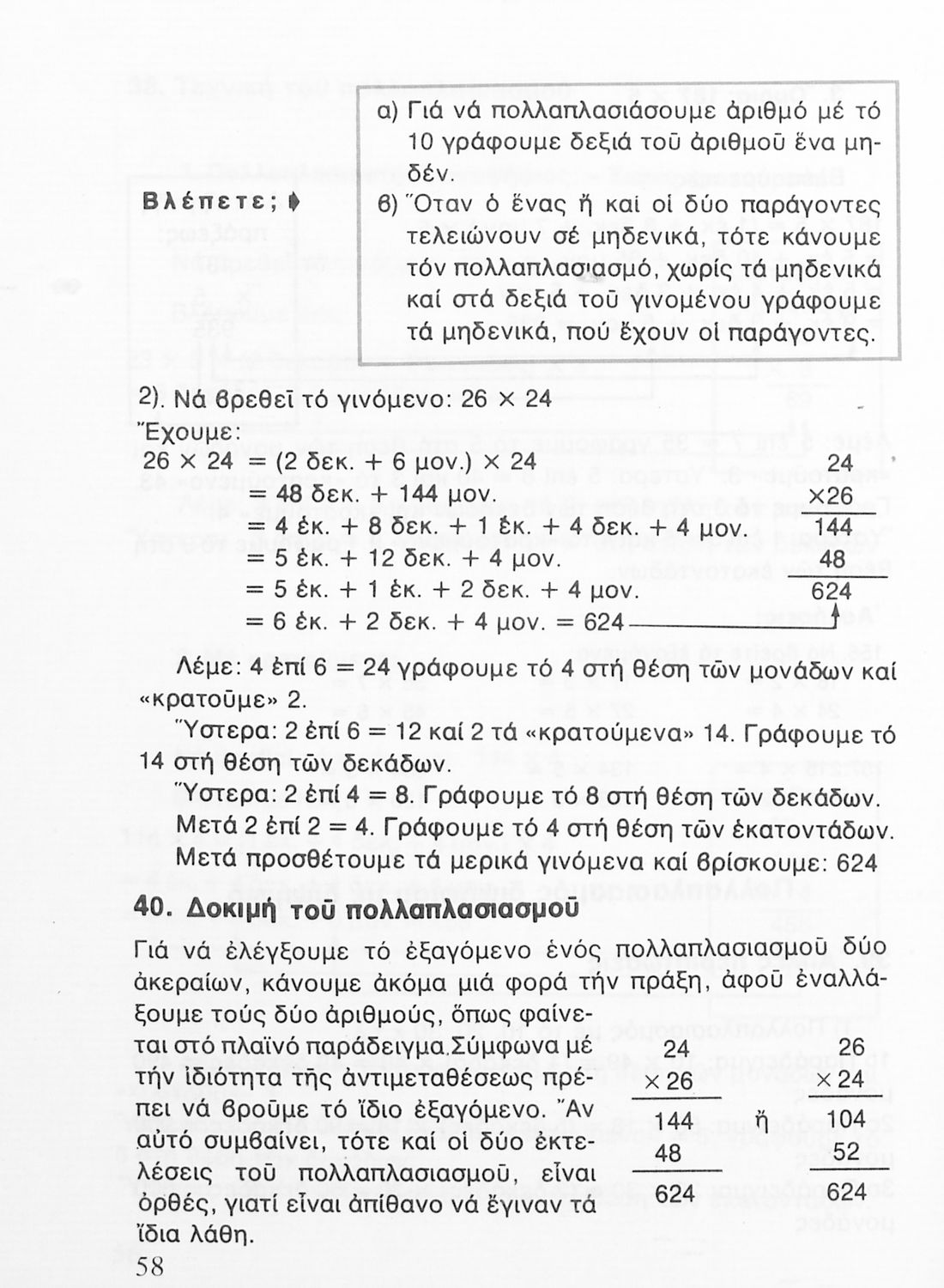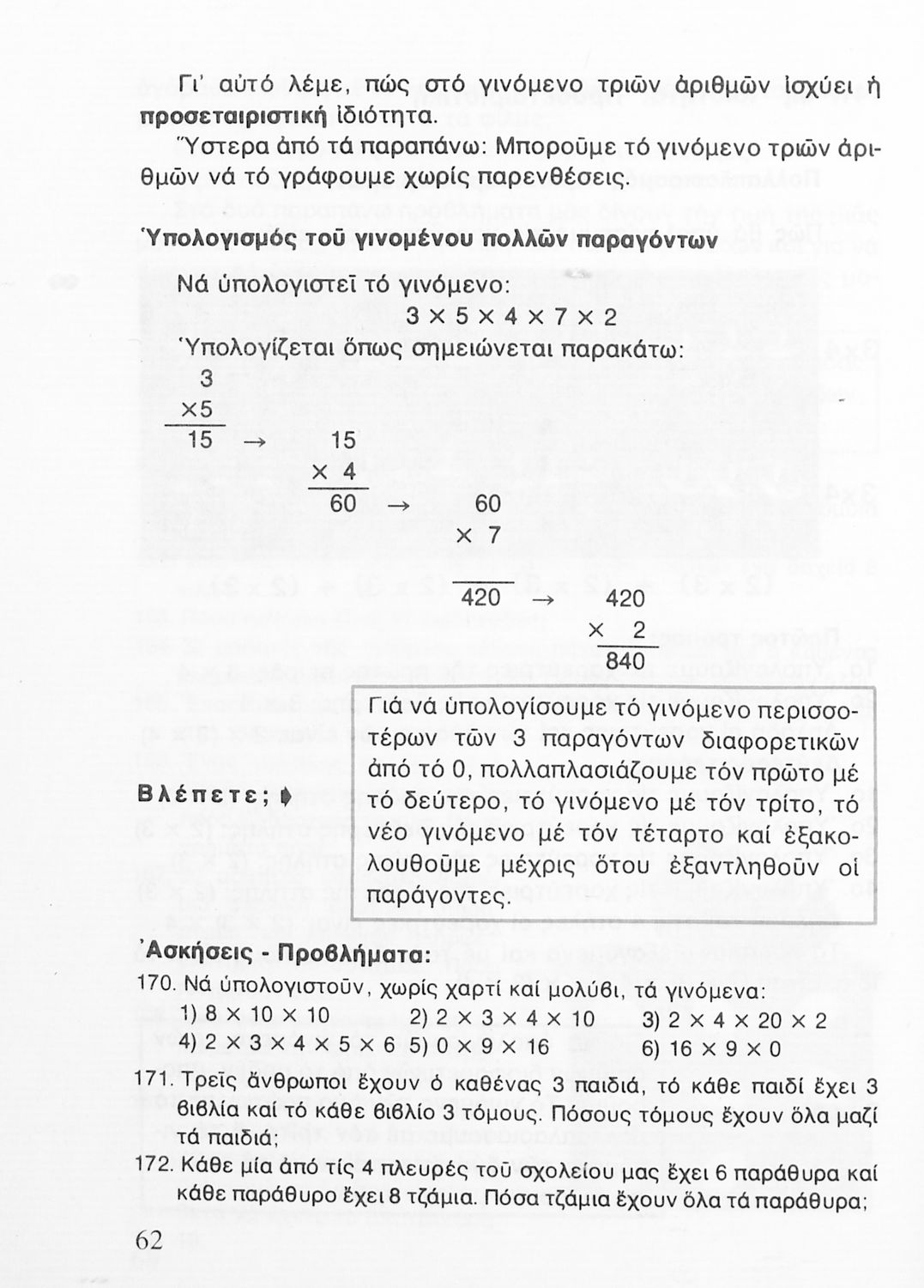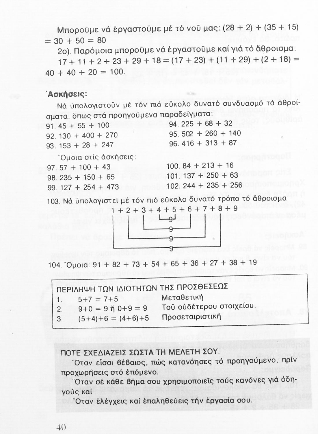 Σχολικό εγχειρίδιο Αριθμητικής Δ΄ Δημοτικού χωρισμένο σε πρακτικά προβλήματα και τις λύσεις τους που περιλαμβάνει και κάποια στοιχεία Γεωμετρίας.