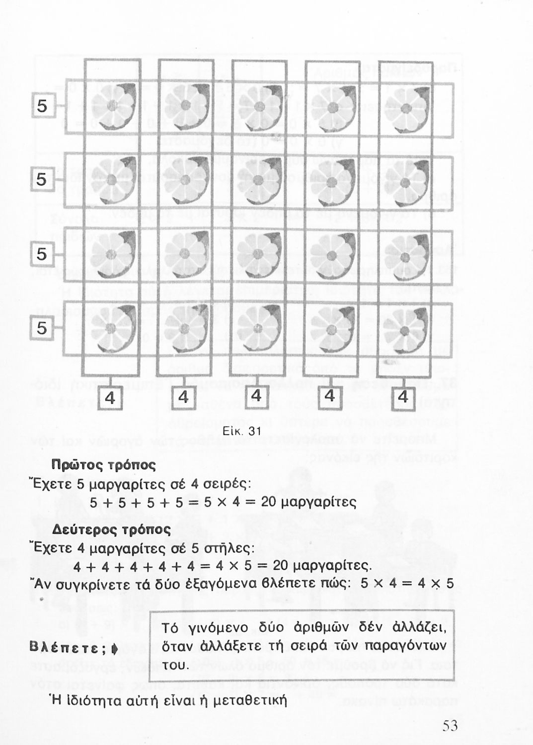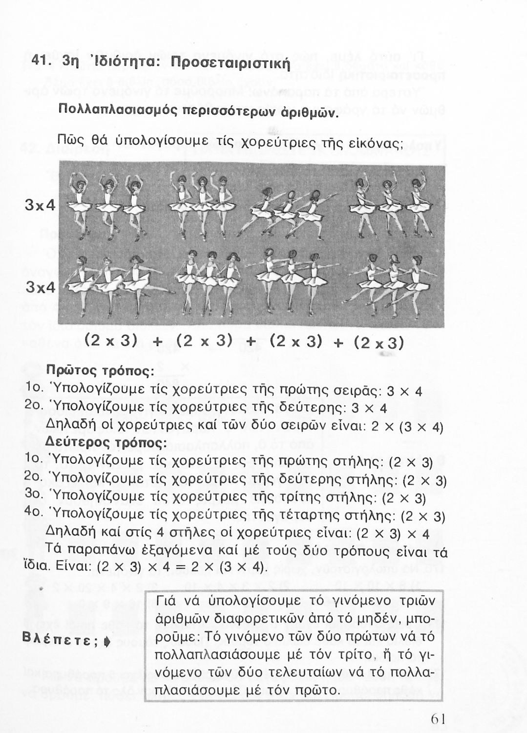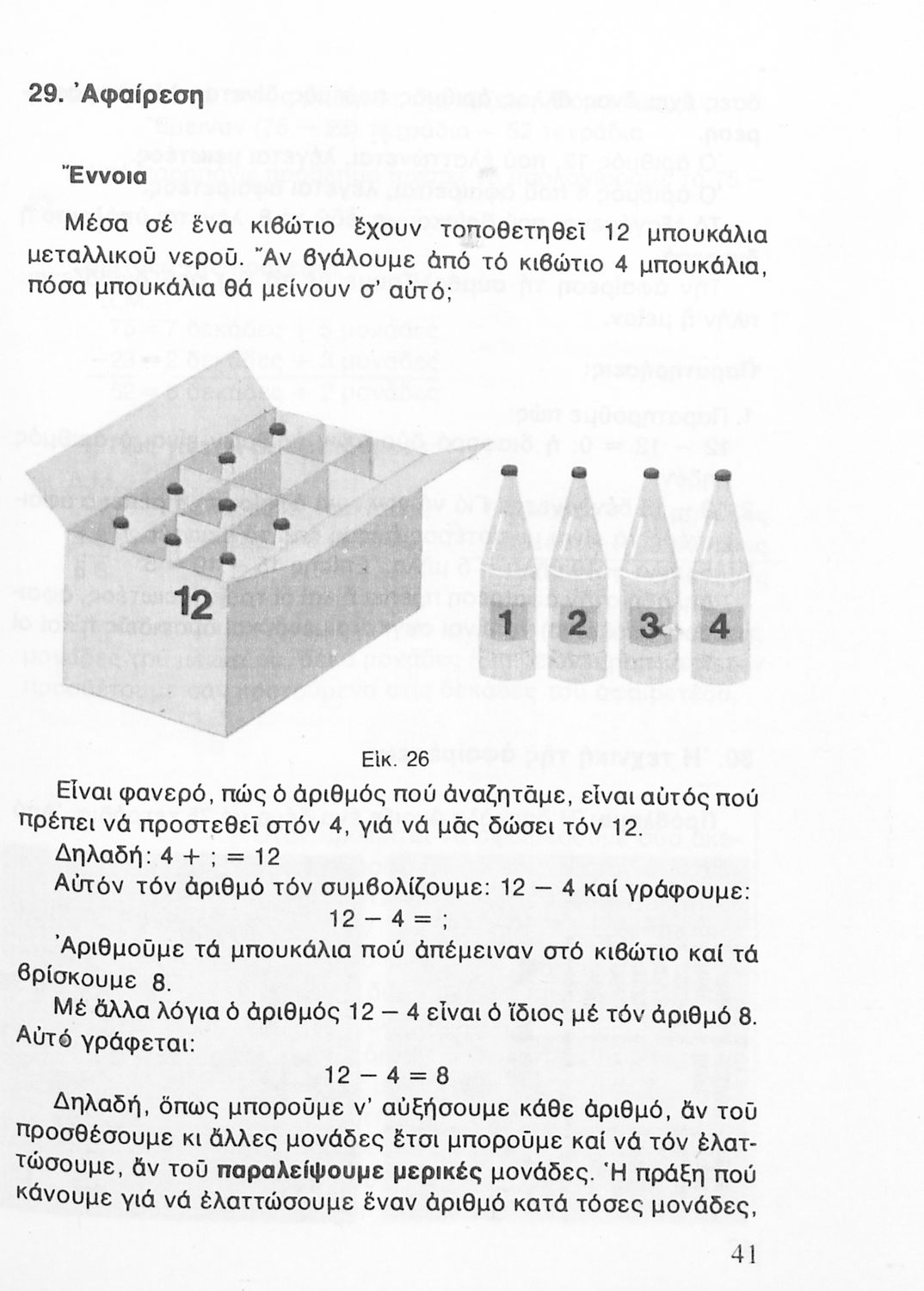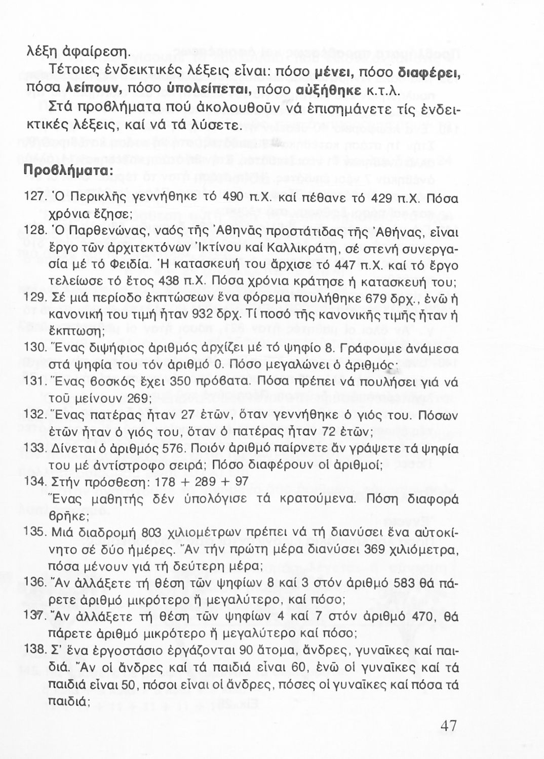 Σχολικό εγχειρίδιο Αριθμητικής Δ΄ Δημοτικού χωρισμένο σε πρακτικά προβλήματα και τις λύσεις τους που εστιάζει στις πράξεις με ακέραιους και συμμιγείς αριθμούς και περιλαμβάνει στοιχεία Γεωμετρίας.