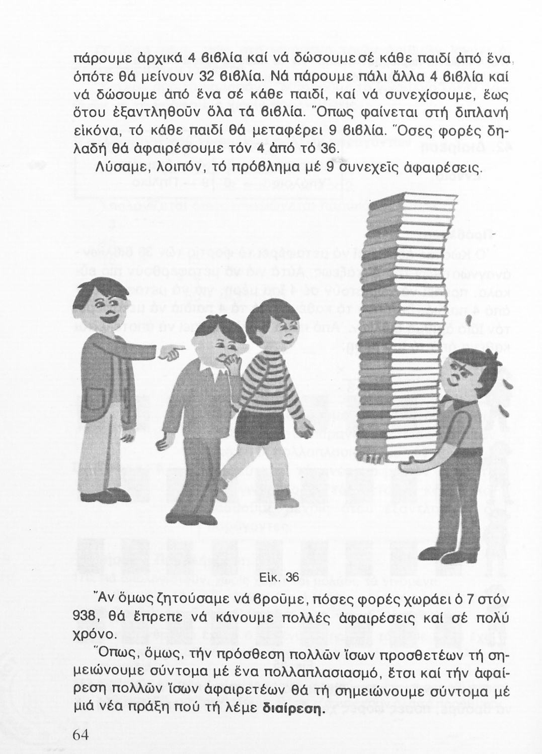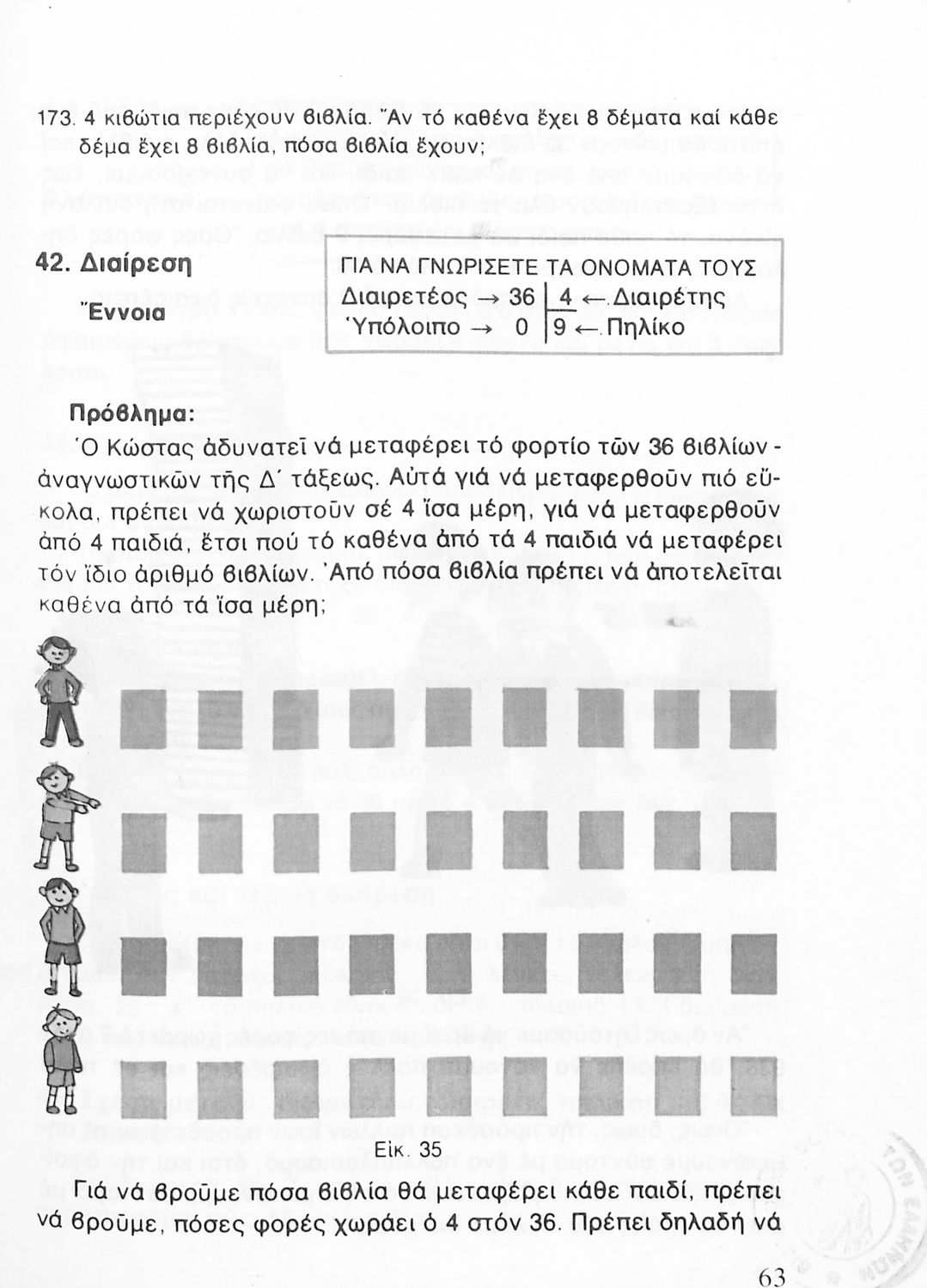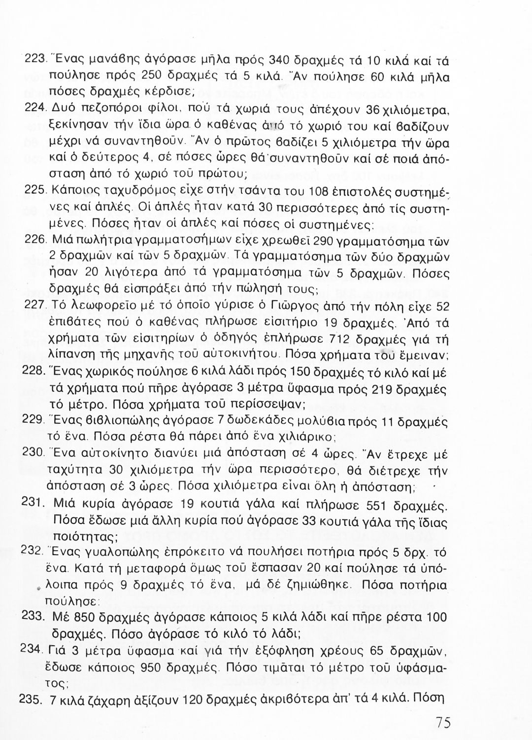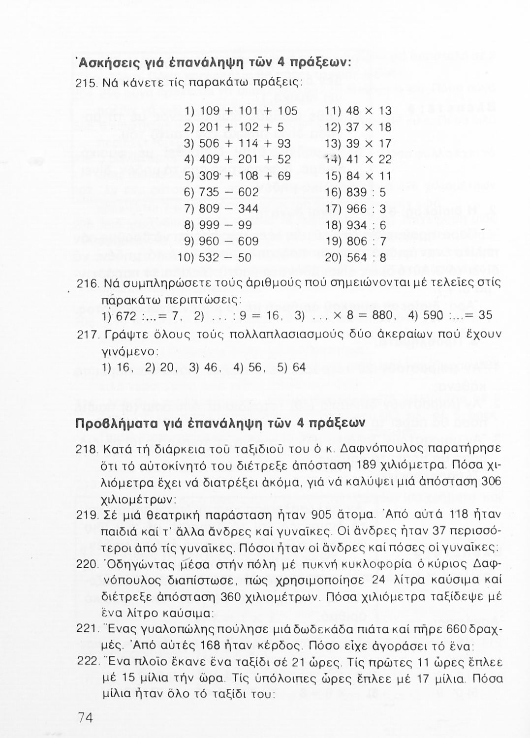 Σχολικό εγχειρίδιο Αριθμητικής Δ΄ Δημοτικού χωρισμένο σε πρακτικά προβλήματα και τις λύσεις τους που περιλαμβάνει και κάποια στοιχεία Γεωμετρίας.