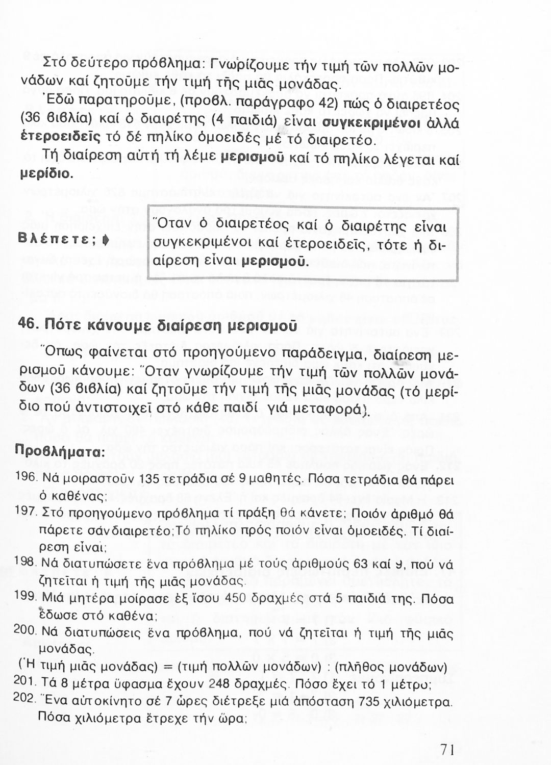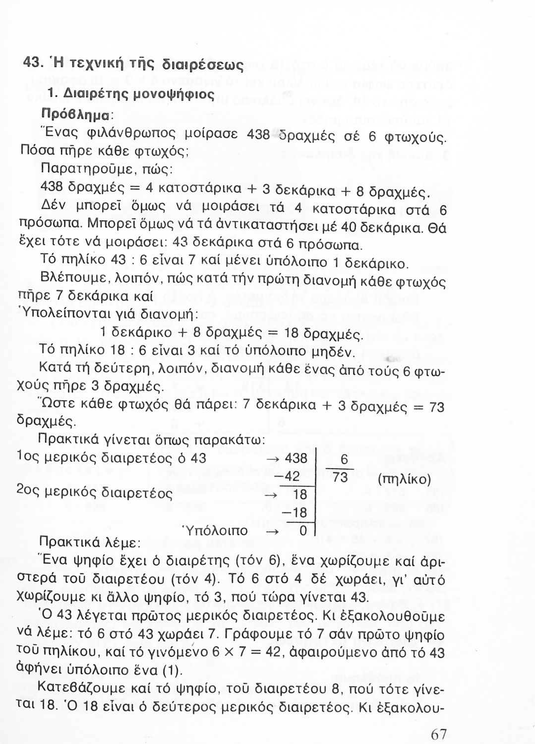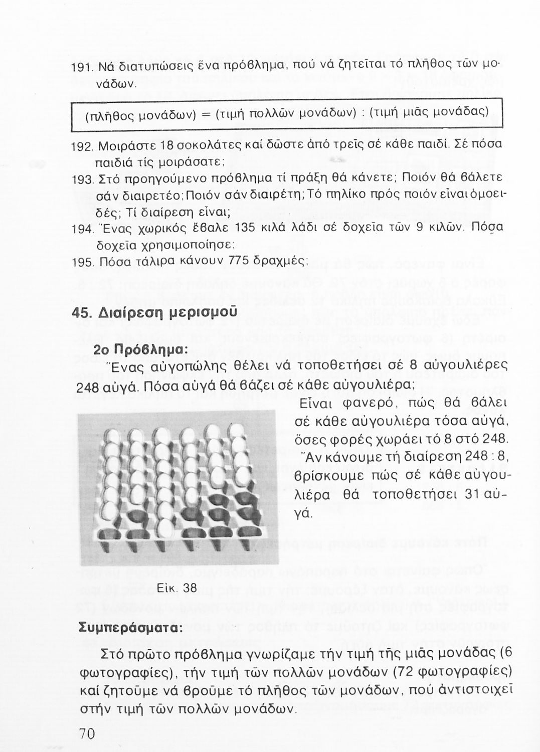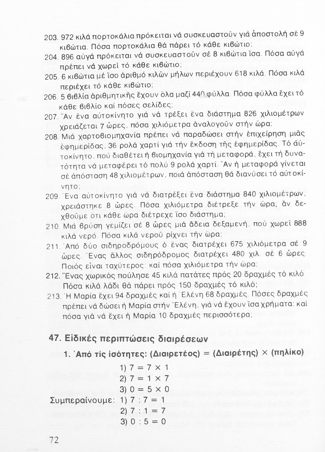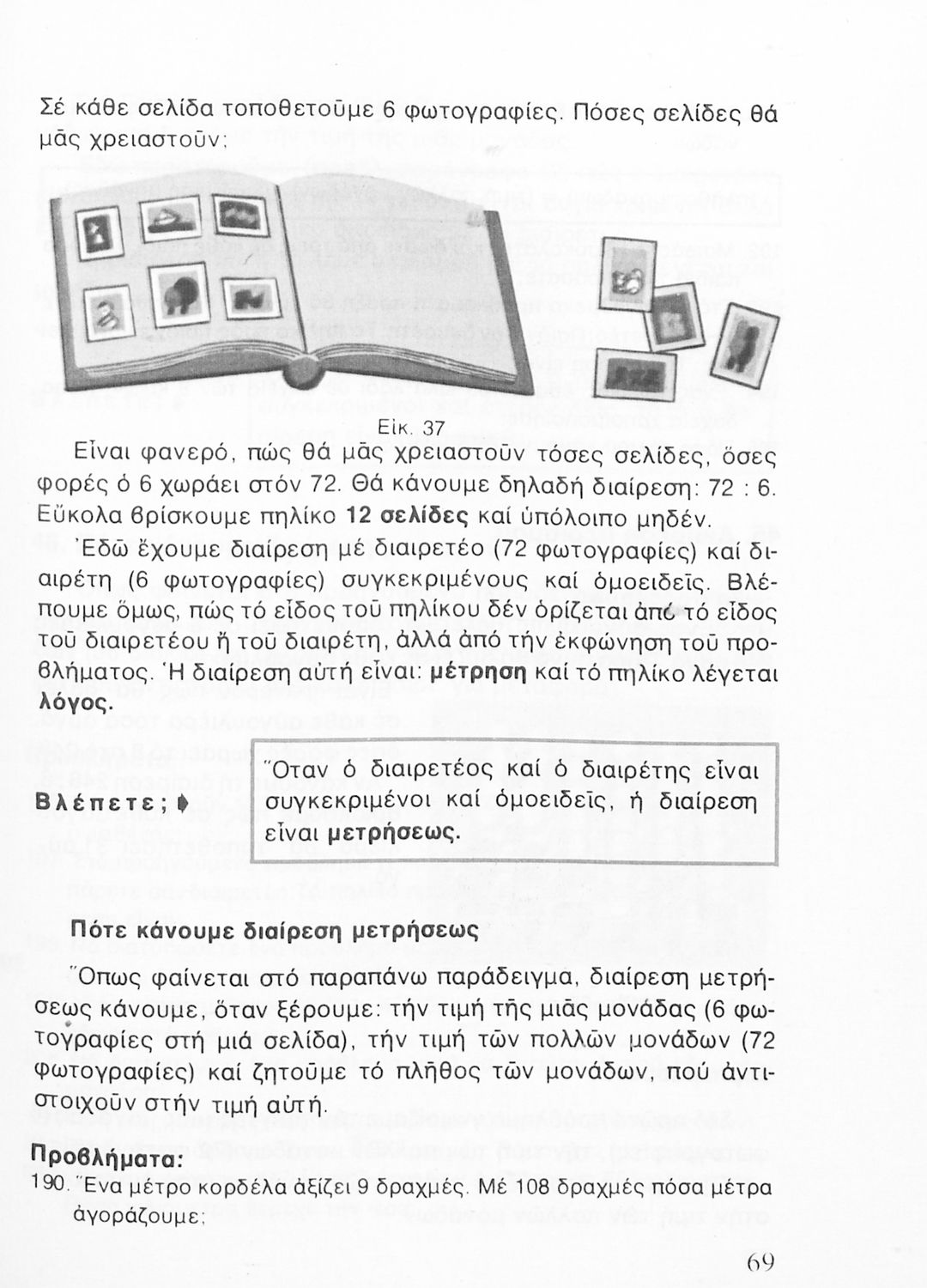 Σχολικό εγχειρίδιο Αριθμητικής Δ΄ Δημοτικού χωρισμένο σε πρακτικά προβλήματα και τις λύσεις τους που περιλαμβάνει και κάποια στοιχεία Γεωμετρίας.