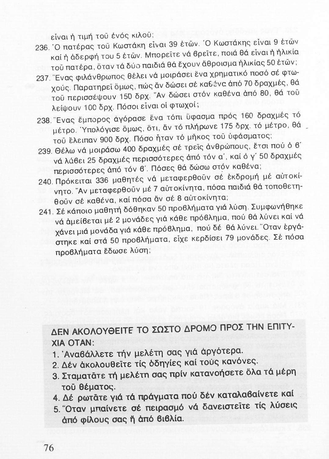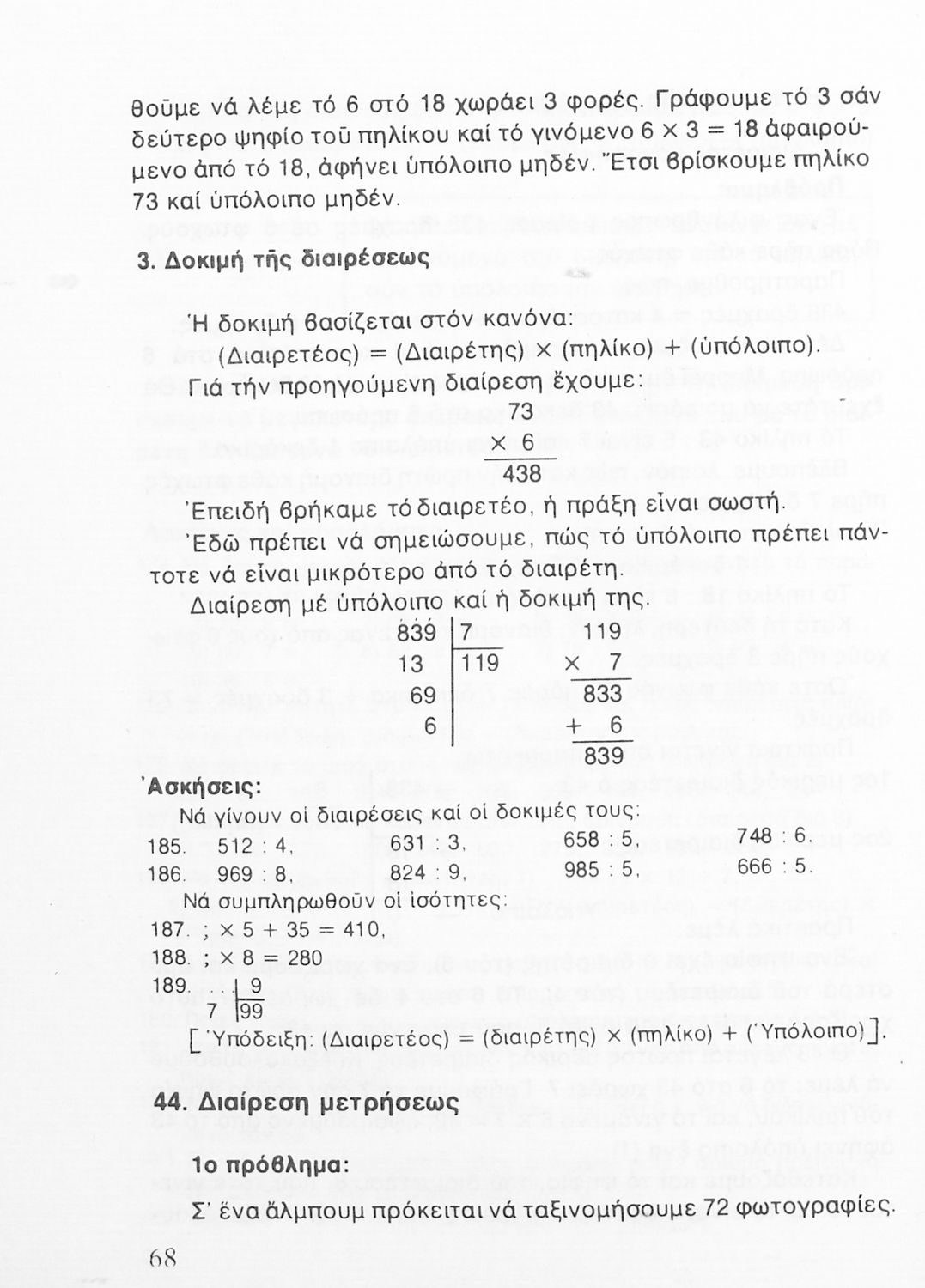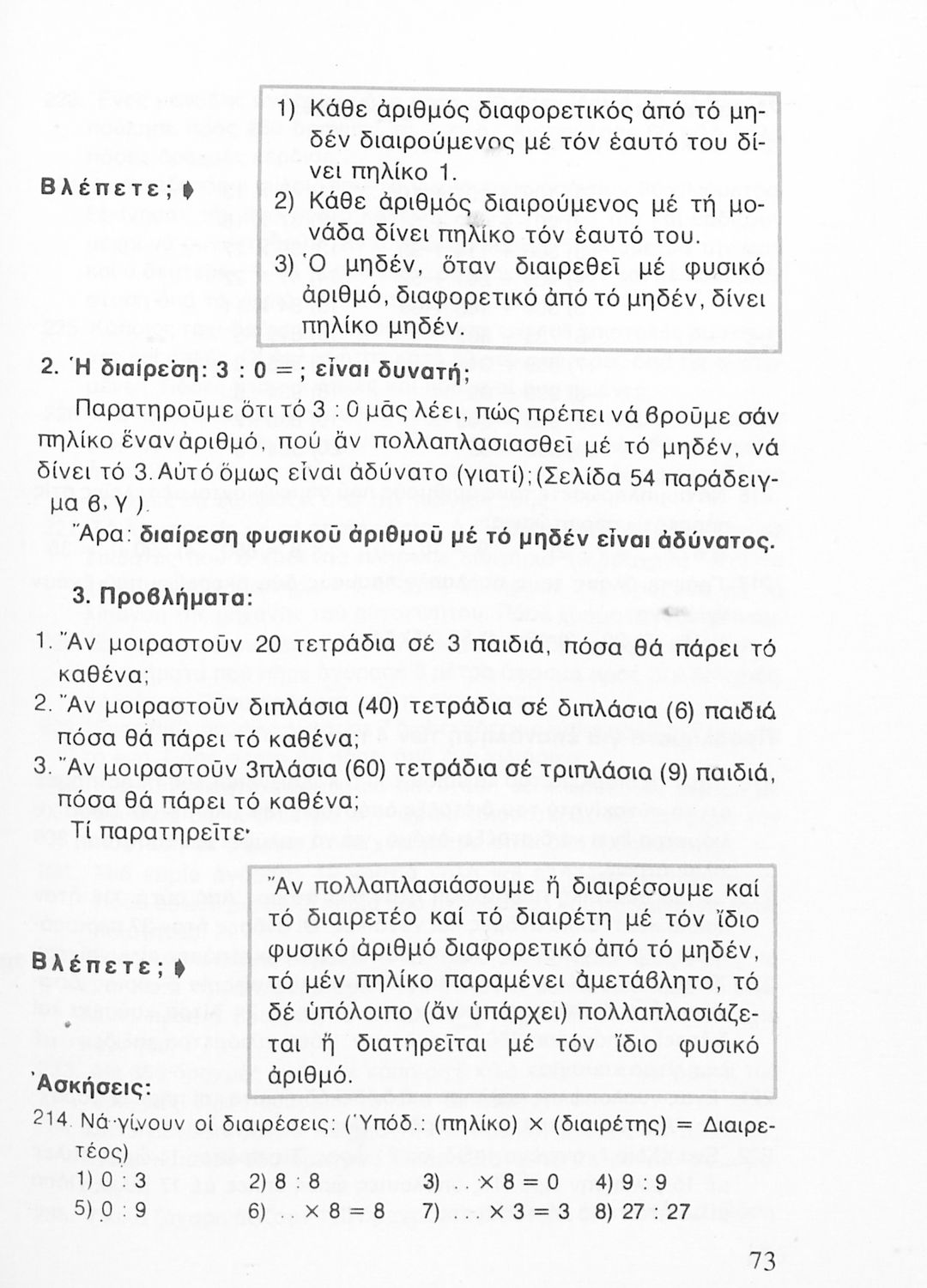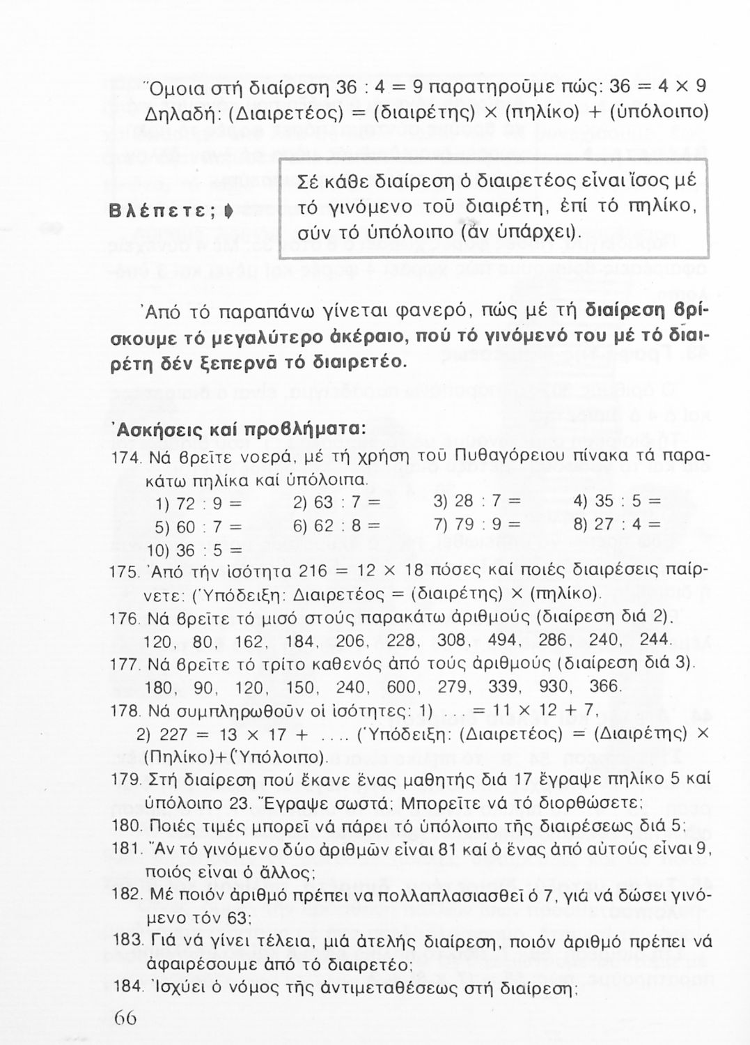 Σχολικό εγχειρίδιο Αριθμητικής Δ΄ Δημοτικού χωρισμένο σε πρακτικά προβλήματα και τις λύσεις τους που περιλαμβάνει και κάποια στοιχεία Γεωμετρίας.