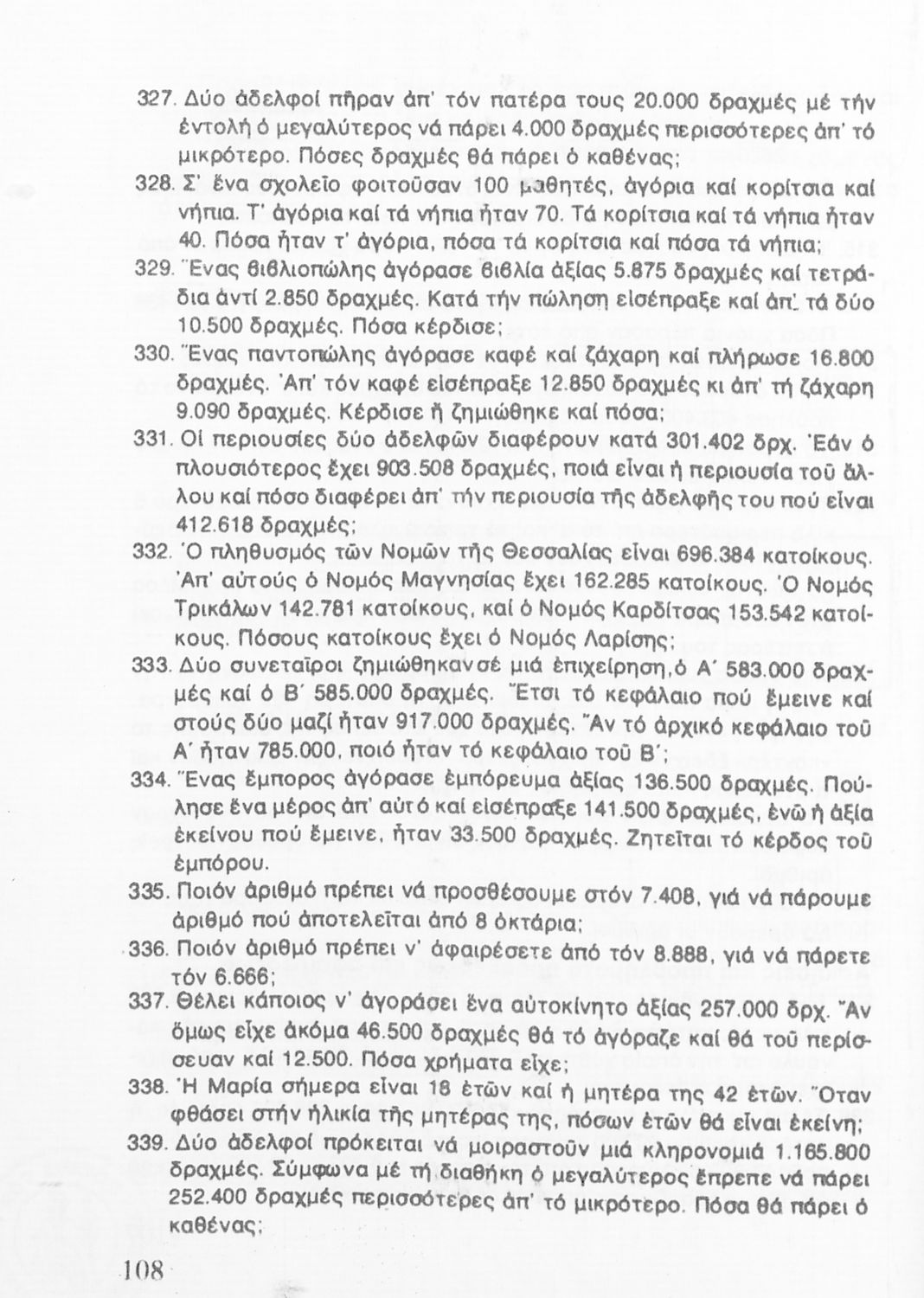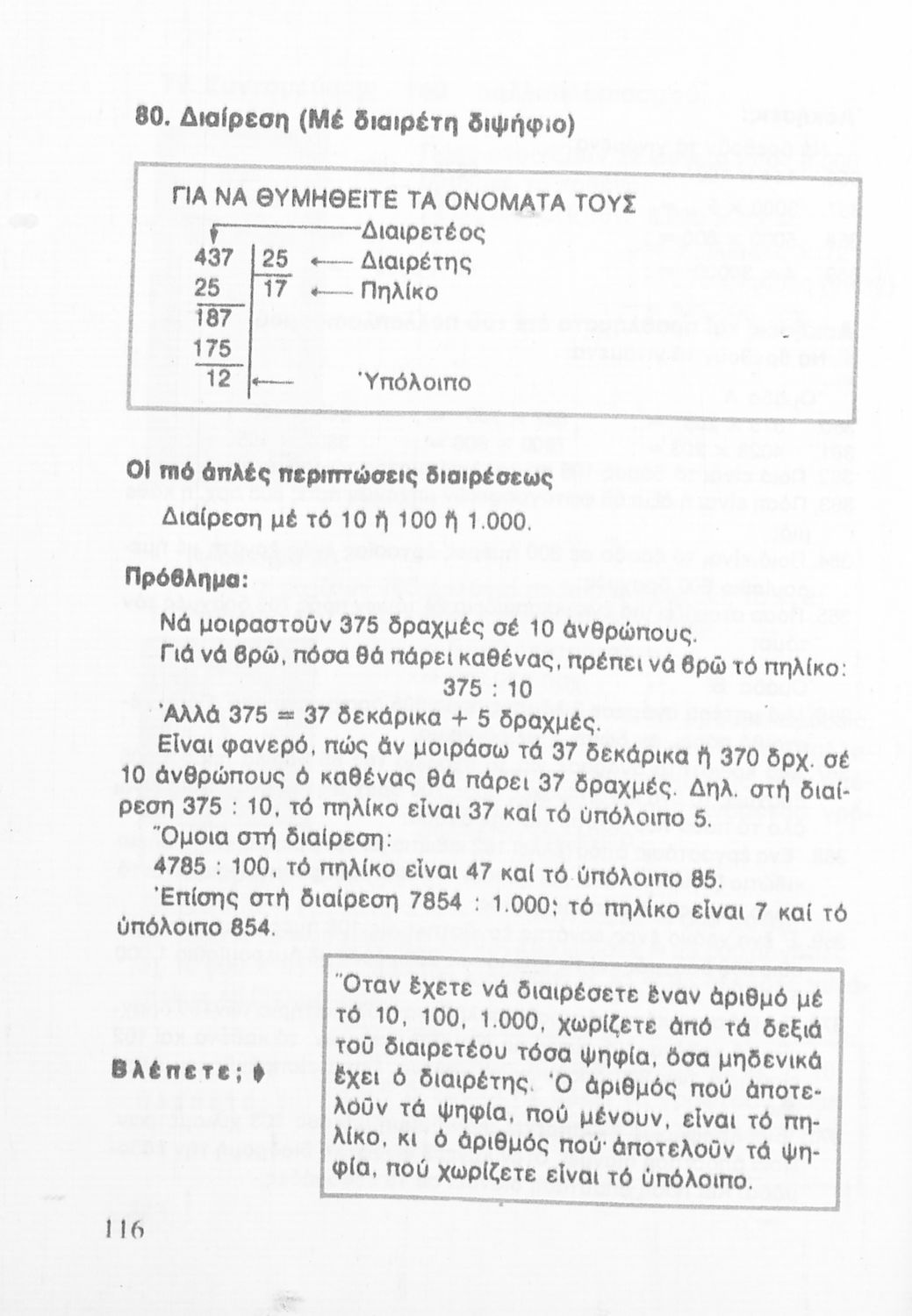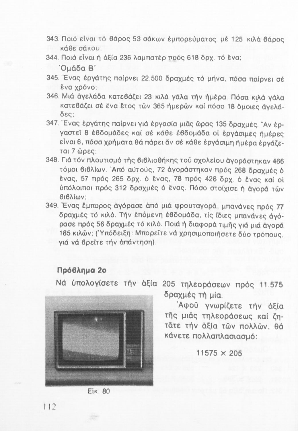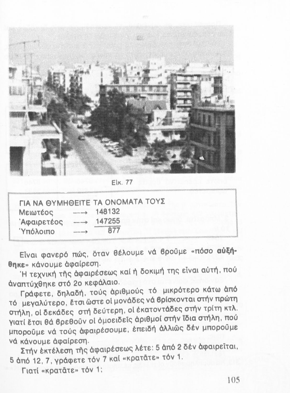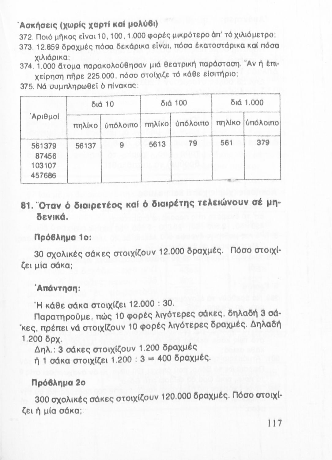 Σχολικό εγχειρίδιο Αριθμητικής Δ΄ Δημοτικού χωρισμένο σε πρακτικά προβλήματα και τις λύσεις τους που περιλαμβάνει και κάποια στοιχεία Γεωμετρίας.